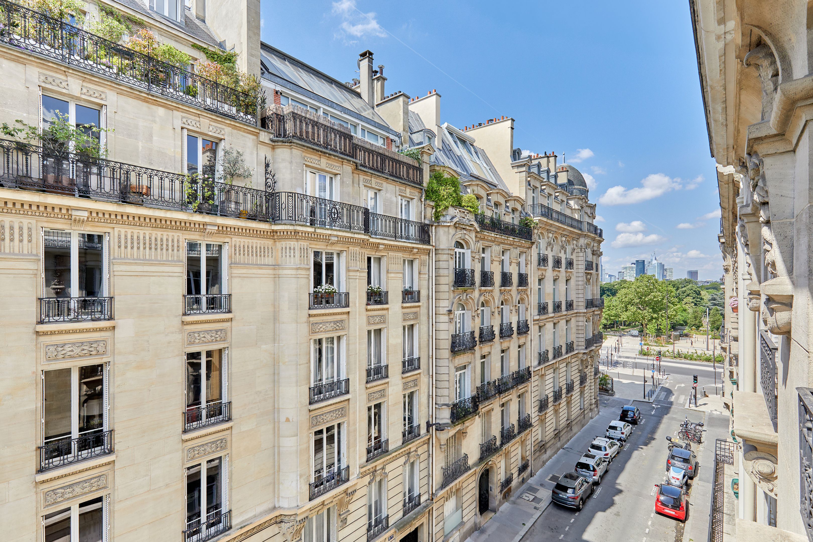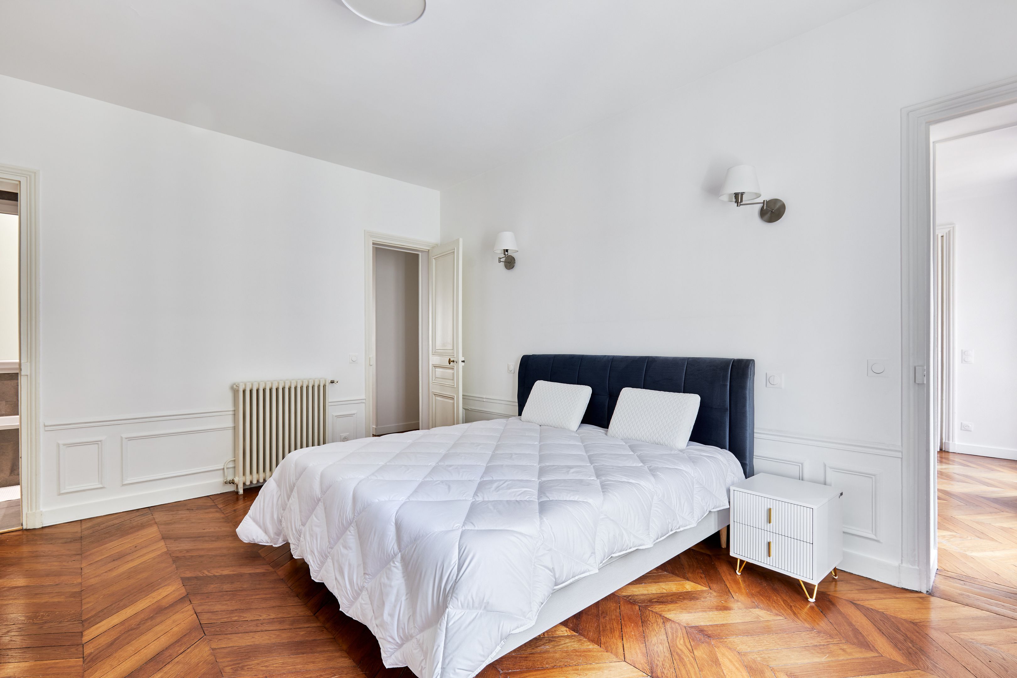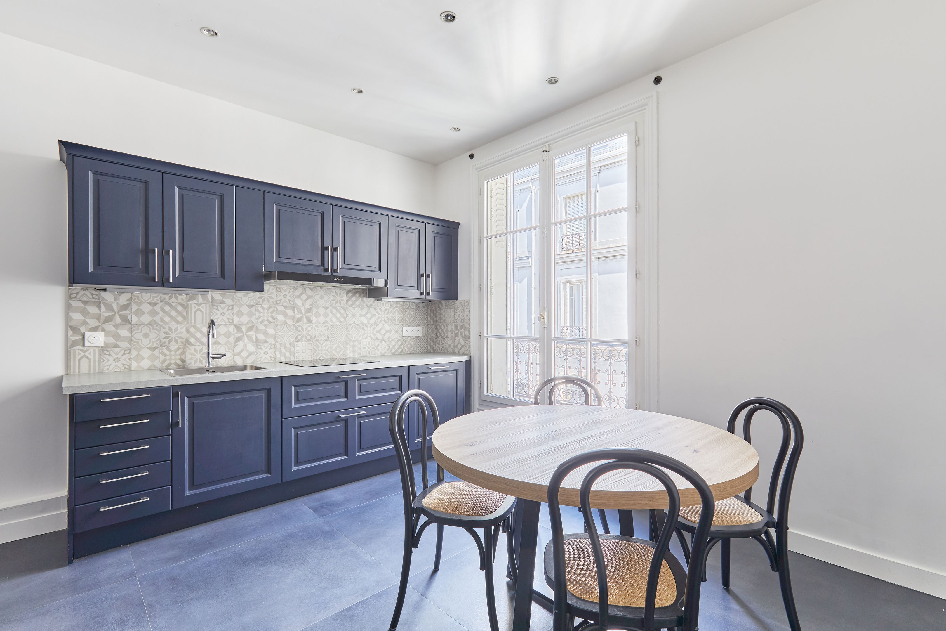 Dans un immeuble ancien parfaitement entretenu, au quatrième étage desservi par ascenseur, appartement meublé de 157,94 m², en très bon état et au mobilier neuf. Entrée, salon et salle à manger sur rue, cuisine dînatoire aménagée et équipée avec espace buanderie séparé, suite parentale (chambre avec placard et salle de bain complète : baignoire, douche, toilettes), deux chambres sur cour avec placards, salle de bains et deux toilettes séparées.