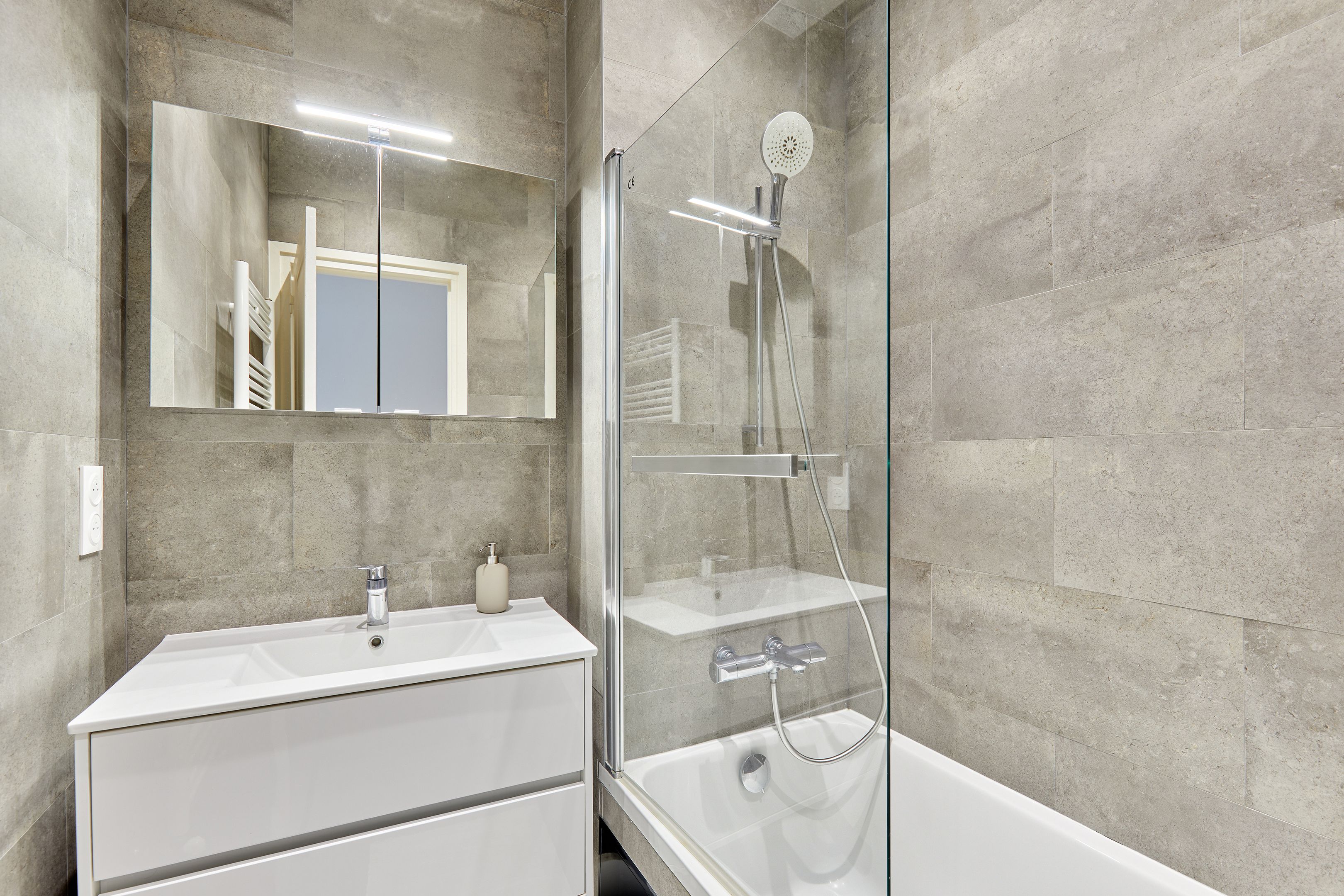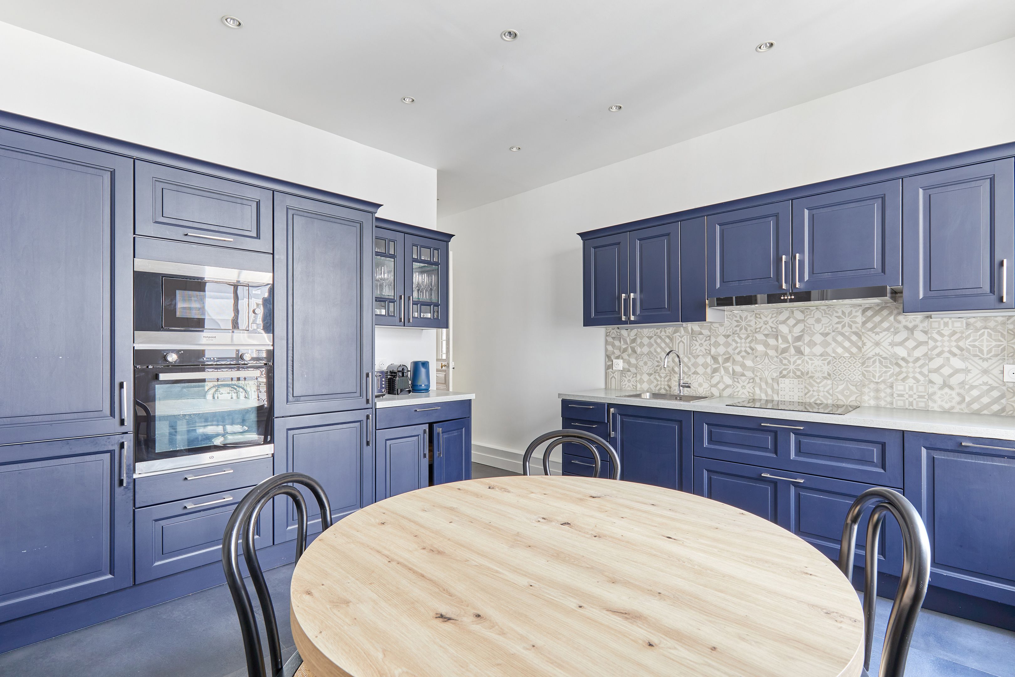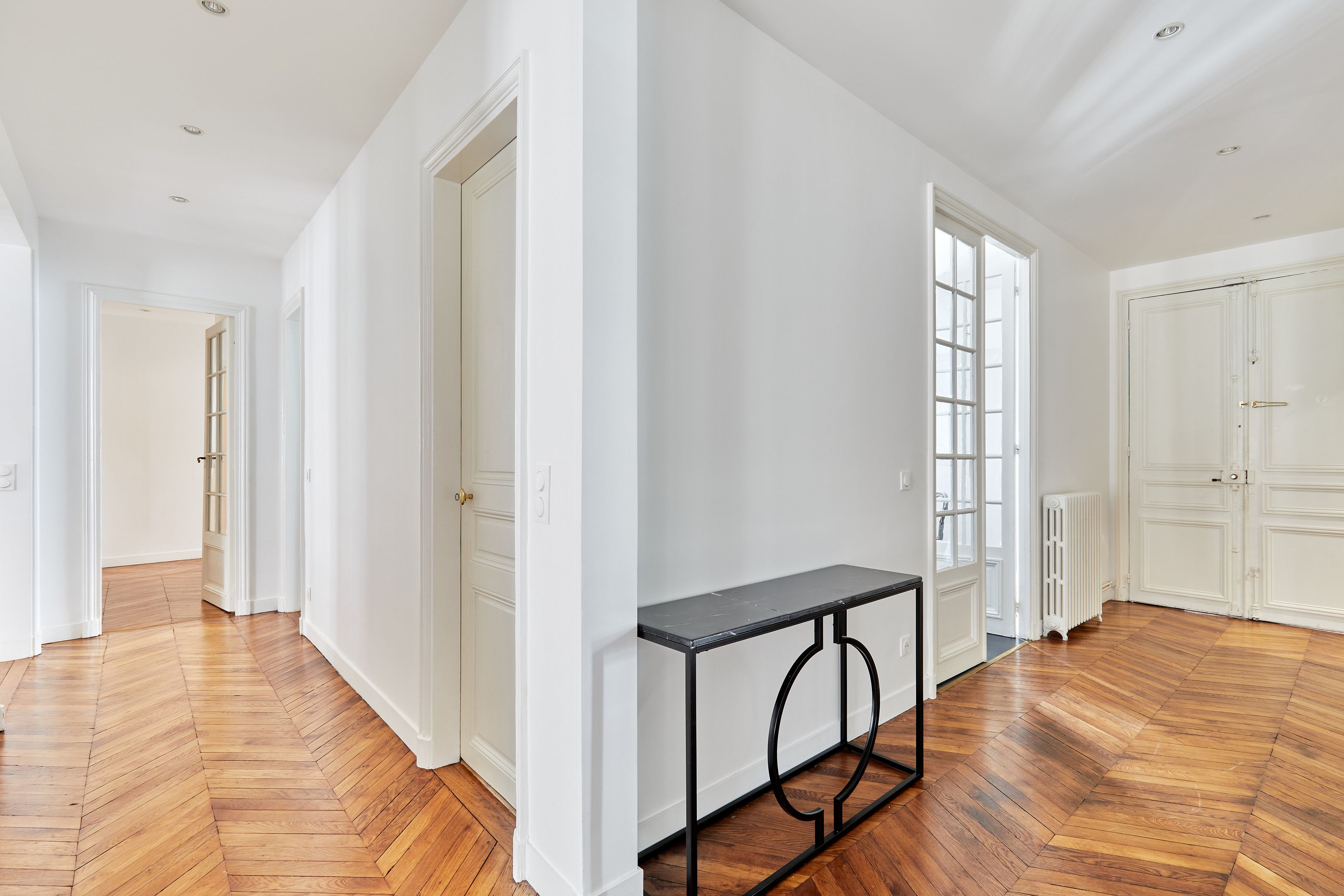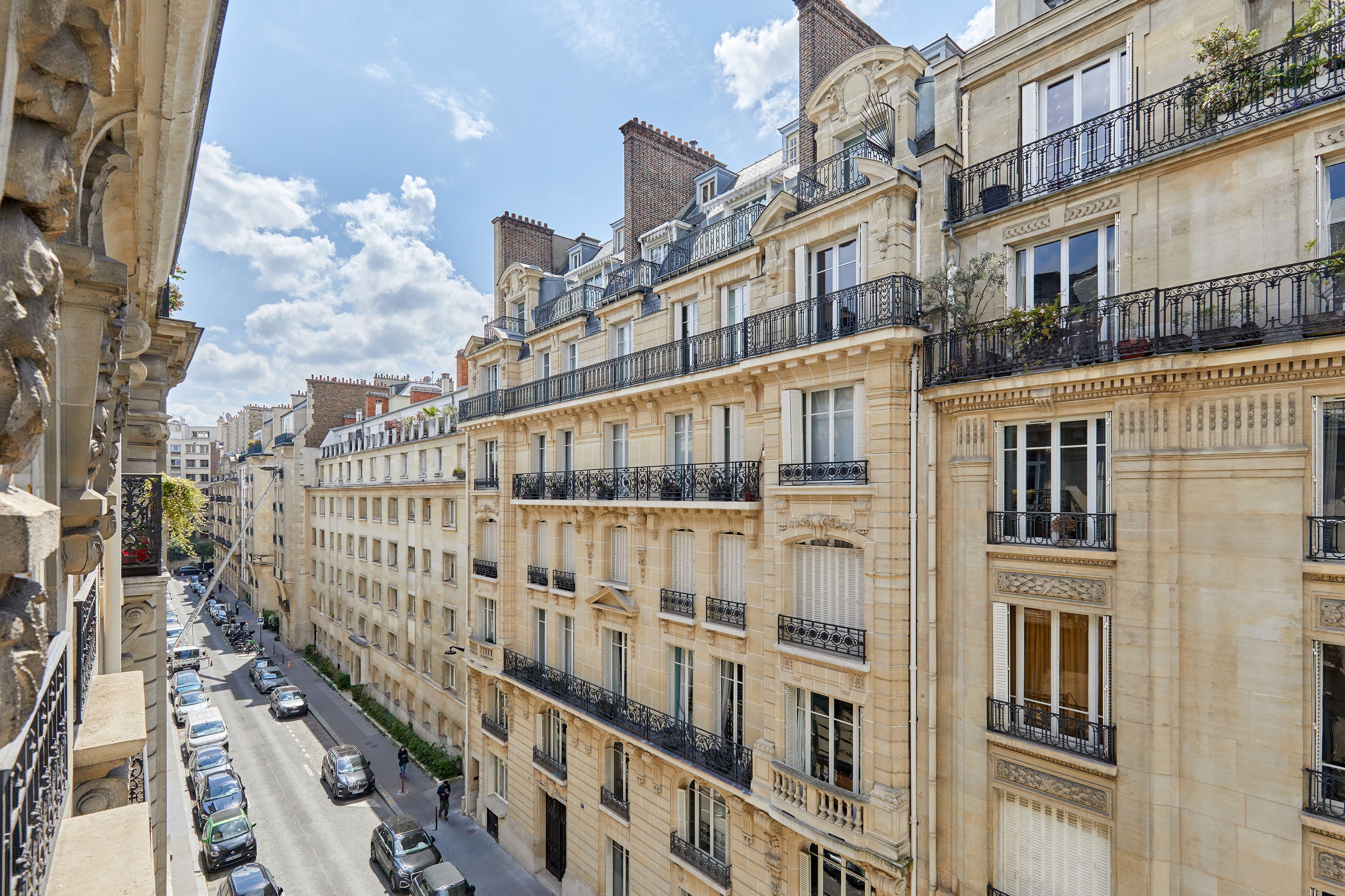 Dans un immeuble ancien parfaitement entretenu, au quatrième étage desservi par ascenseur, appartement meublé de 157,94 m², en très bon état et au mobilier neuf. Entrée, salon et salle à manger sur rue, cuisine dînatoire aménagée et équipée avec espace buanderie séparé, suite parentale (chambre avec placard et salle de bain complète : baignoire, douche, toilettes), deux chambres sur cour avec placards, salle de bains et deux toilettes séparées.
