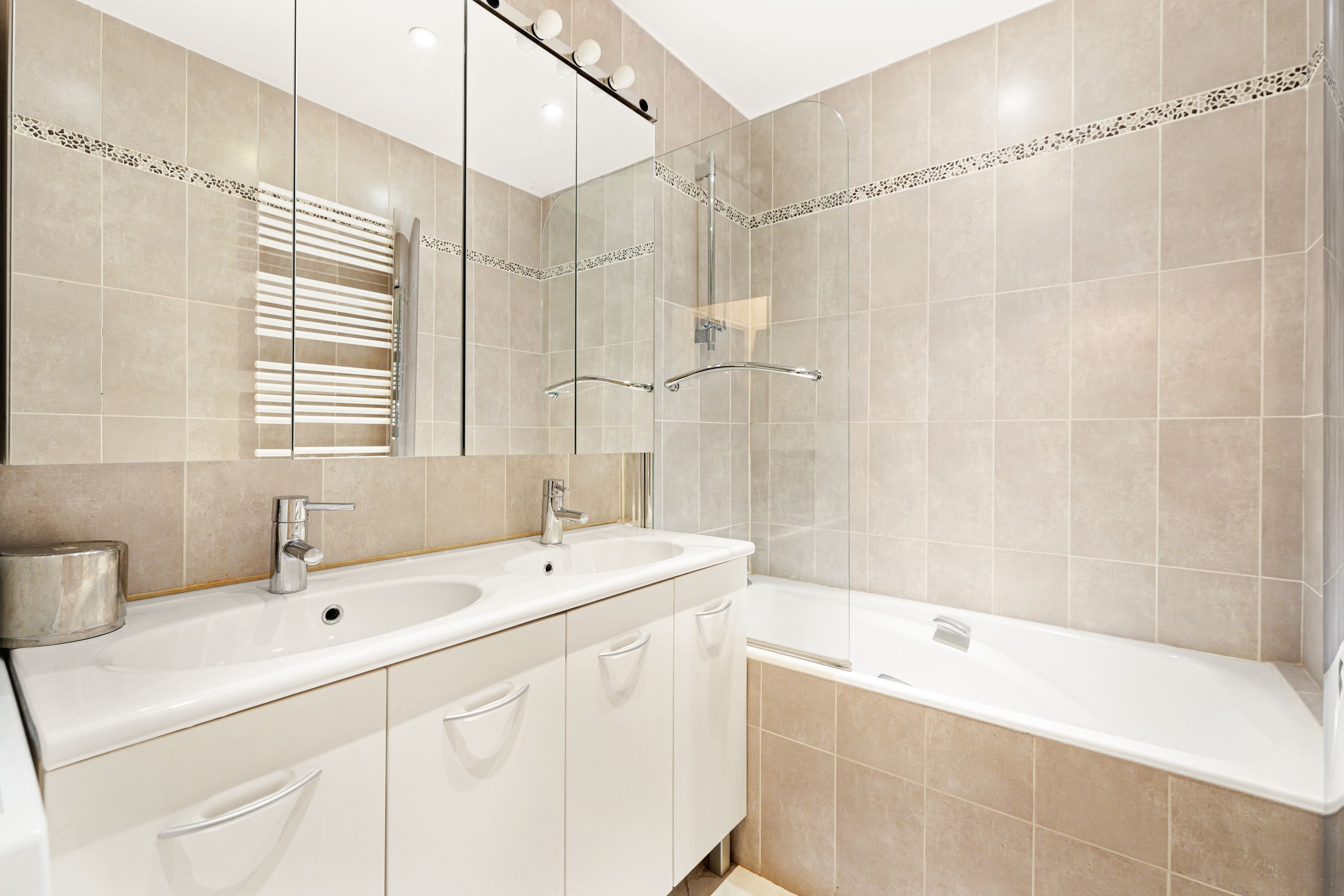 Coeur du Village d'Auteuil. Immeuble récent de standing situé à proximité immédiate de toutes les commodités et des écoles de renom. Au 1er étage, appartement familial de 107m² bénéficiant de beaux volumes et d'une belle luminosité grâce à ses expositions aux Sud-Est et Sud-Ouest. Entrée, salon-salle à manger, cuisine indépendante aménagée et équipée, trois chambres au calme sur cour, nombreux rangements, salle de bains, salle d'eau, toilettes séparées. Cave.