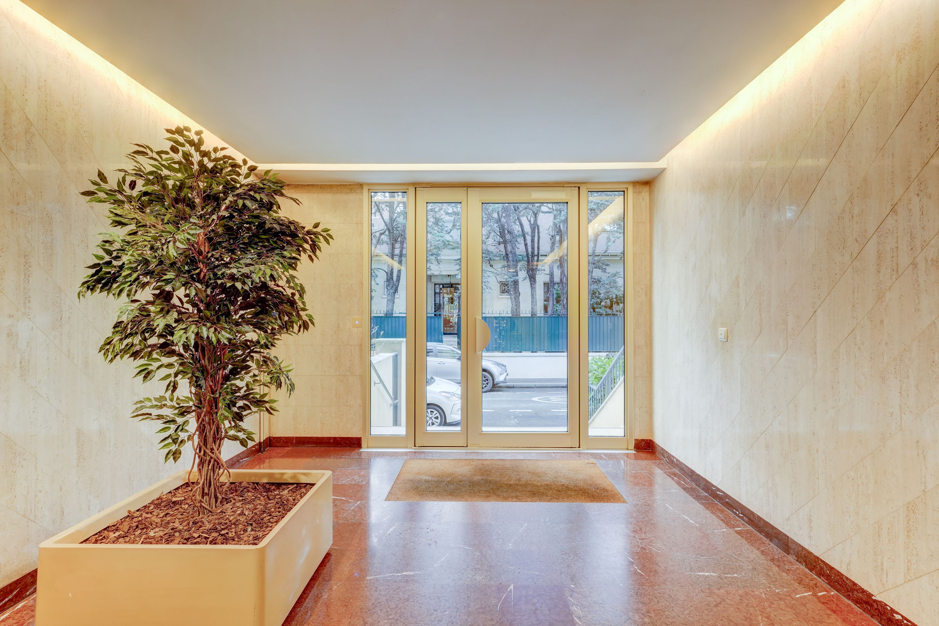 Idéalement situé à proximité immédiate du marché Windsor, au sein d'un immeuble récent de grand standing, au 3ème étage accessible par ascenseur, appartement traversant, intégralement refait en 2023 avec des matériaux de qualité et entièrement climatisé, au plan parfait. Entrée, double réception bénéficiant d'un bel ensoleillement grâce à sa double exposition sud et ouest, cuisine ouverte entièrement équipée, suite parentale complète et trois chambres de belle taille dont deux sont dotées de salles d'eau, une buanderie et toilettes invités. Double box. Cave.