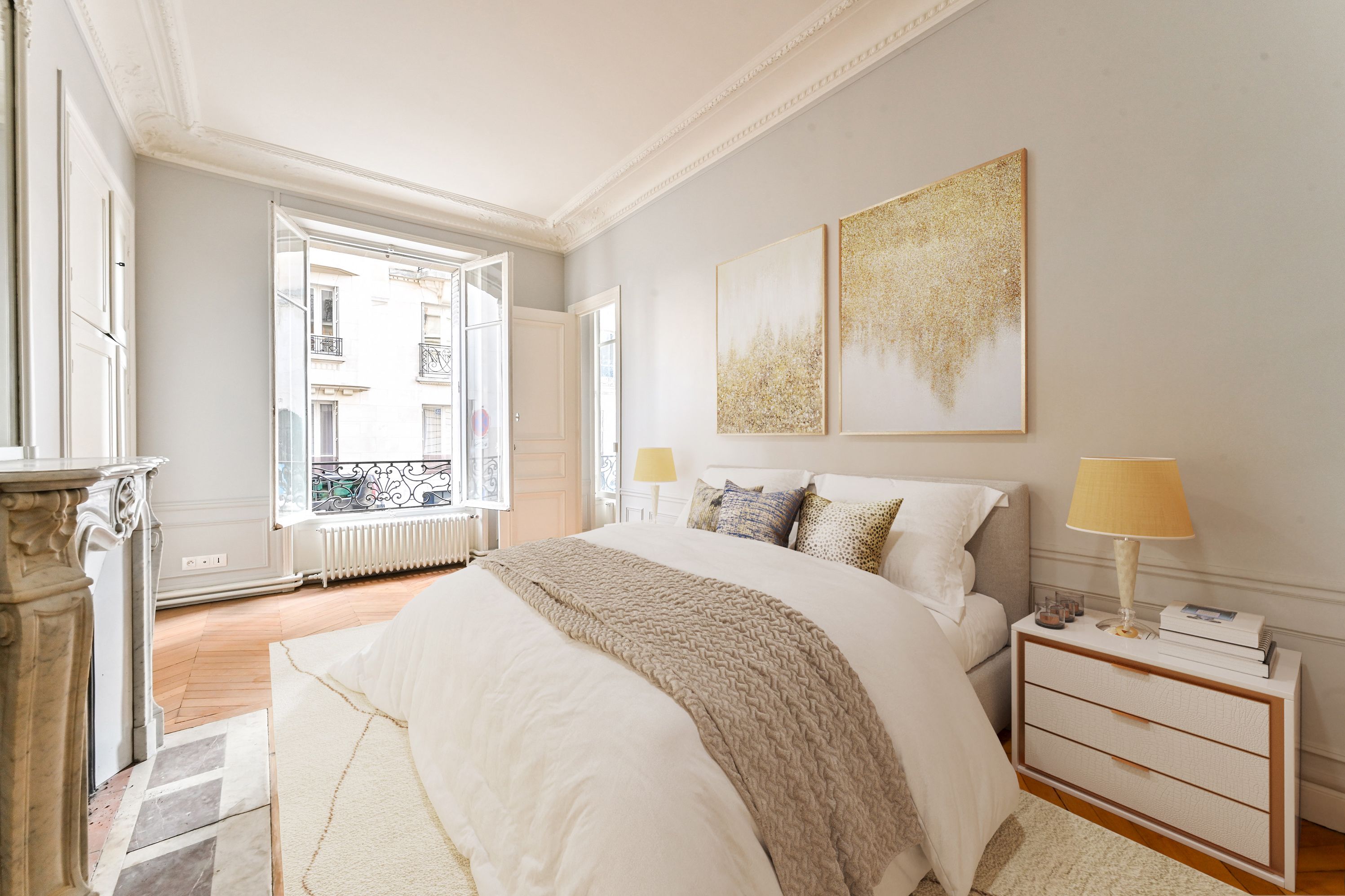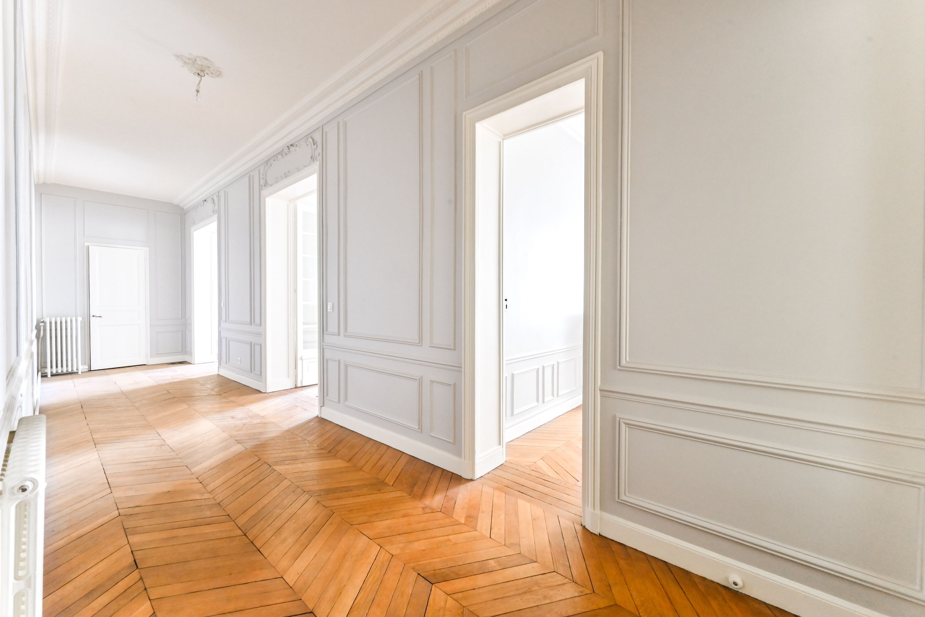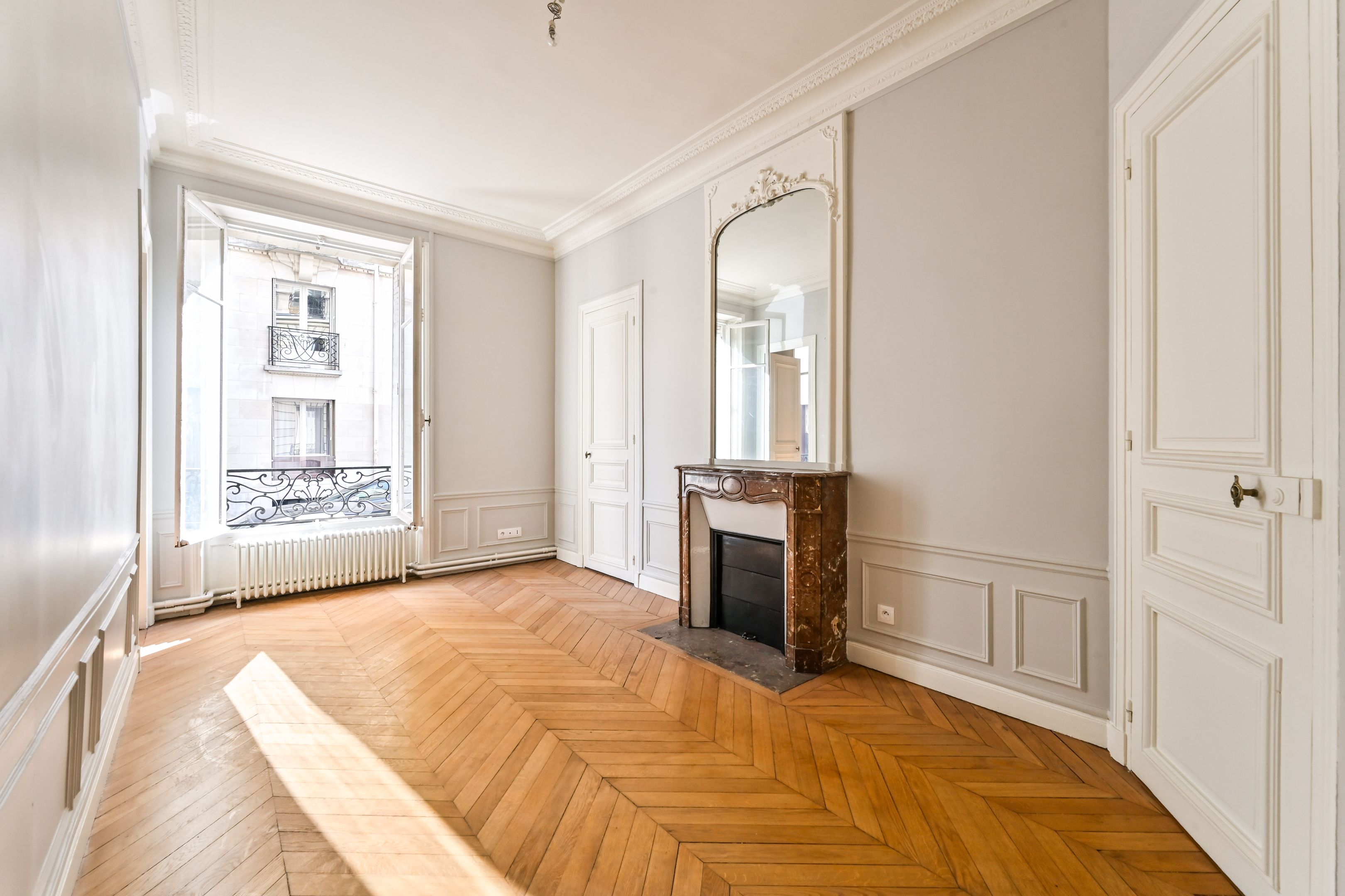 Immeuble ancien de grand standing, élégant appartement au rez-de-chaussée surélevé, exposé sud, en parfait état, bénéficiant du charme des éléments anciens (parquet, moulures, cheminées) ainsi que d'agréables volumes. Galerie d'entrée, séjour, salle à manger, petit salon, cuisine séparée, 3 chambres, salle de bains, toilettes séparées. Profession libérale possible.