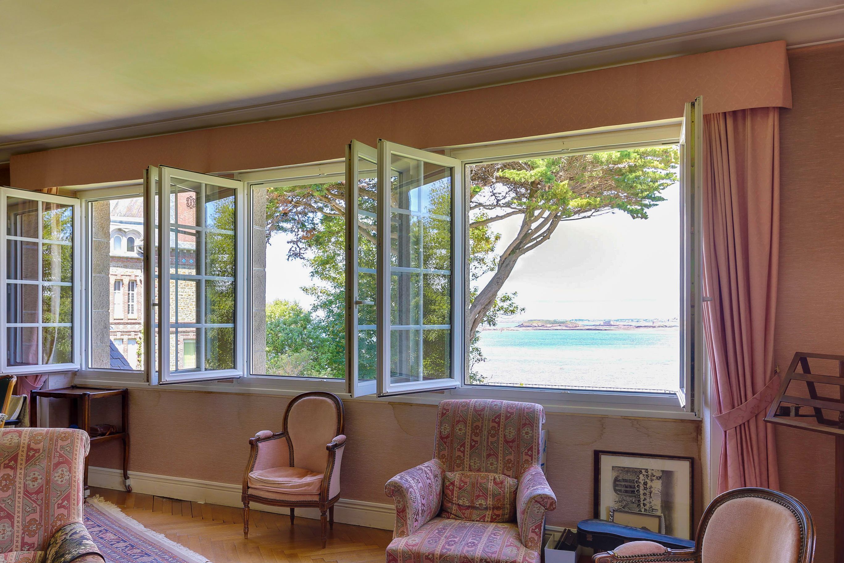Exceptionnelle villa vue mer située au-dessus de la plage de l'Écluse dans le quartier recherché de la Malouine. Cette propriété de caractère de 280m², calme et sans vis-à-vis, bénéficie d'une vue mer, d'un excellent plan et d’un agréable jardin arboré de 1025m² exposé ouest. Entrée, vaste pièce de réception avec cheminée ancienne, salle à manger, cuisine dinatoire, chambre parentale avec salle de bains, 3 chambres de belle taille avec cabinets de toilettes. À l'étage : pièce de vie 55m² avec belle hauteur sous plafond. En rez-de-jardin : bureau, bar, salon d'été, buanderie et double garage.