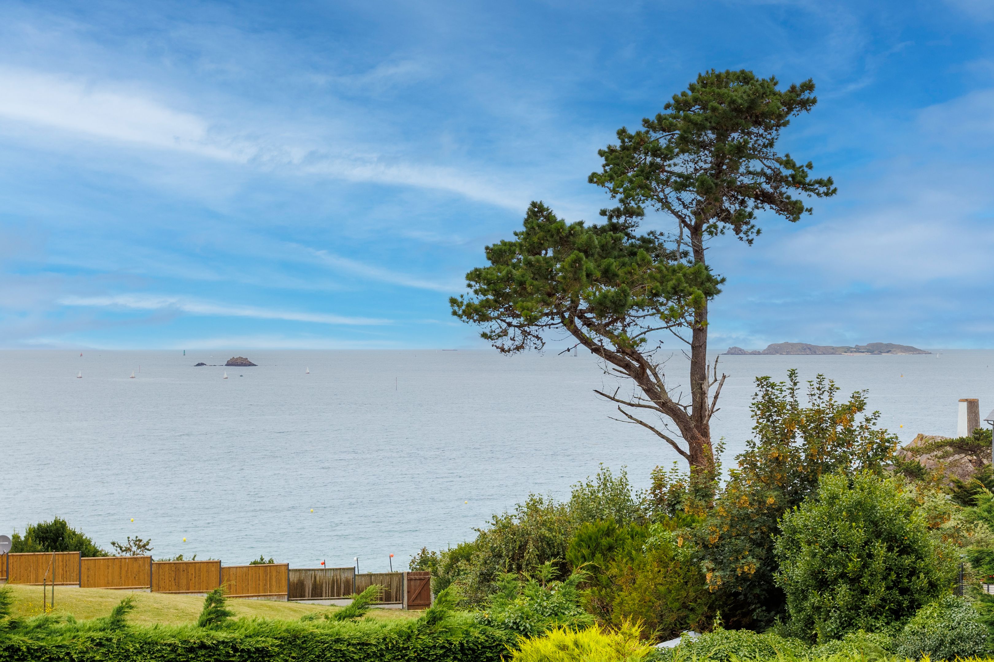 Plage de la La Fourberie, à mi-chemin entre Dinard et Saint-Lunaire. Sur une parcelle de 940m², maison bénéficiant de belles vues mer, de multiples extérieurs et d'une proximité immédiate avec la plage. Au rez-de-chaussée accessible de plain-pied, entrée, lumineux séjour triple exposition profitant d'une large vue marine et du confort d'une cheminée, deux terrasses l'une face à la mer l'autre profitant de l'orientation sud-ouest, cuisine ouverte, suite parentale. À l'étage, terrasse vue mer, 3 chambres, salle d'eau. Sous-sol complet avec atelier, buanderie, caves et garage. Jardin, grande aire de stationnement pour véhicules et bateau.