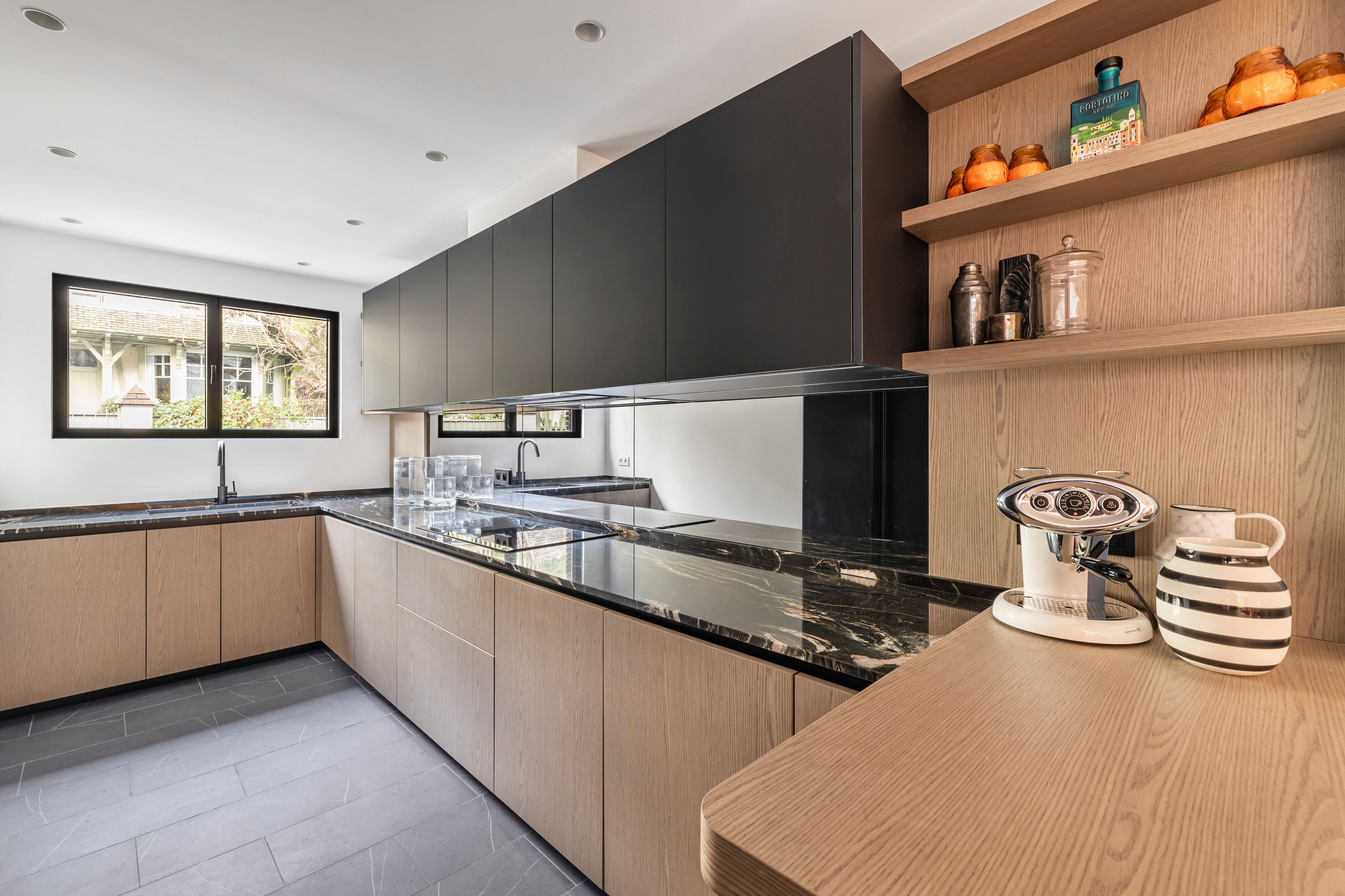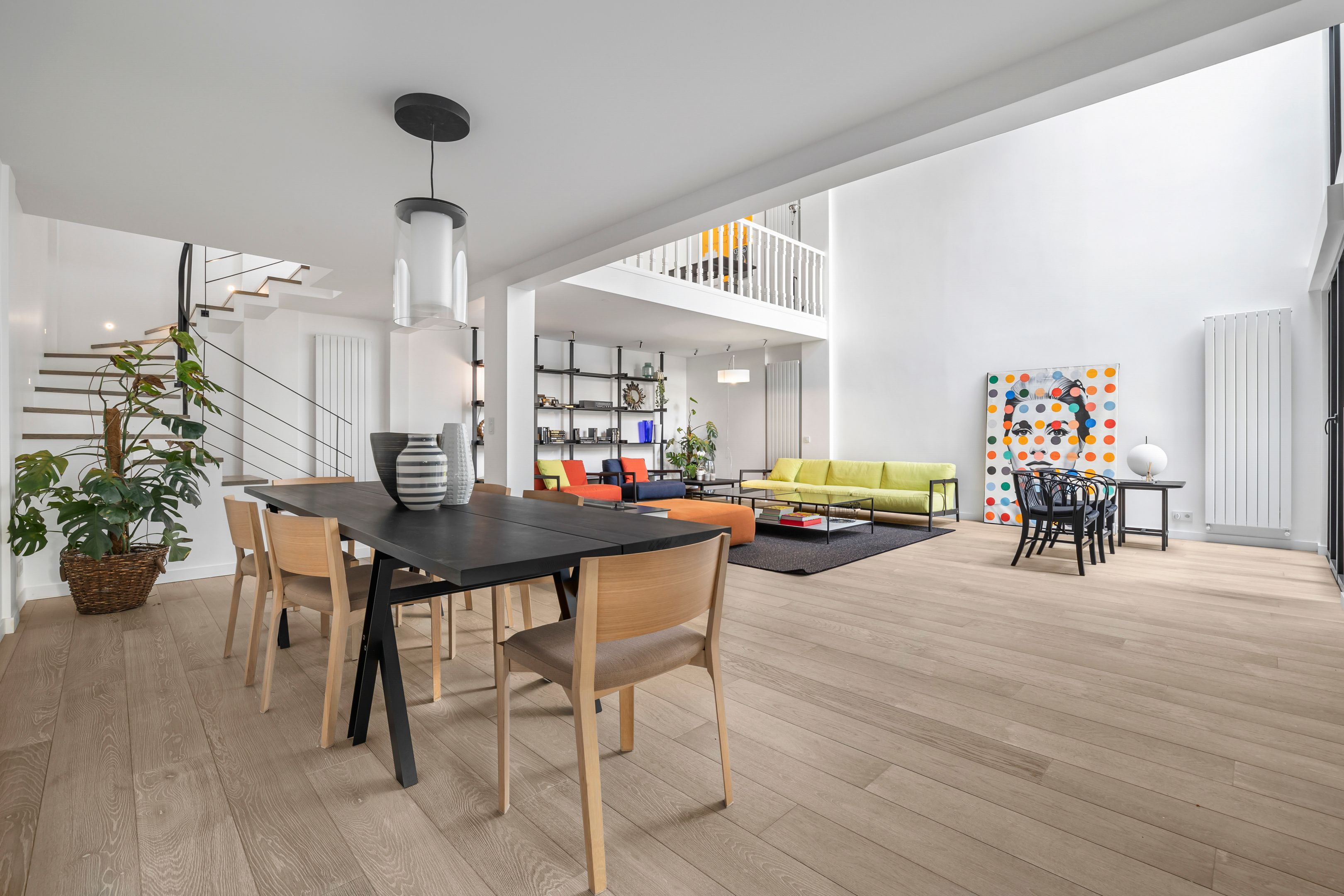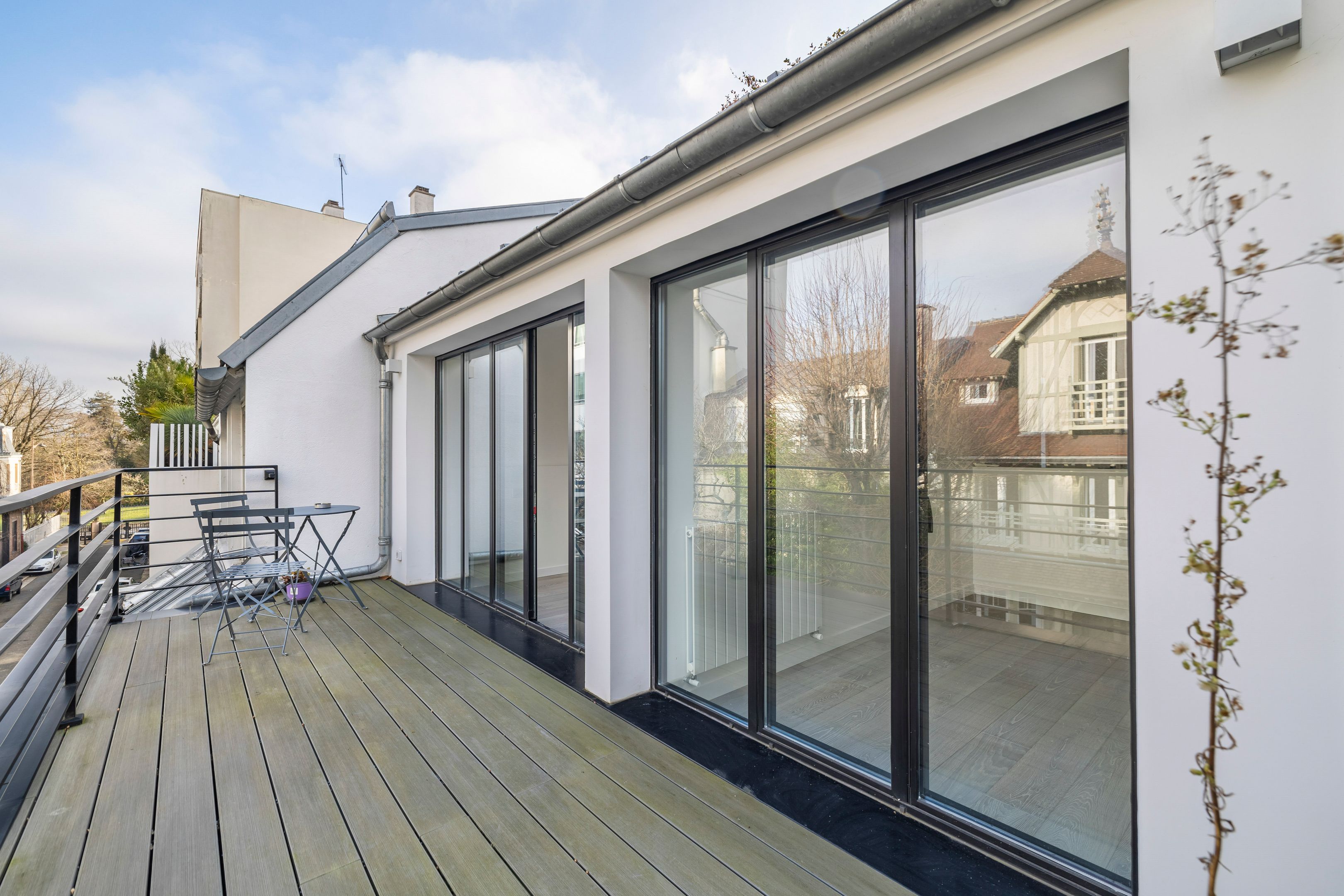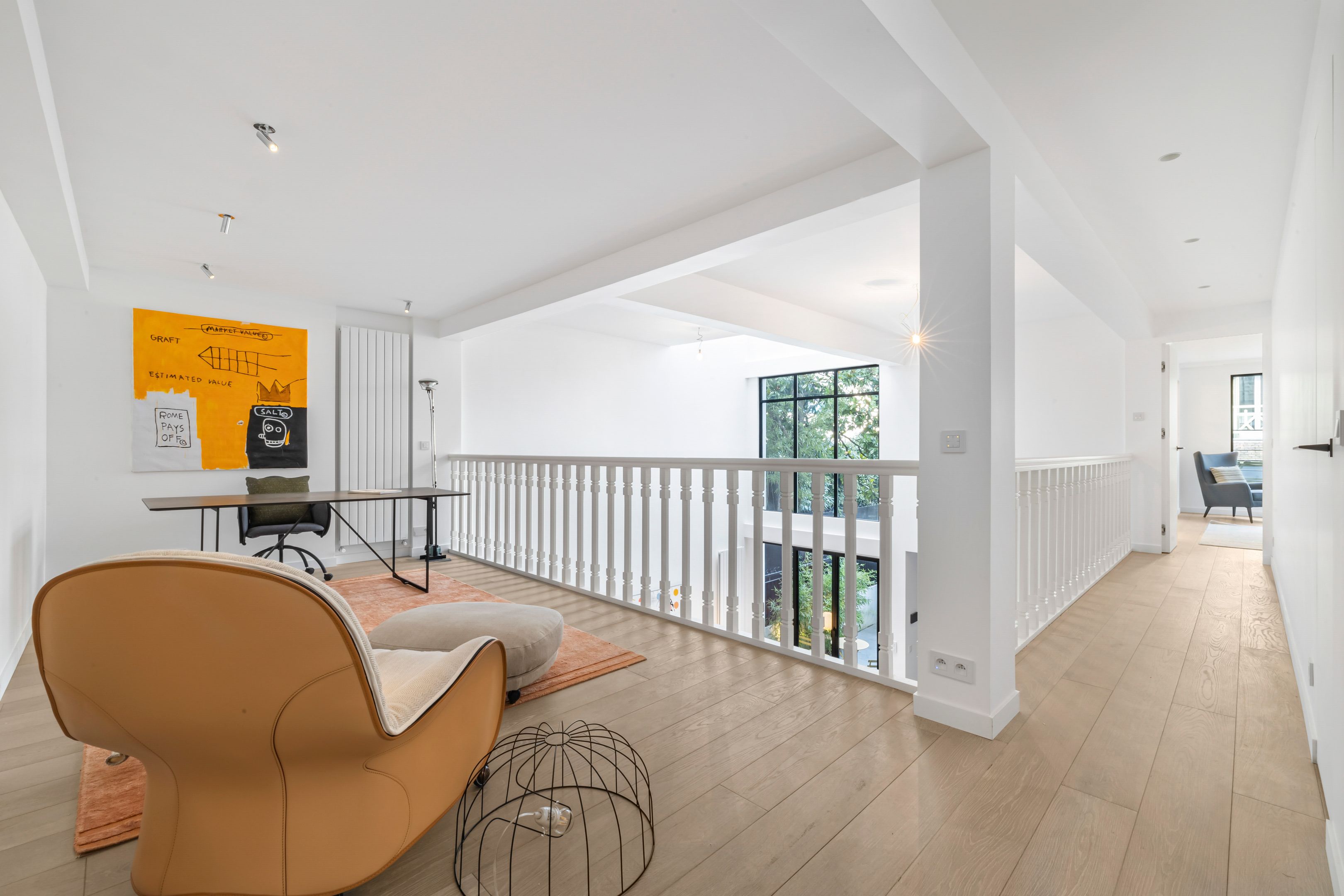 À proximité immédiate du parc Montsouris, dans une allée privée sécurisée et au calme, très belle maison de 220m² bénéficiant d'une rénovation de standing et d'un vaste toit terrasse. Au rez-de-chaussée : patio de 12m² desservant l'entrée, grand séjour baigné de lumière, cuisine ouverte équipée, toilettes invités, buanderie. Au 1er étage : mezzanine, suite parentale (salle de bains, dressing, toilettes). Au 2e étage : 3 chambres chacune avec salle d'eau, large balcon de 13m² accessible depuis 2 chambres, toilettes. Au 3e étage : exceptionnel toit-terrasse de 42m². 2 places de parking.