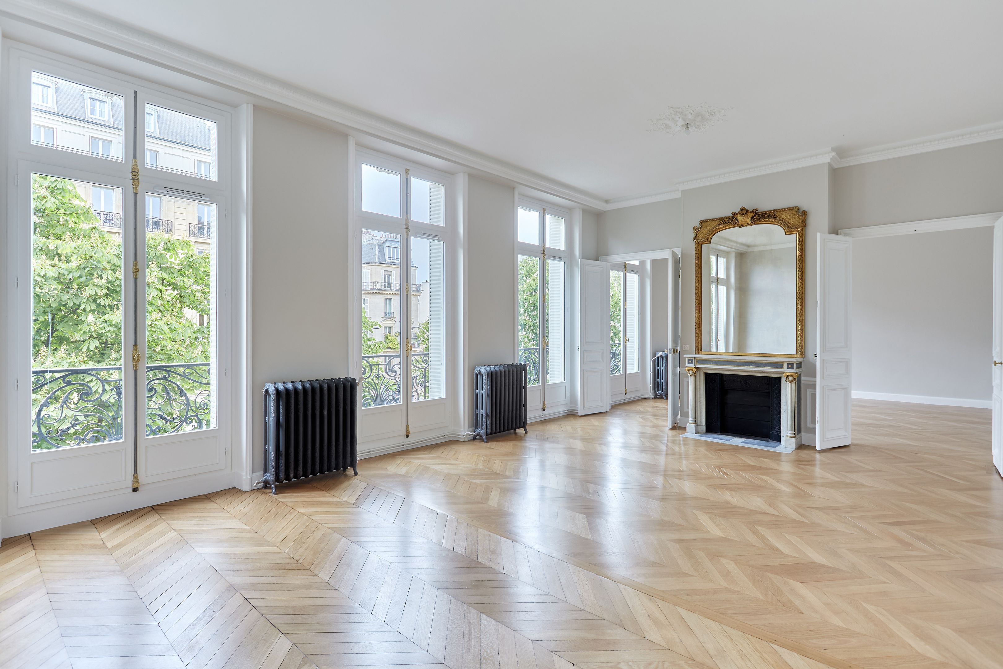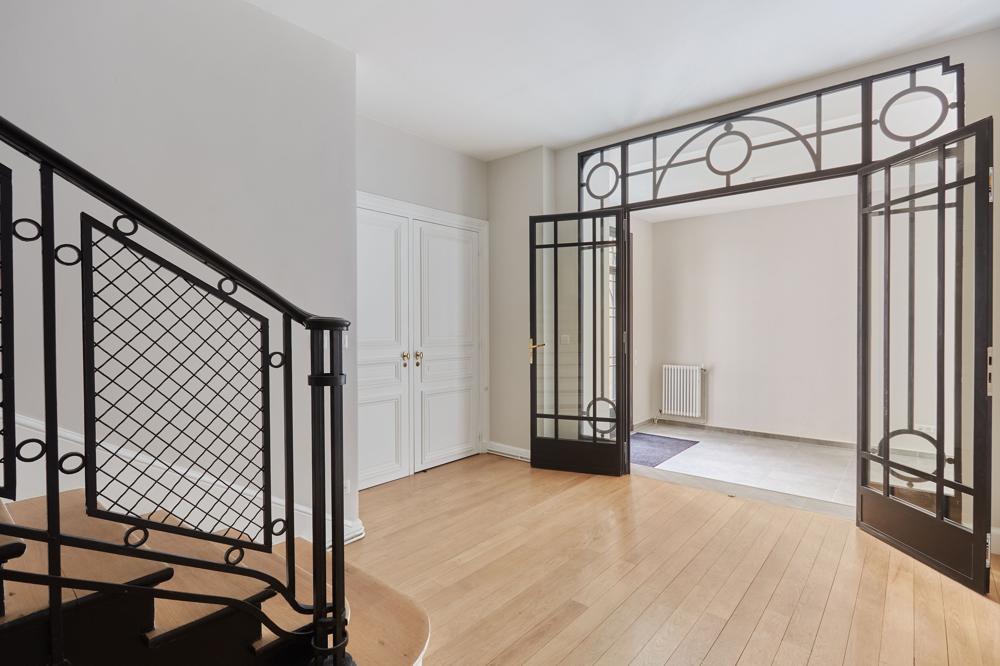 À proximité immédiate du parc Monceau, hôtel particulier de 270 m², parfaitement rénové, proposé en location non-meublée. Il propose trois niveaux d'habitation plus sous-sol. Rez-de chaussée : entrée avec vestiaire. Deuxième niveau : deux chambres (14 et 15 m²), kitchenette, salle d'eau avec toilettes. Dernier étage avec salon de 40 m², salle à manger de 25 m², jardin d'hiver, cuisine et deux chambres de 19 m², (l'une en suite avec walk-in dressing, salle de bains et toilettes, l'autre avec salle d'eau).