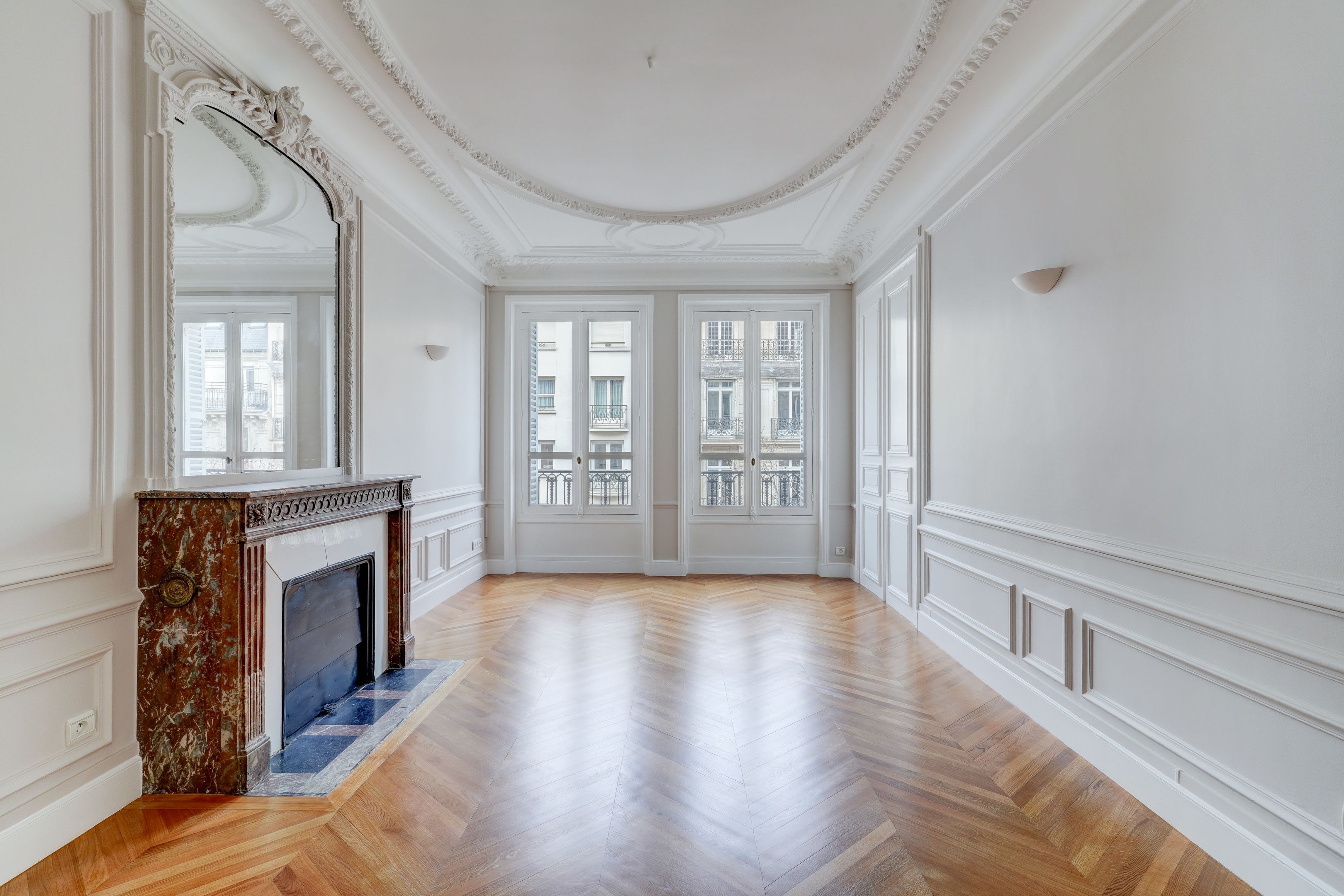 Situé au 4ᵉ étage d’un élégant immeuble en pierre de taille avec ascenseur, ce vaste appartement de 260 m², seul sur le palier, offre de très beaux volumes.