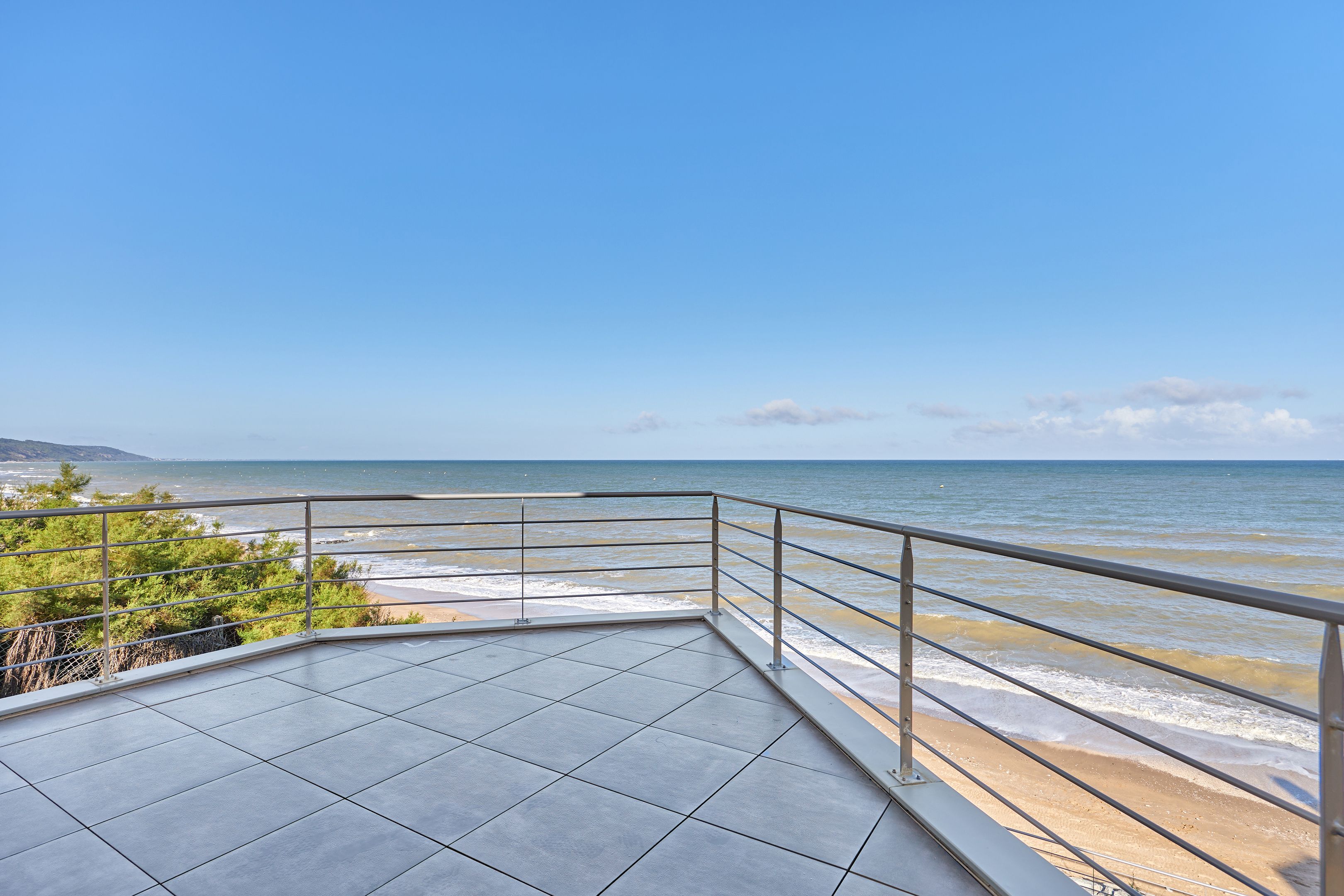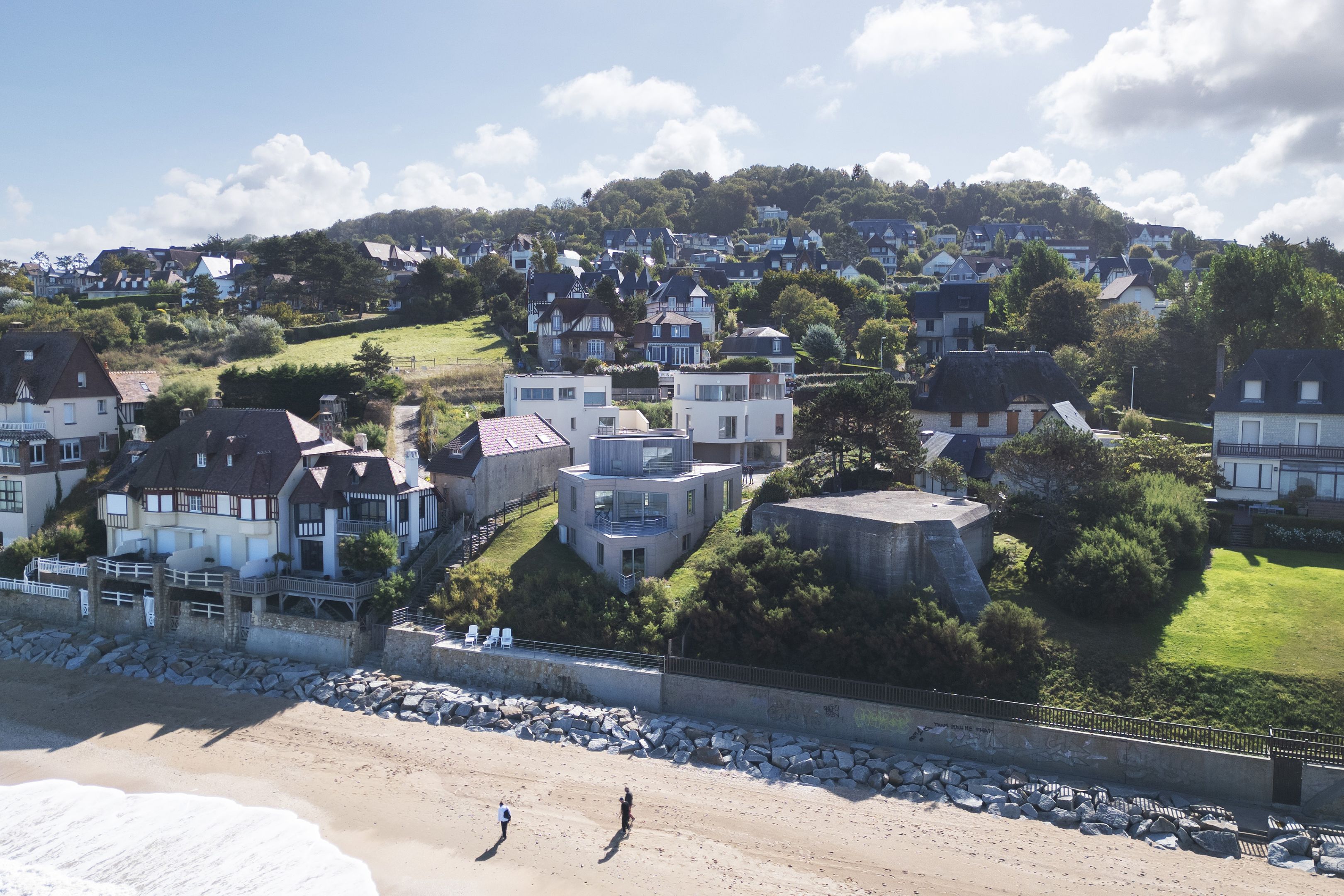 Emplacement exceptionnel en 1re ligne avec accès direct plage, à 400m des commerces de Blonville-sur-Mer, magnifique propriété contemporaine. Au rez-de-chaussée : spacieuse pièce à vivre avec insert ouverte sur une terrasse face mer, toilettes invités. Au 1er étage : une chambre avec vue mer, salle d'eau et toilettes. En souplex : large suite parentale avec balcon vue mer, dressing, salle de bains et toilettes, deux chambres, salle de bains, toilettes séparées.