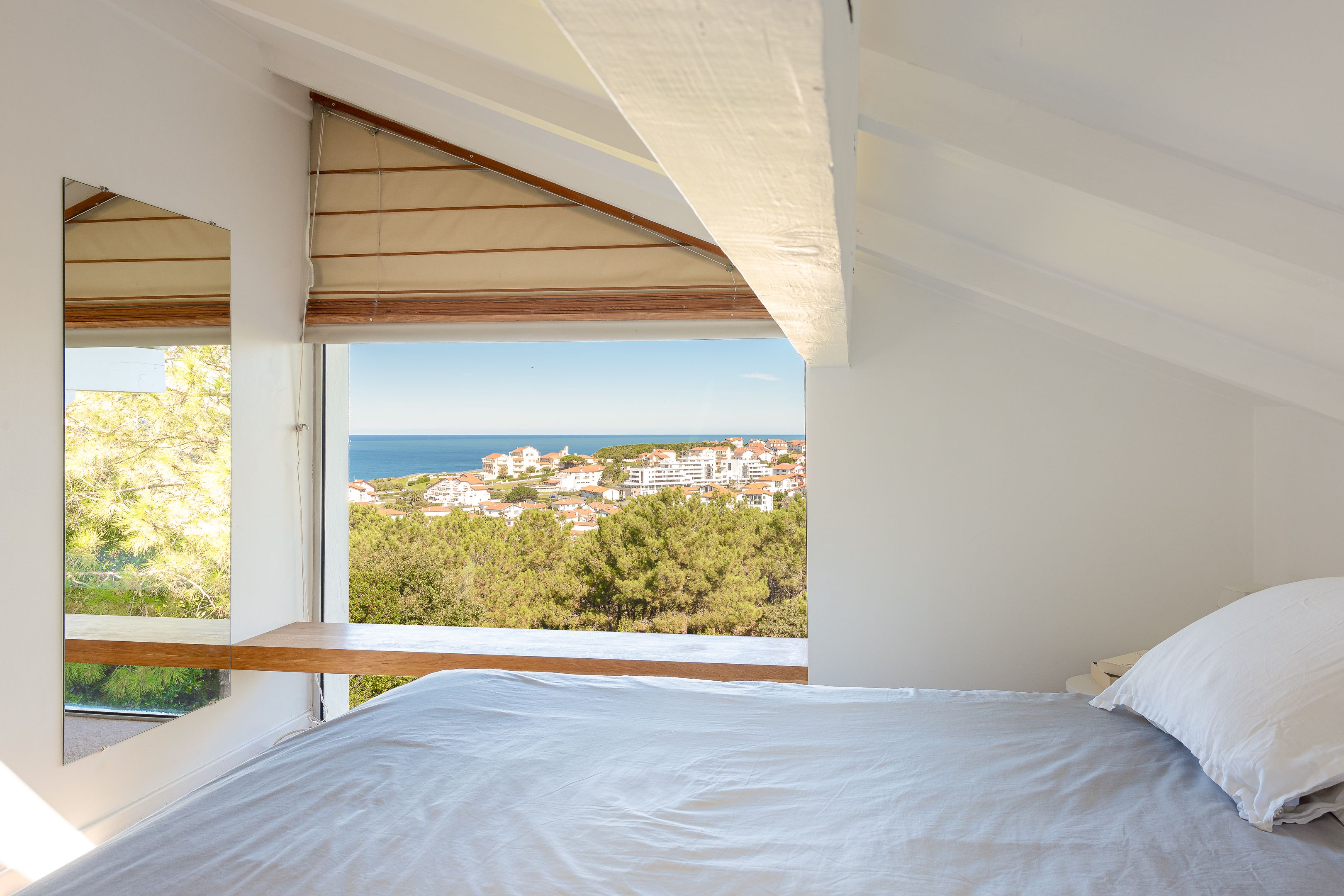 À l'étage, une suite parentale très lumineuse avec une vue sur l'océan.