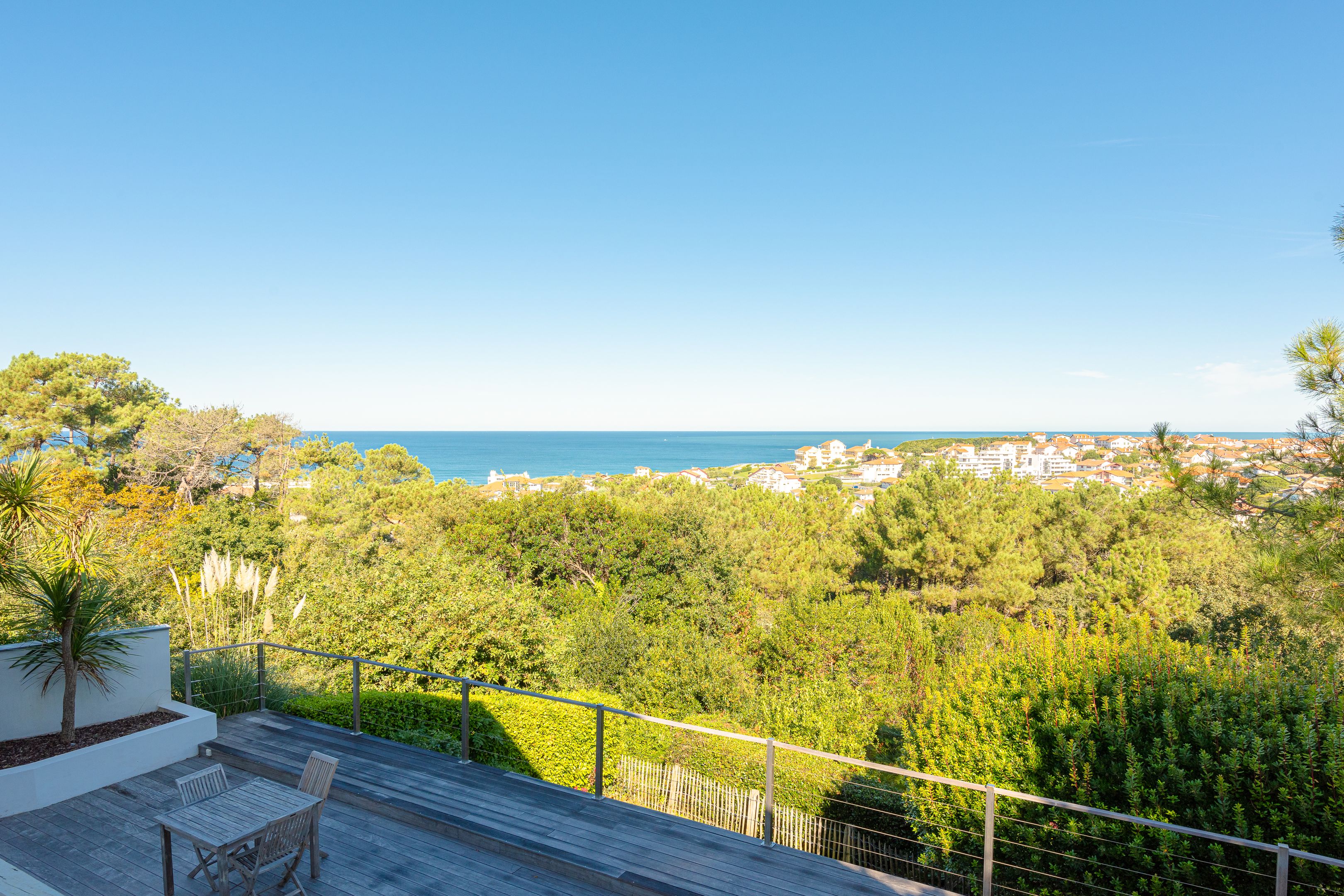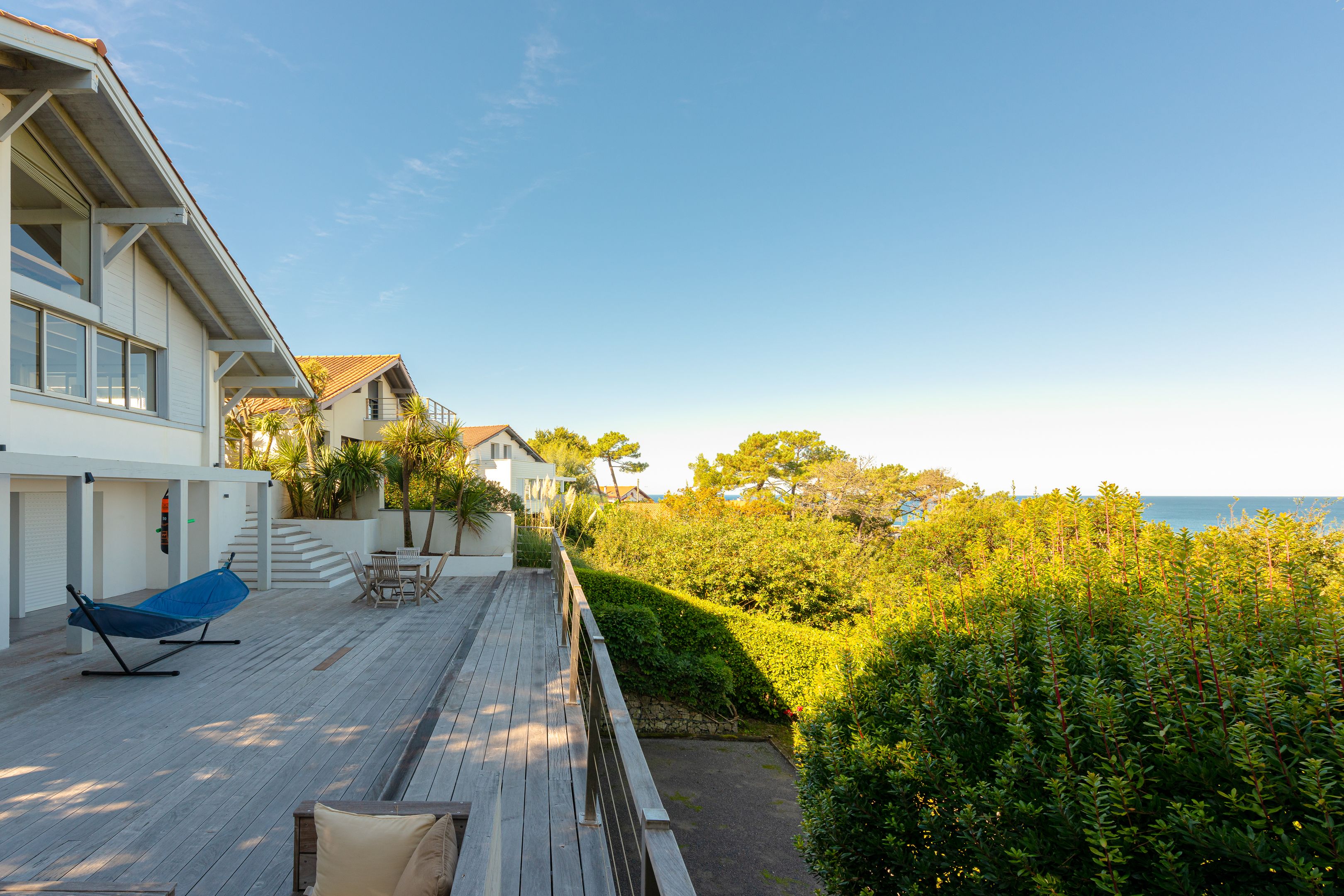 Emplacement privilégié pour cette magnifique villa californienne de 200 m² de surface au sol. À quelques minutes à pied de la plage de la Milady et du golf d'Ilbaritz. En position dominante, elle offre une vue mer exceptionnelle depuis chaque pièce.