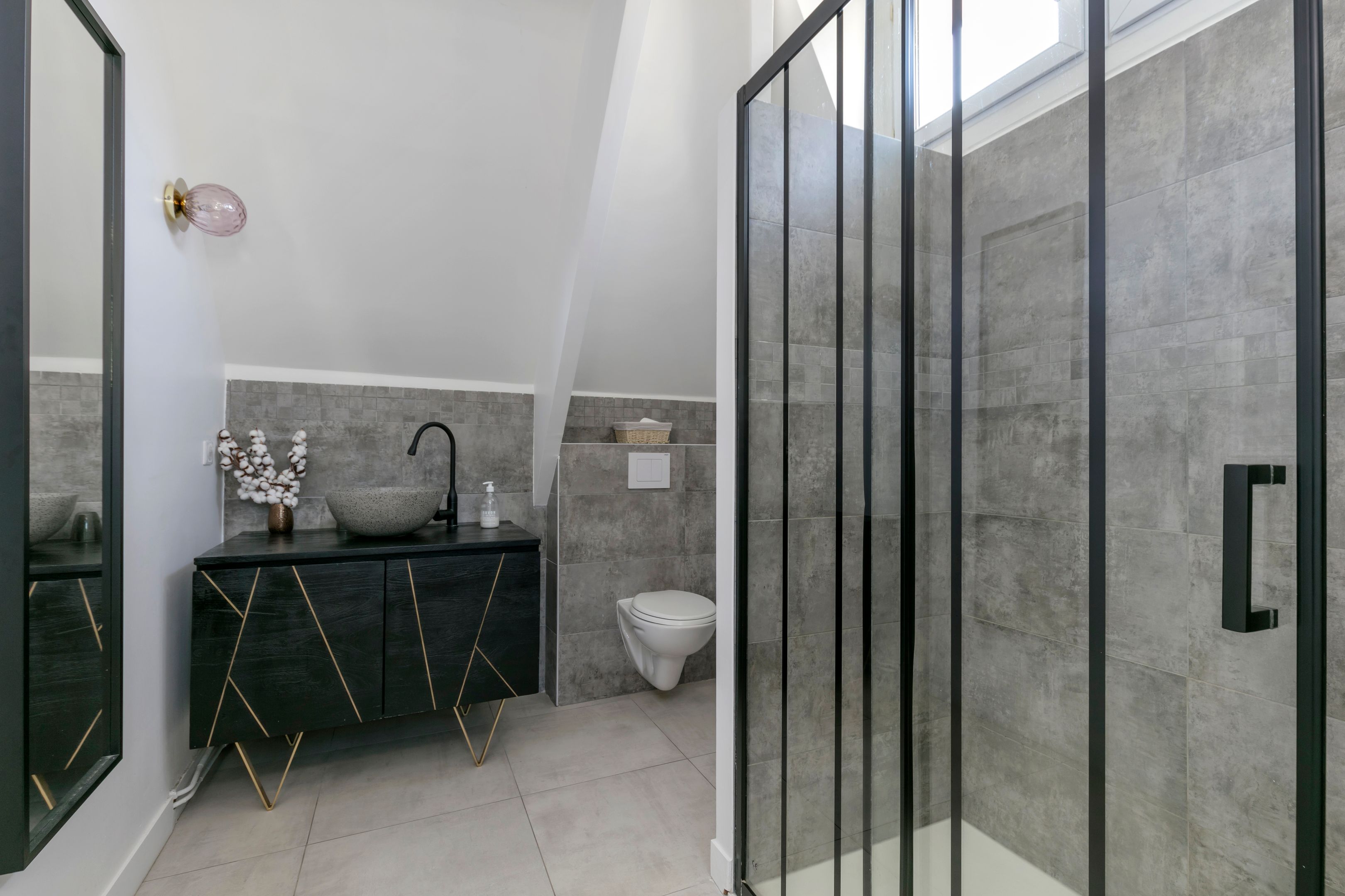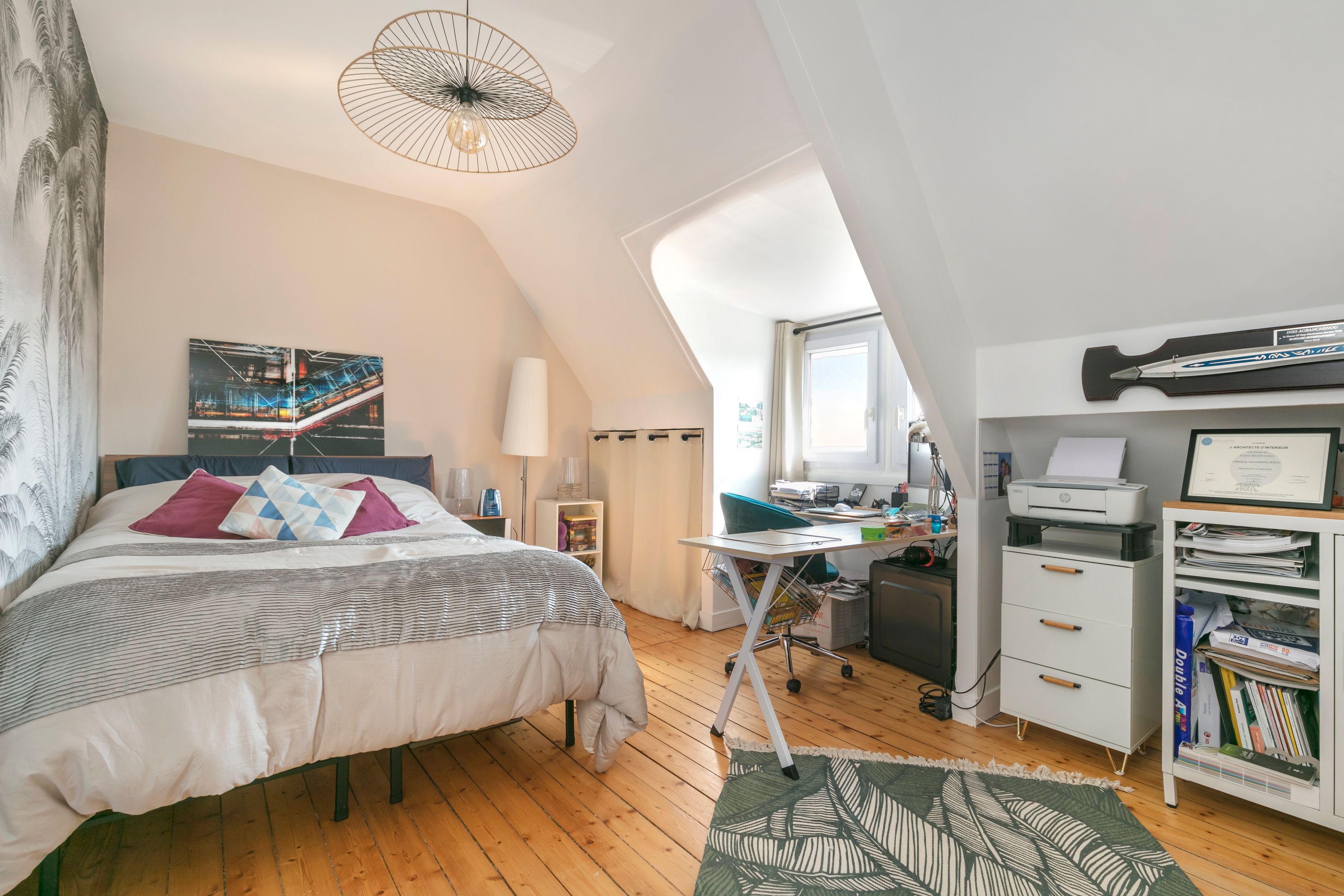 Au deuxième étage, deux chambres supplémentaires bénéficient d’une vue dégagée, accompagnées d’une salle de douche.
