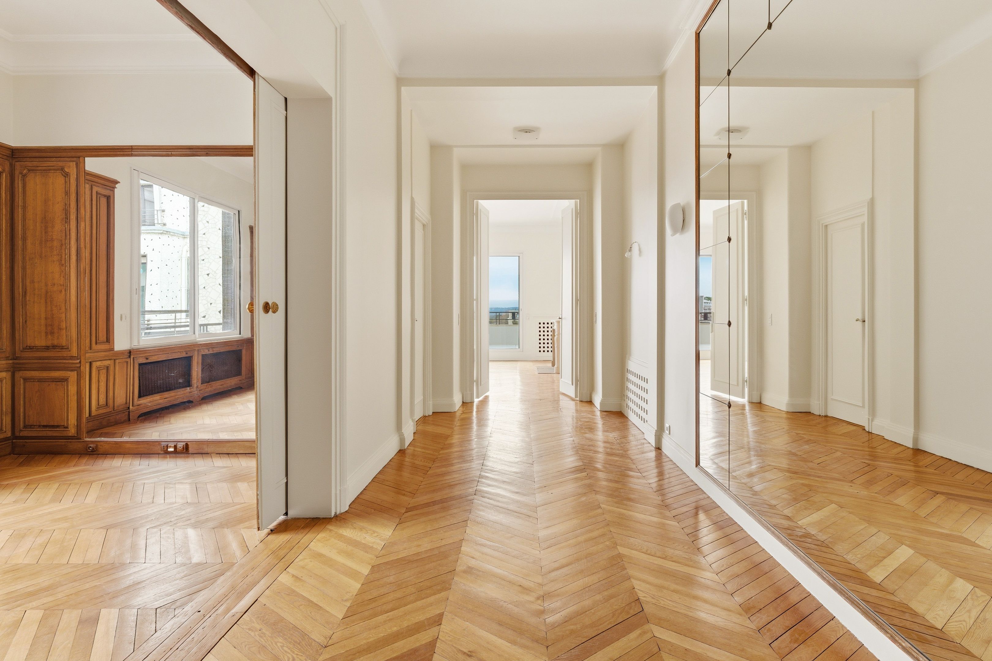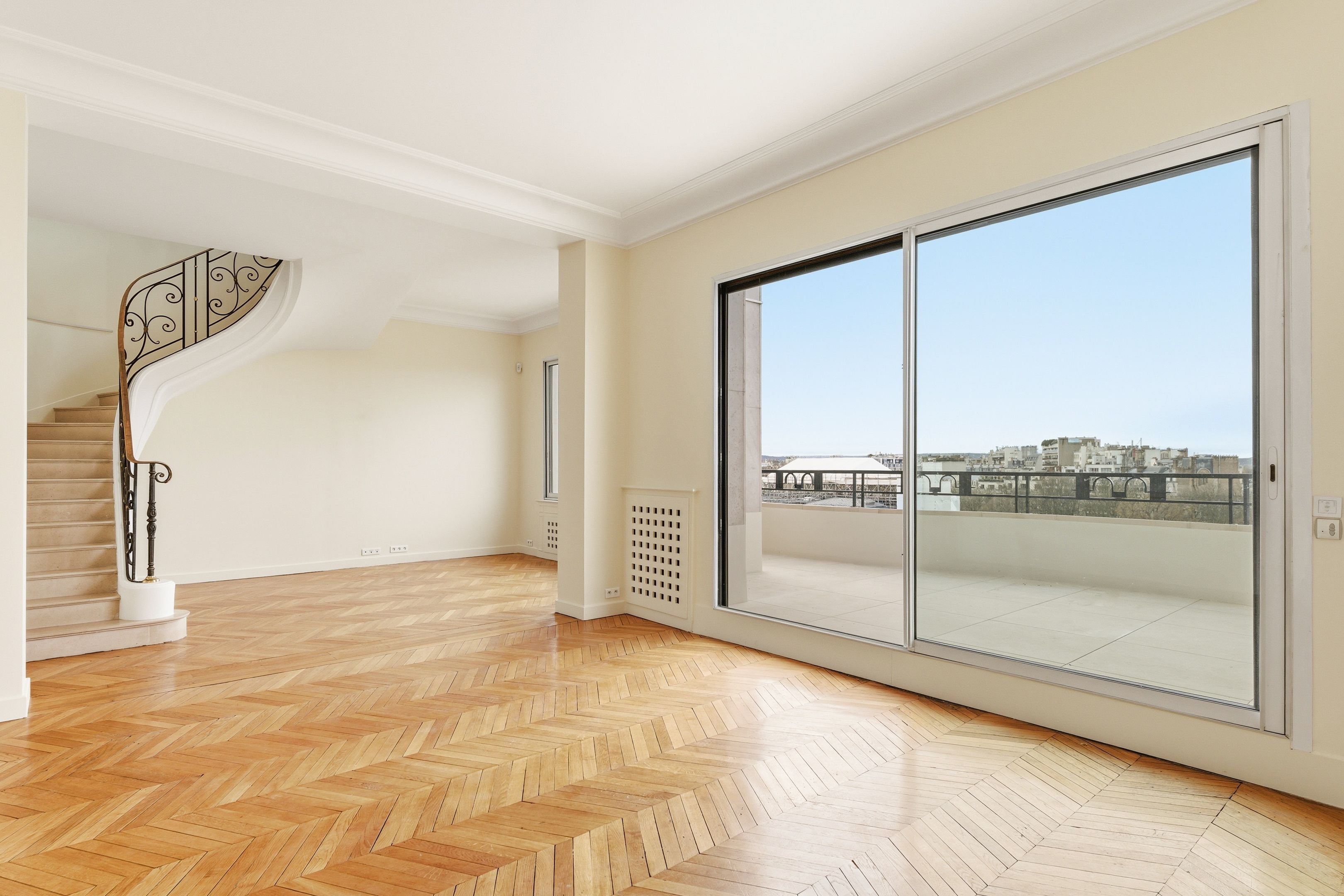 Henri-Martin-La Muette OCDE, belle adresse, immeuble des années 30 de grand standing aux parties communes soignées, 6ème et dernier étage noble par ascenseur, superbe appartement de 221 m² ensoleillé, doté de deux belles terrasses de plain-pied et d'une superbe vue dégagée sur l'ouest parisien. Galerie d'entrée, double séjour, pièce en duplex, cuisine entièrement aménagée et équipée, bureau avec boiserie, dégagement offrant des rangements intégrés, suite parentale complète (salle de bains, toilettes et grand dressing), deux autres chambres, deuxième salle de bains, salle de douche avec toilettes, toilettes invités et buanderie. Au sous-sol, une cave et un box avec chargeur électrique. Possibilité d'un deuxième box et d'une chambre de service en supplément. Location en bail Code civil uniquement. Disponible immédiatement.