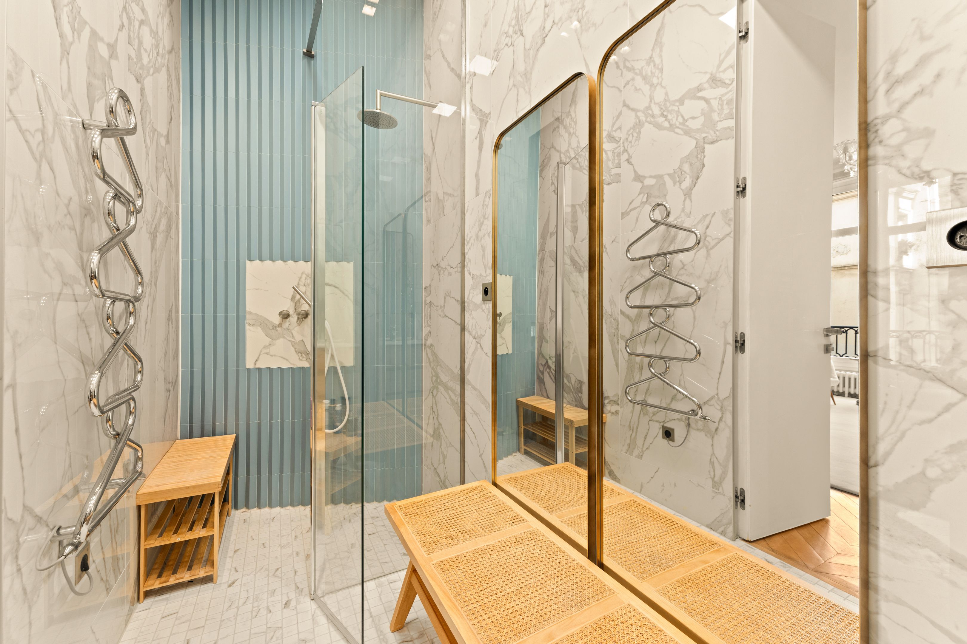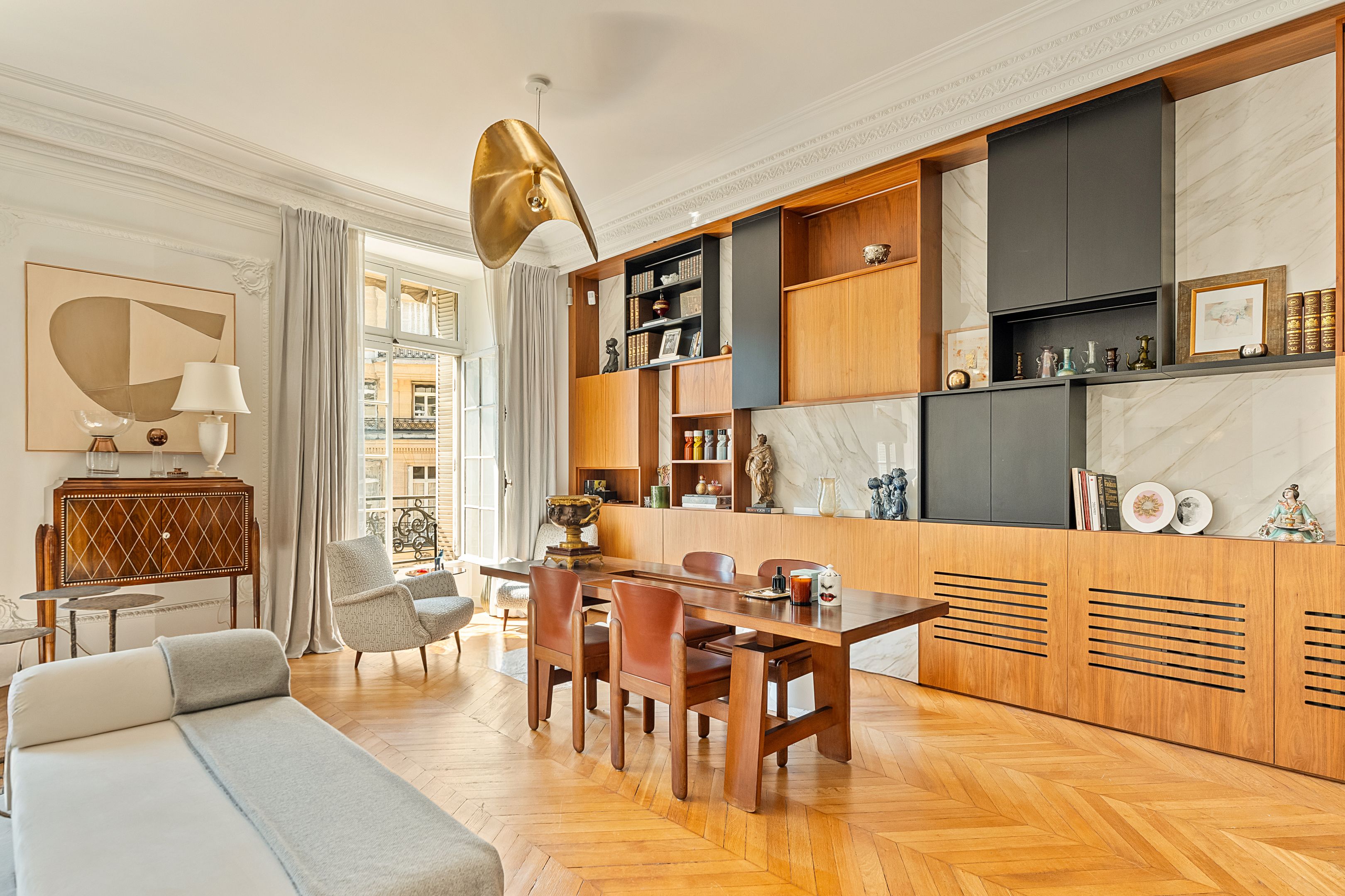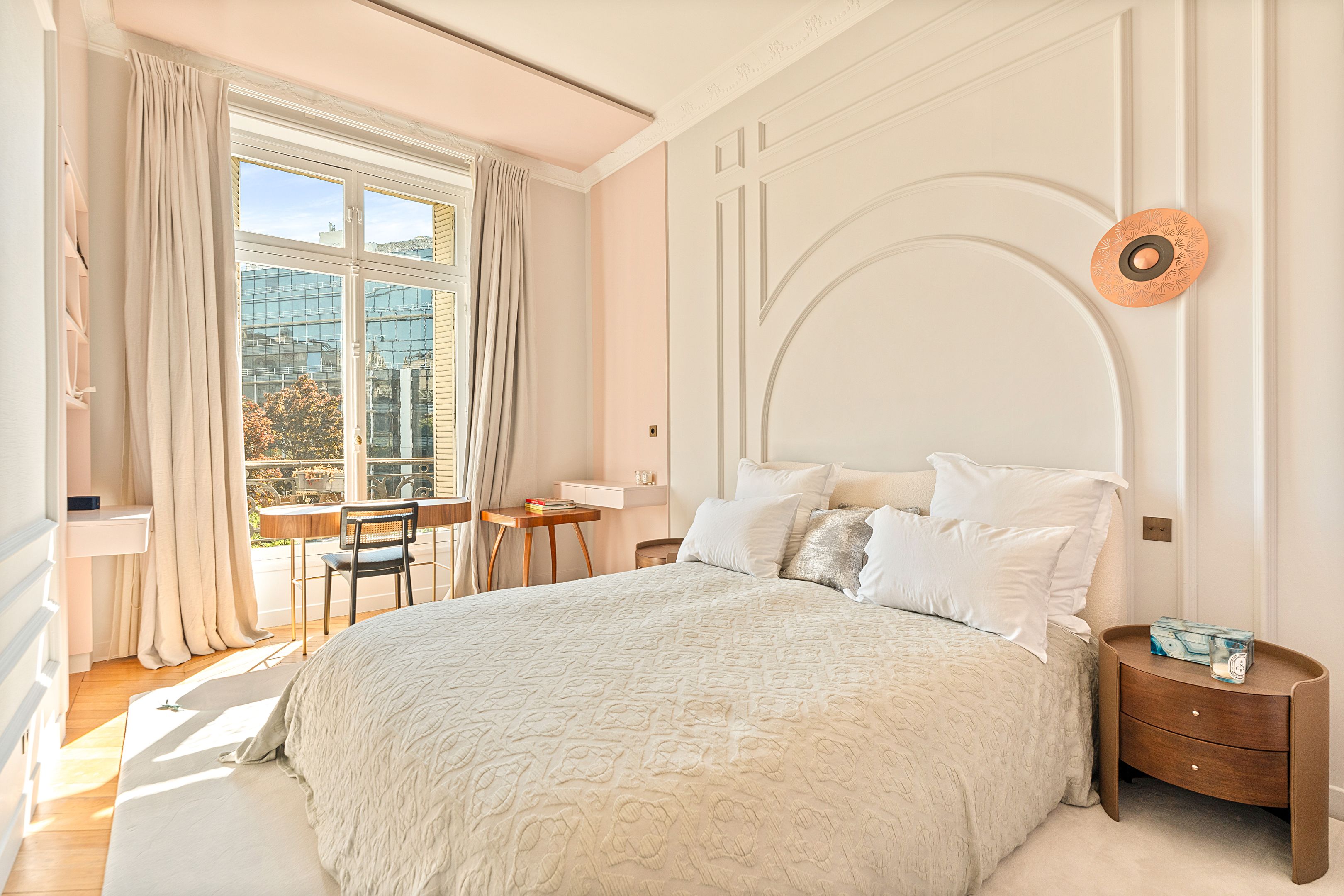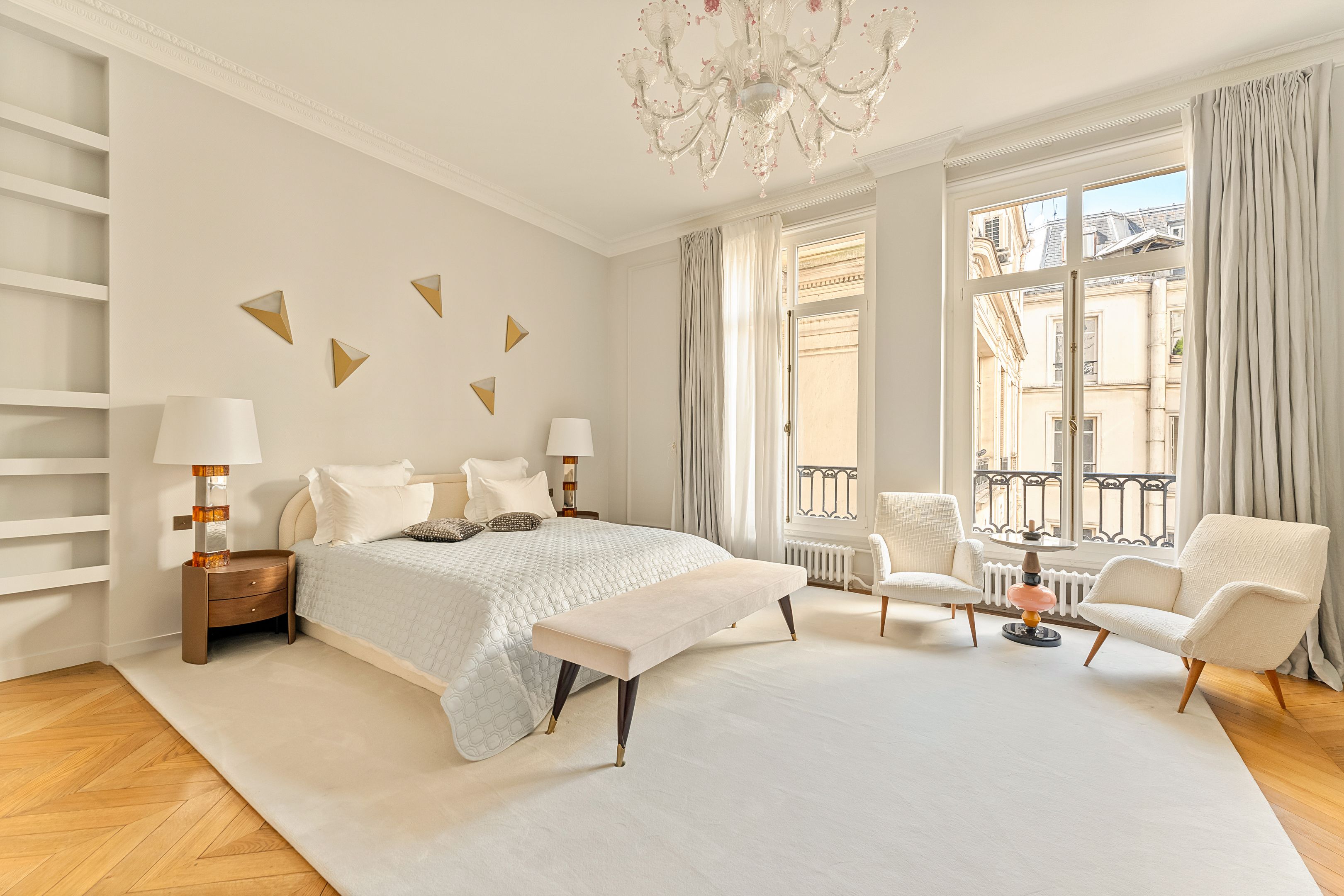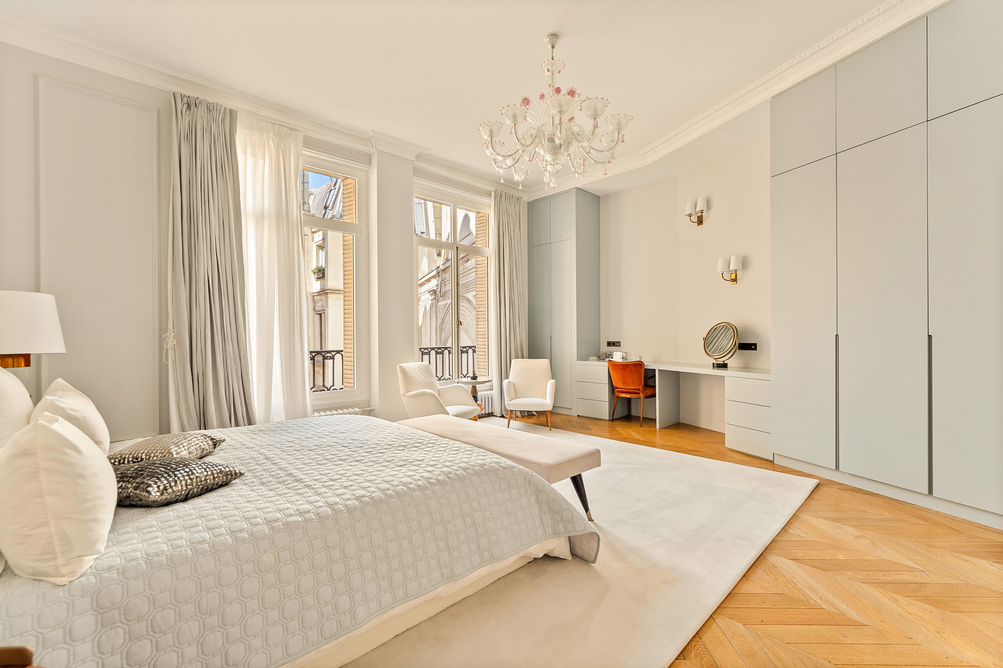 Situé au 3ème étage d'un immeuble haussmannien de très grand standing, desservi par ascenseur et bénéficiant des services d'un gardien à demeure. Galerie d'entrée, salon de réception, salle à manger, cuisine équipée luxe , 2 belles suites avec grand dressing, salle d'eau,, toilettes, deux autres chambres dotées chacune leur espace bain respectif, toilettes pour invités, nombreux rangements.