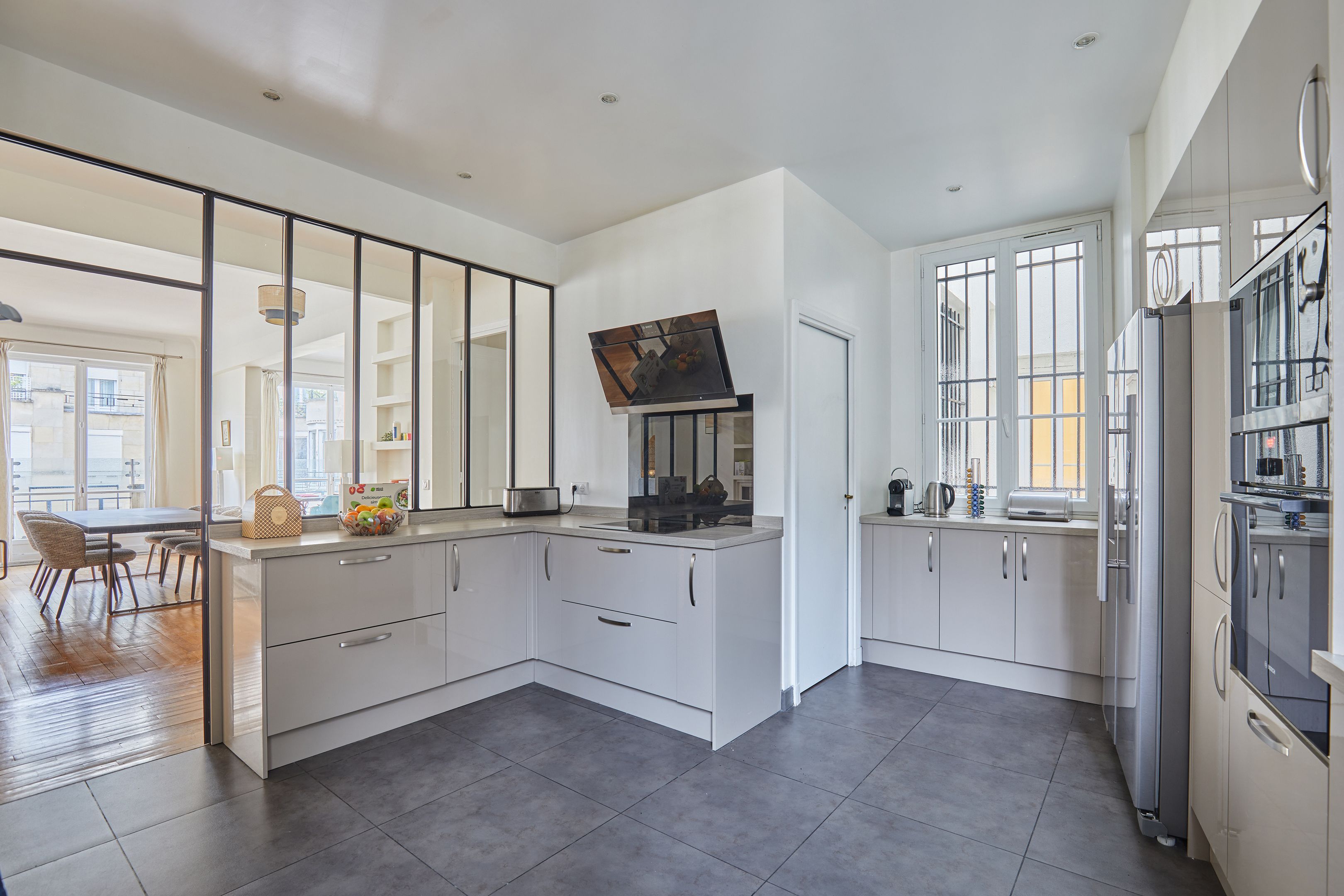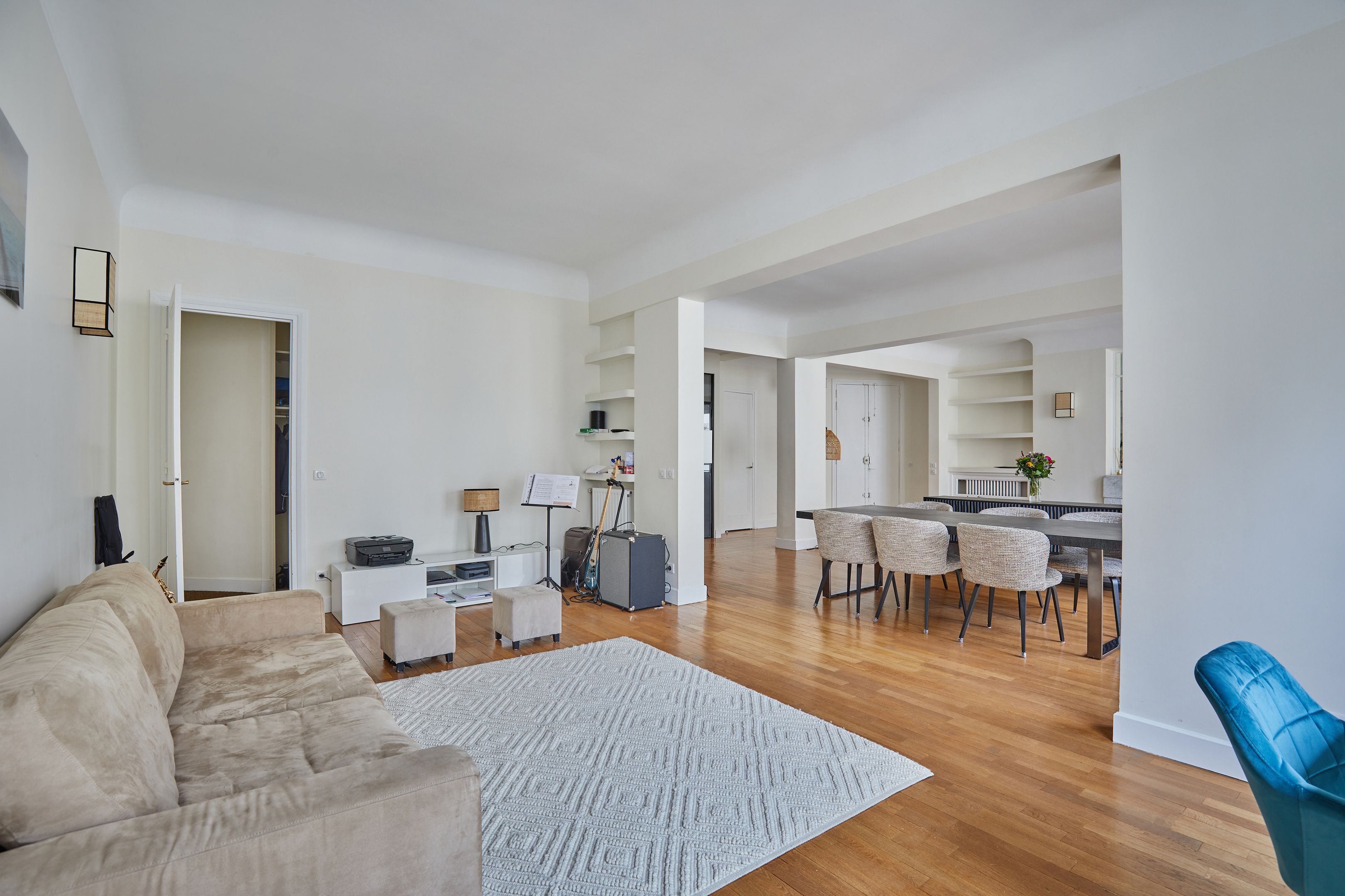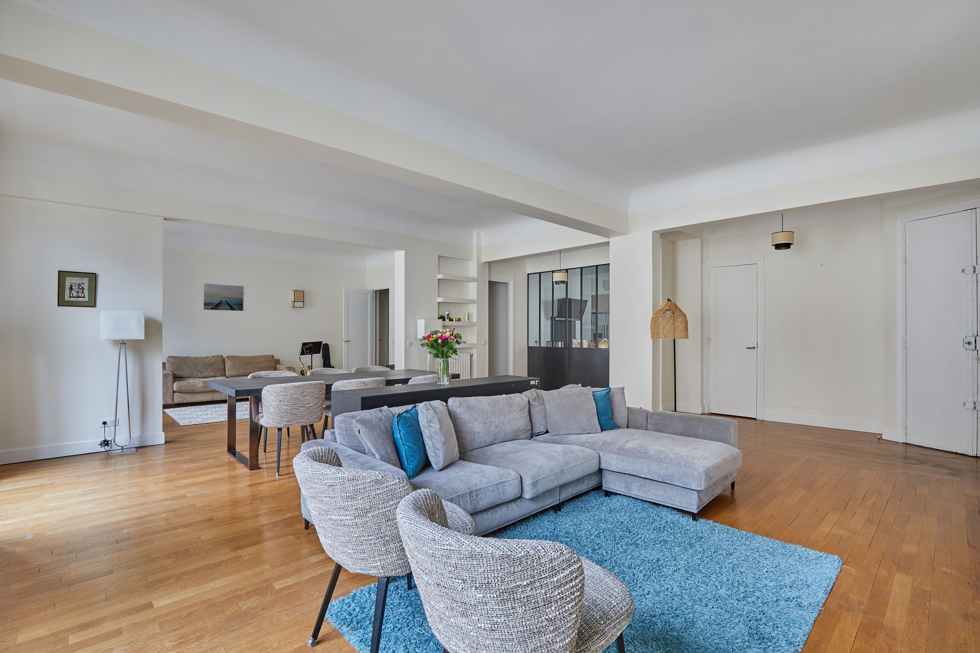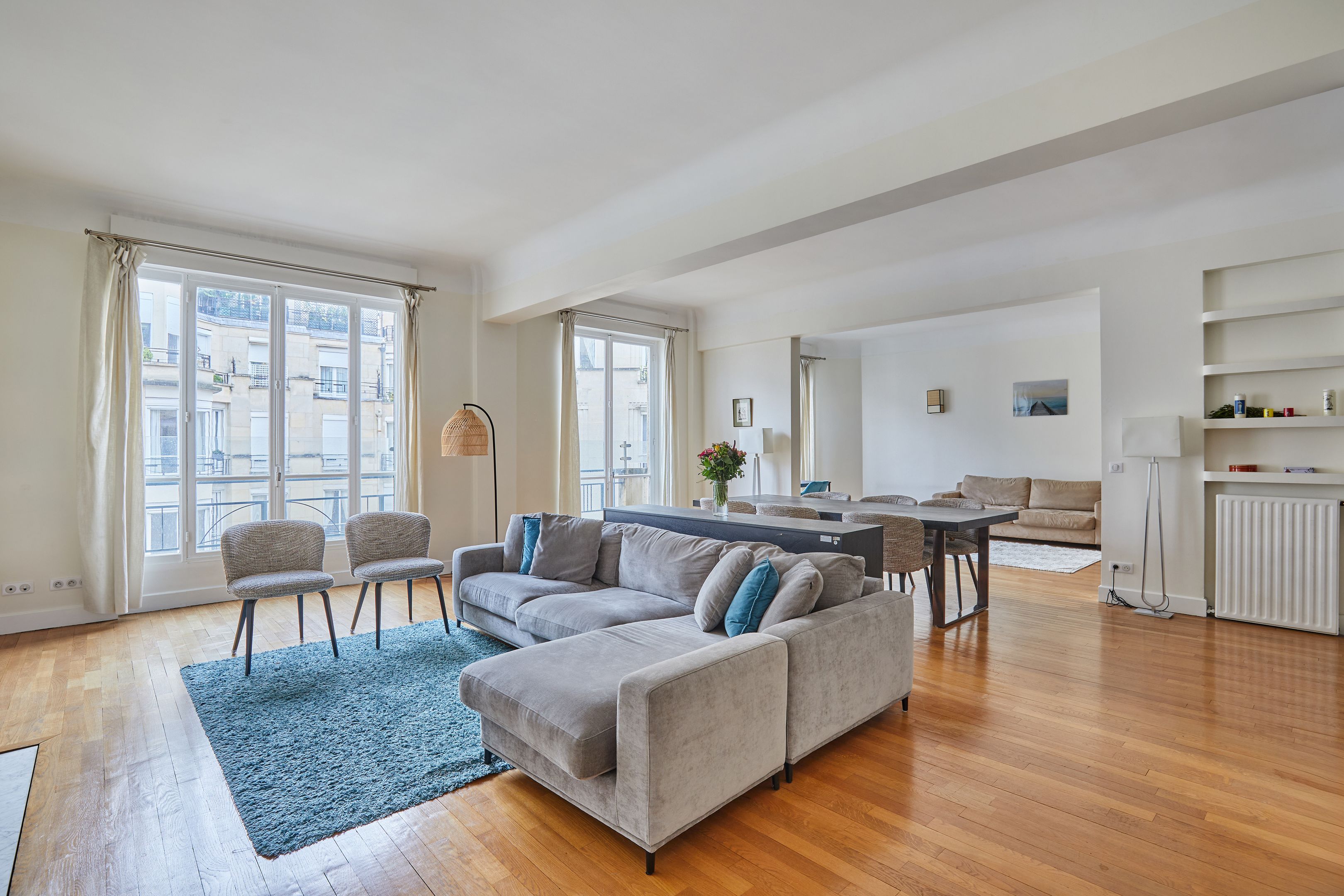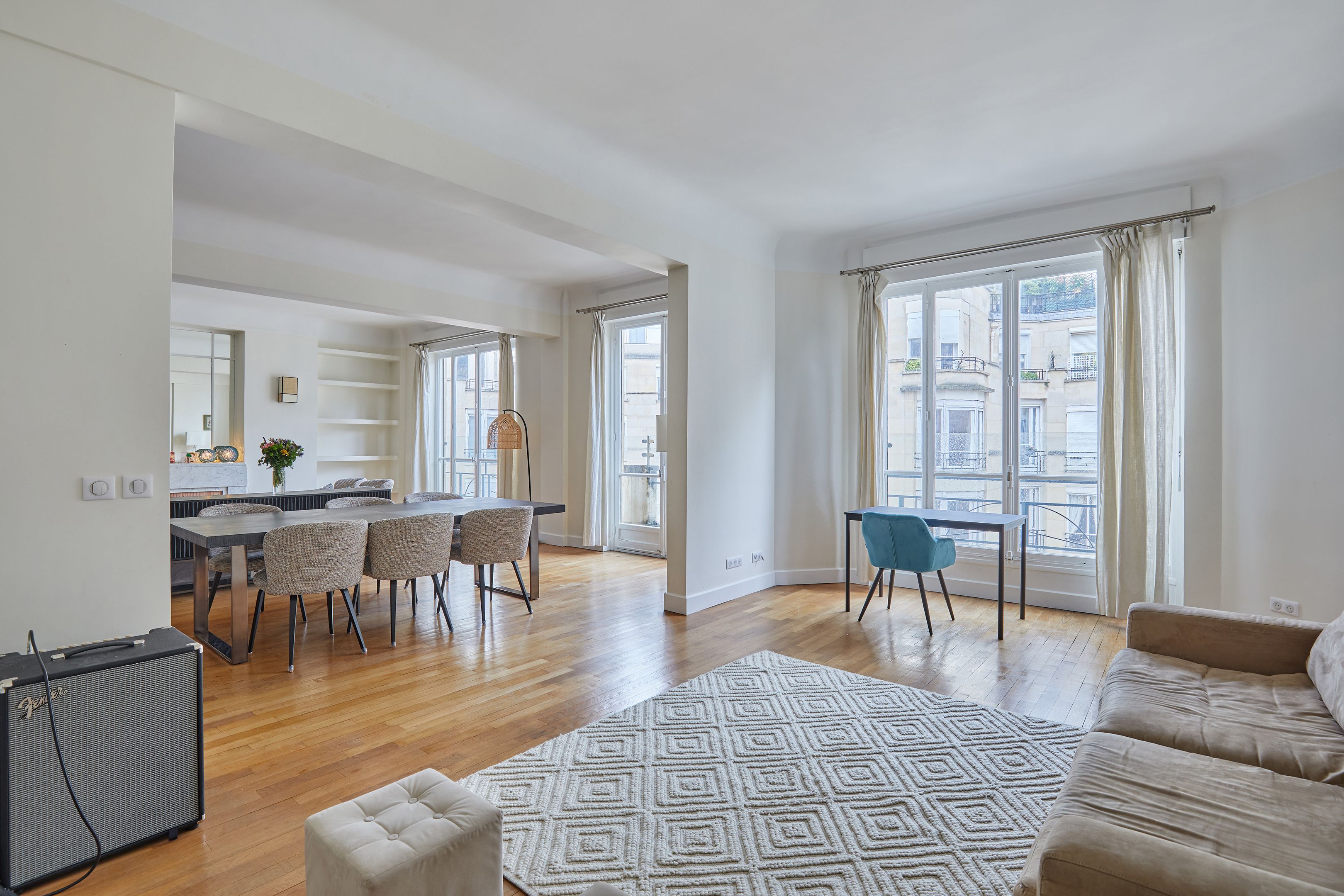 Immeuble Art Déco dans voie sécurisée à proximité des commerces et bénéficiant des services d'un gardien, au cinquième étage desservi par ascenseur, appartement familial meublé d'une surface de 190 m².