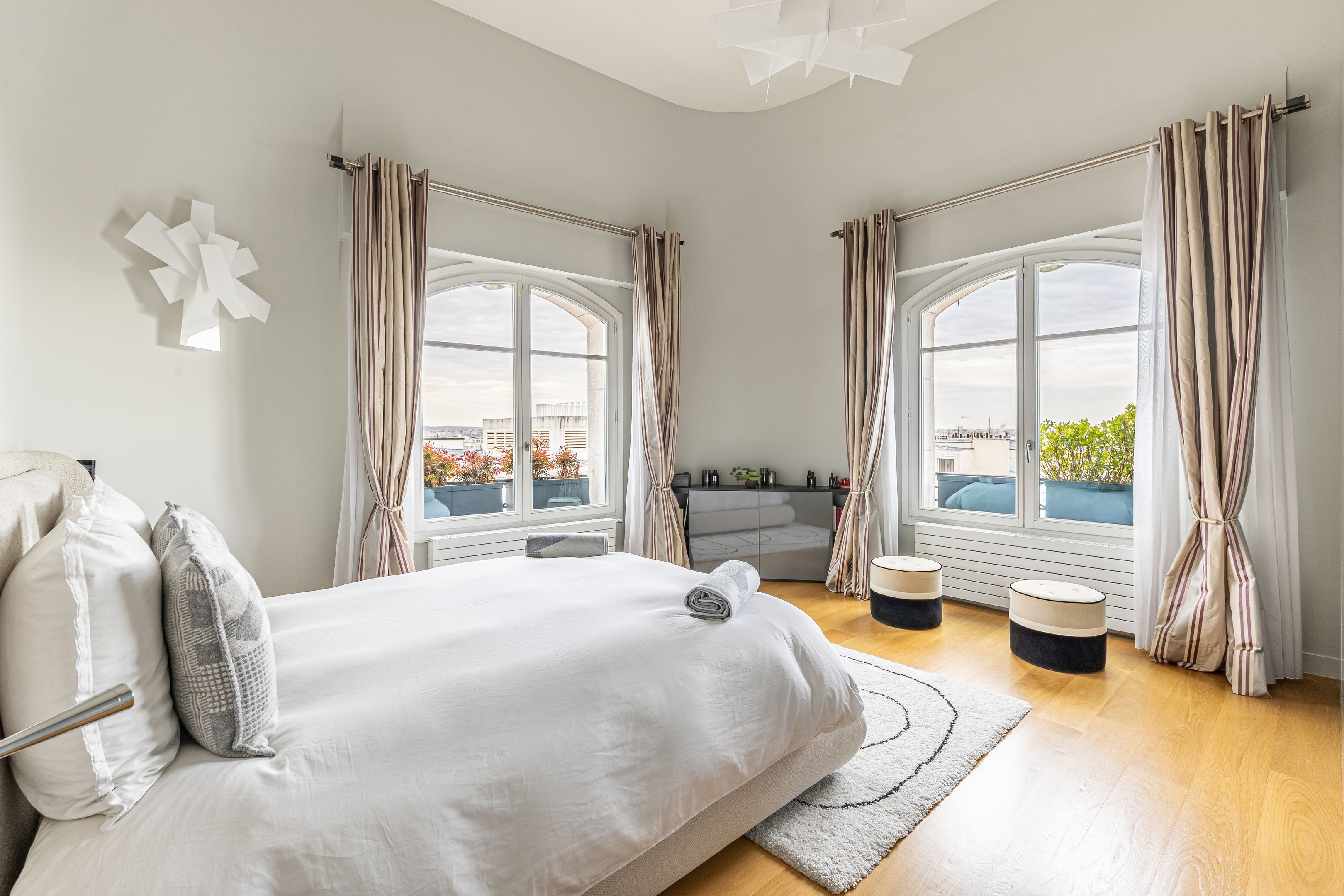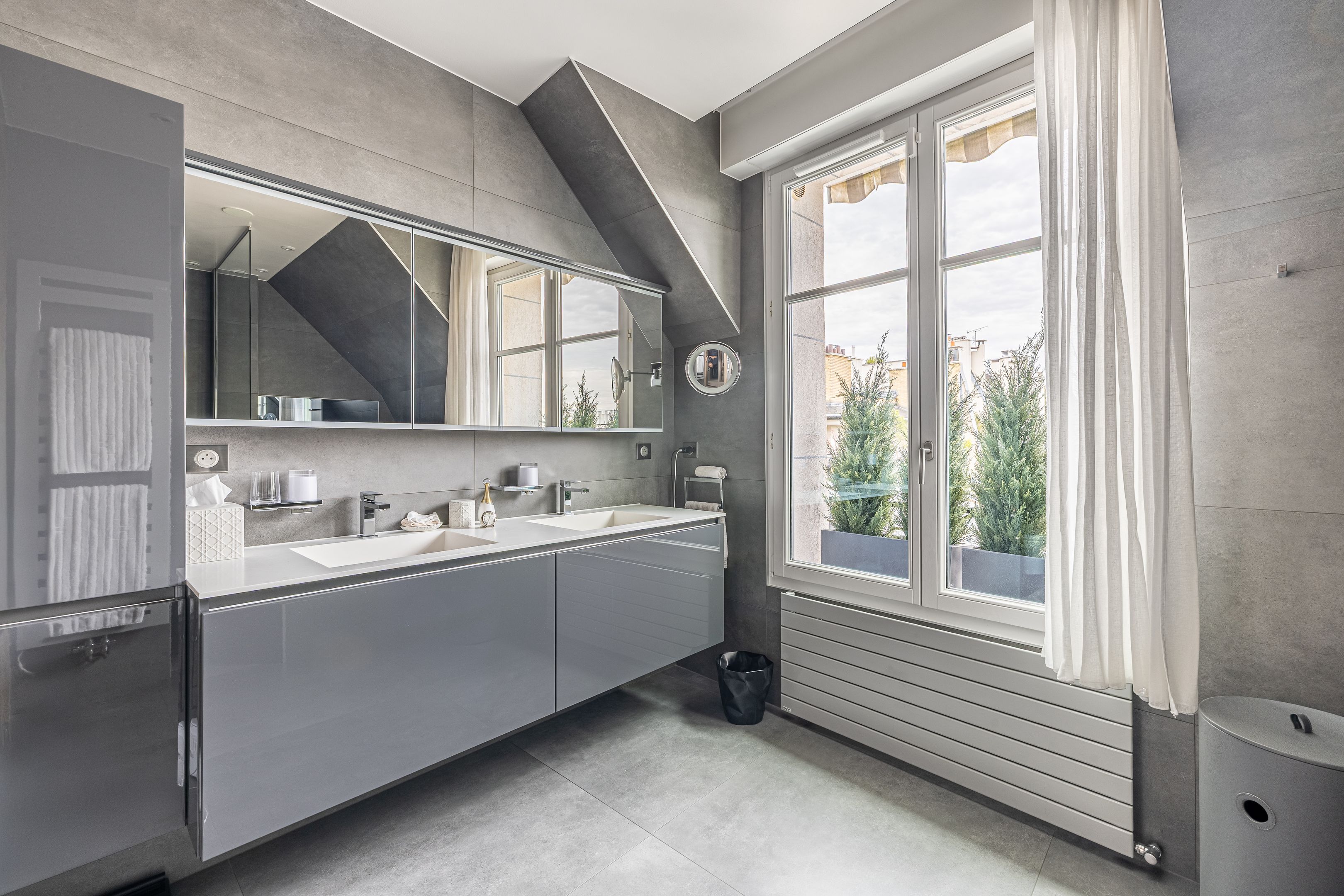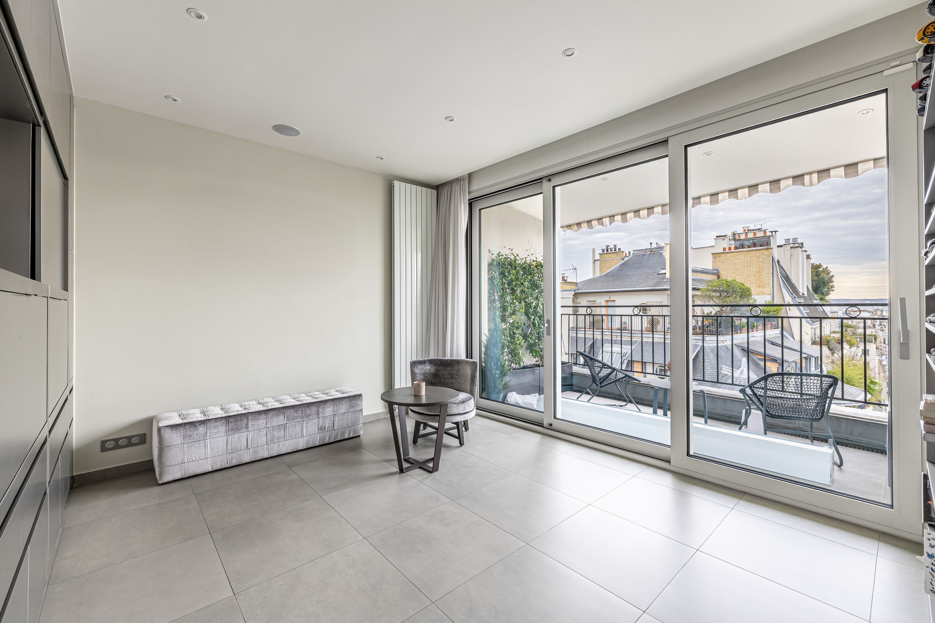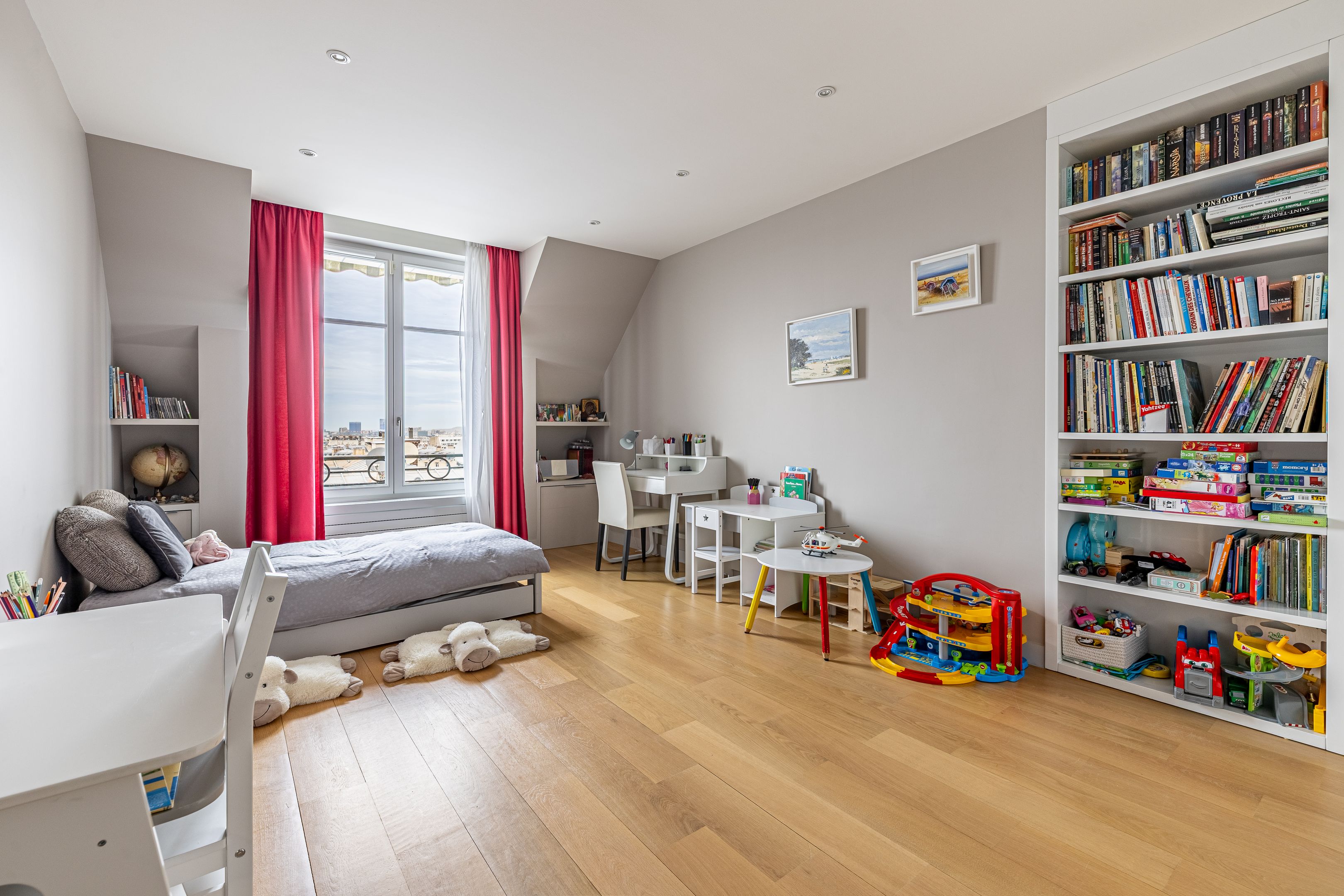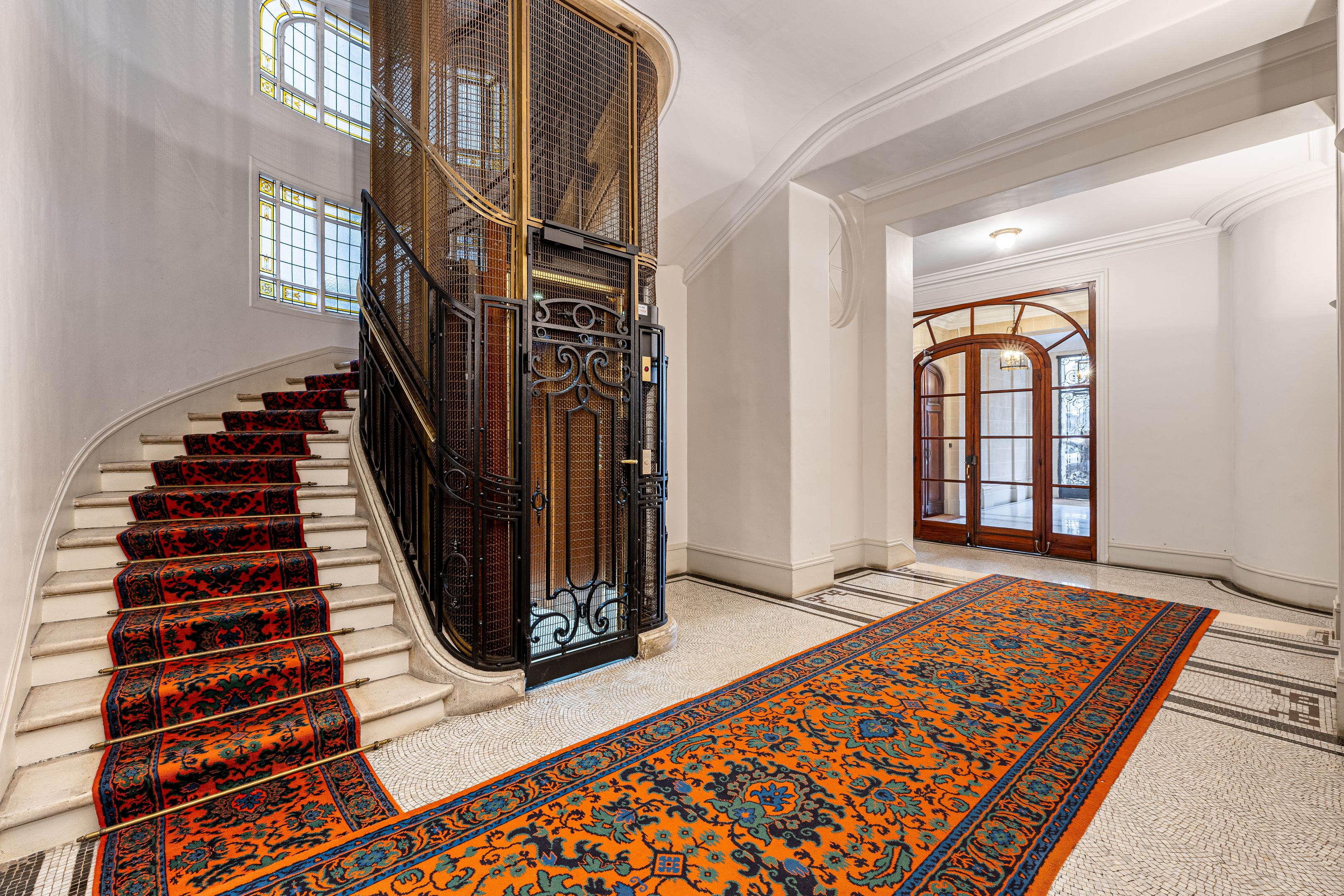 À proximité immédiate de l'avenue Georges Mandel, des commerces de la rue de la Pompe et des écoles de renom, immeuble haussmannien de grand standing, superbe appartement familial et de réception en duplex de 332 m², au 6ème et dernier étage, doté de très beaux volumes, d'une vue exceptionnelle et d'un bel ensoleillement grâce à son orientation sud-ouest. Élégante galerie d'entrée desservant une triple réception, vaste cuisine ouverte, une chambre avec sa salle de douches et ses toilettes, une lingerie, un dressing et des toilettes invités. À l'étage, une suite parentale avec dressing, salle de bains, toilettes, 2 chambres, bureau bénéficiant d'une terrasse ou 5ème chambre, salle de bains avec toilettes, salle de douches avec toilettes, espace bien-être avec sauna. Cave.