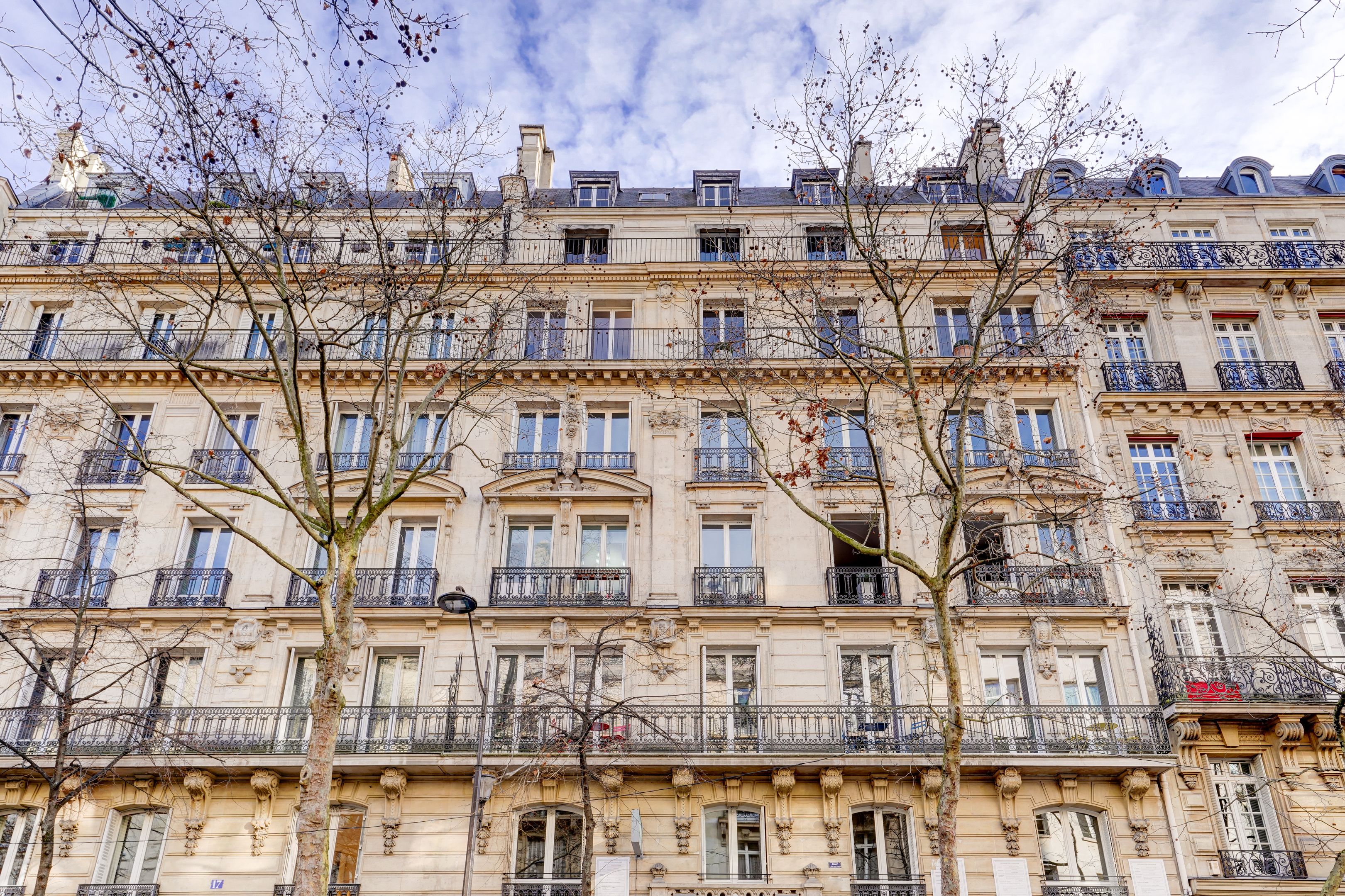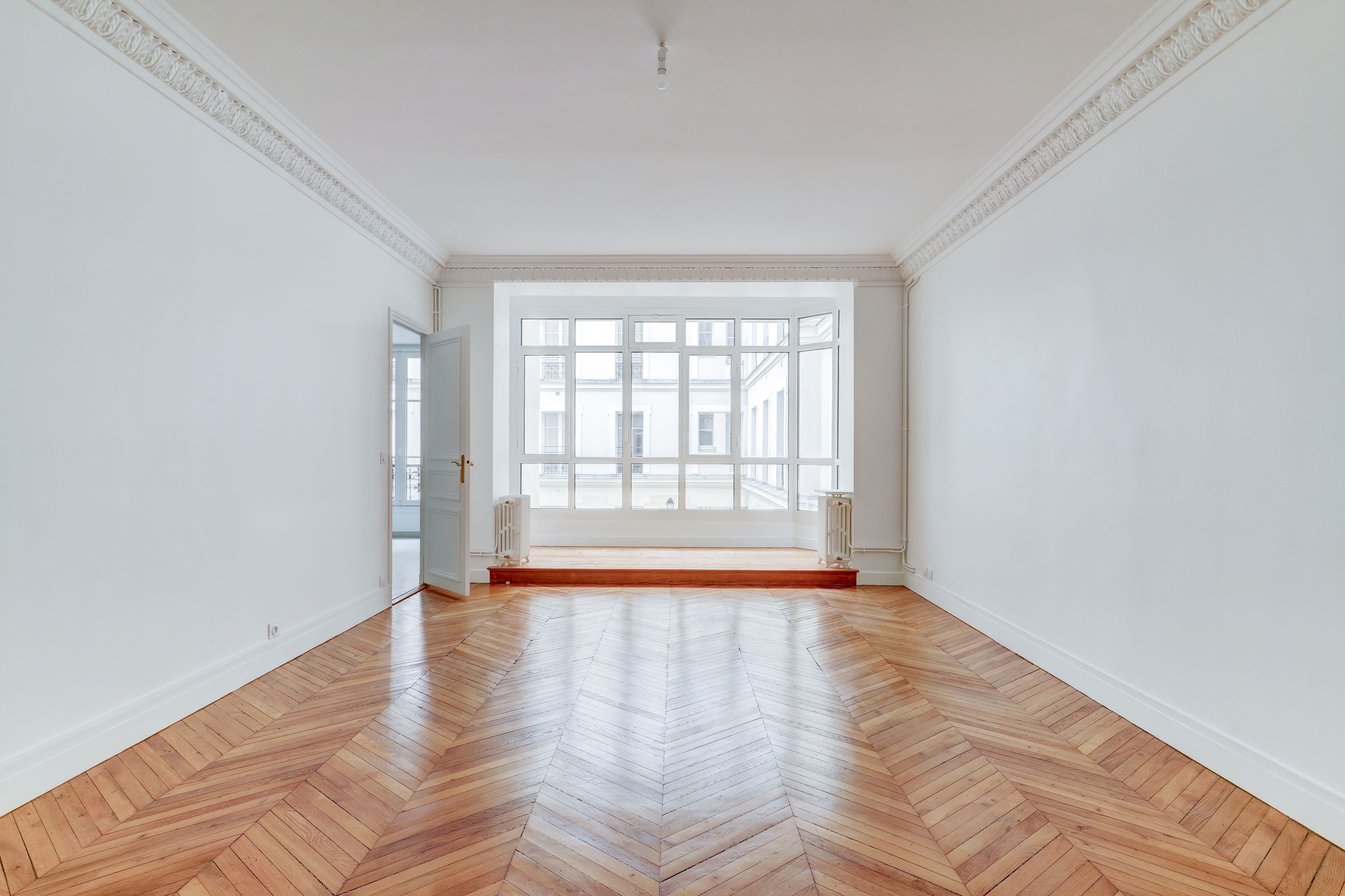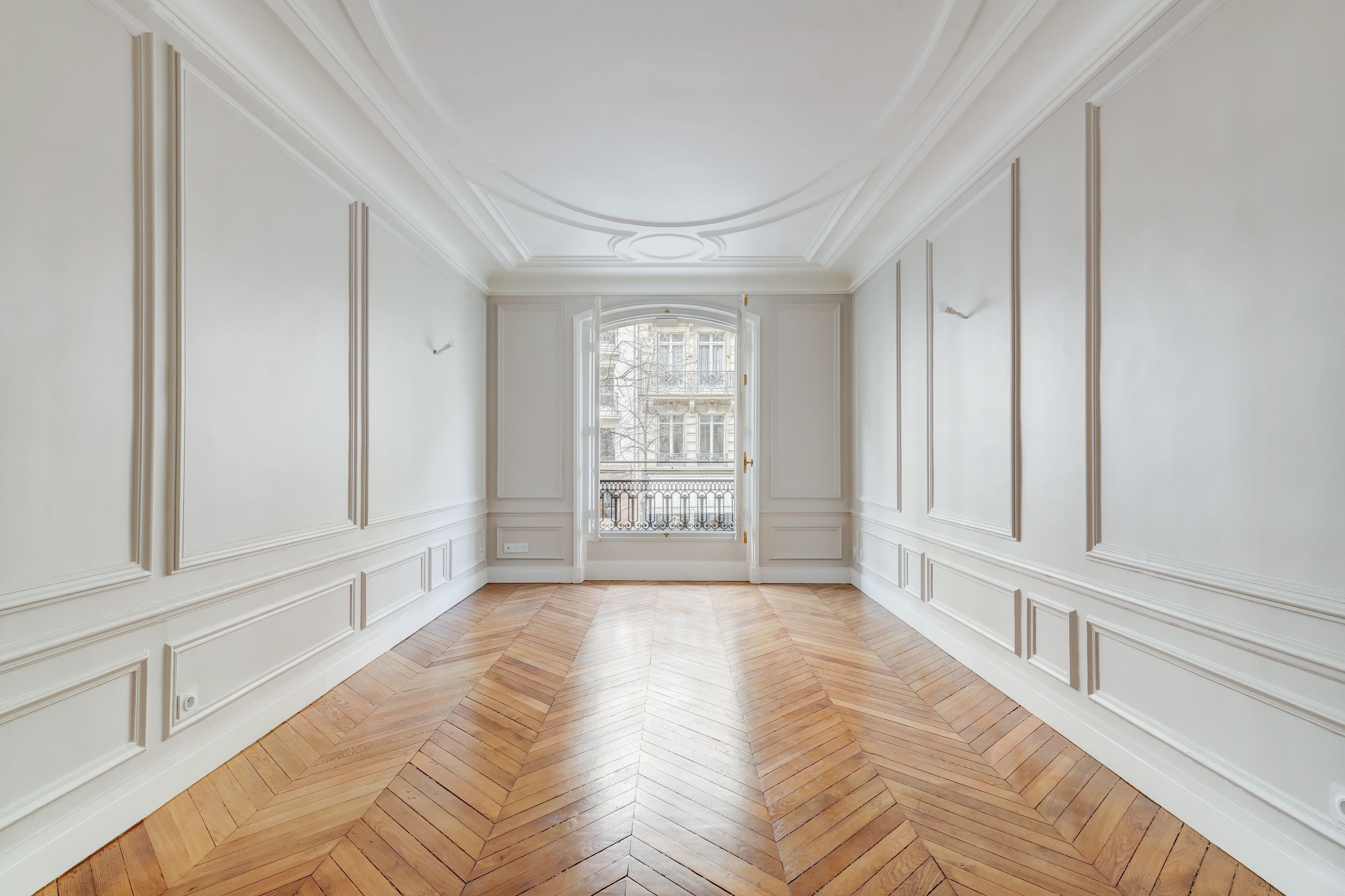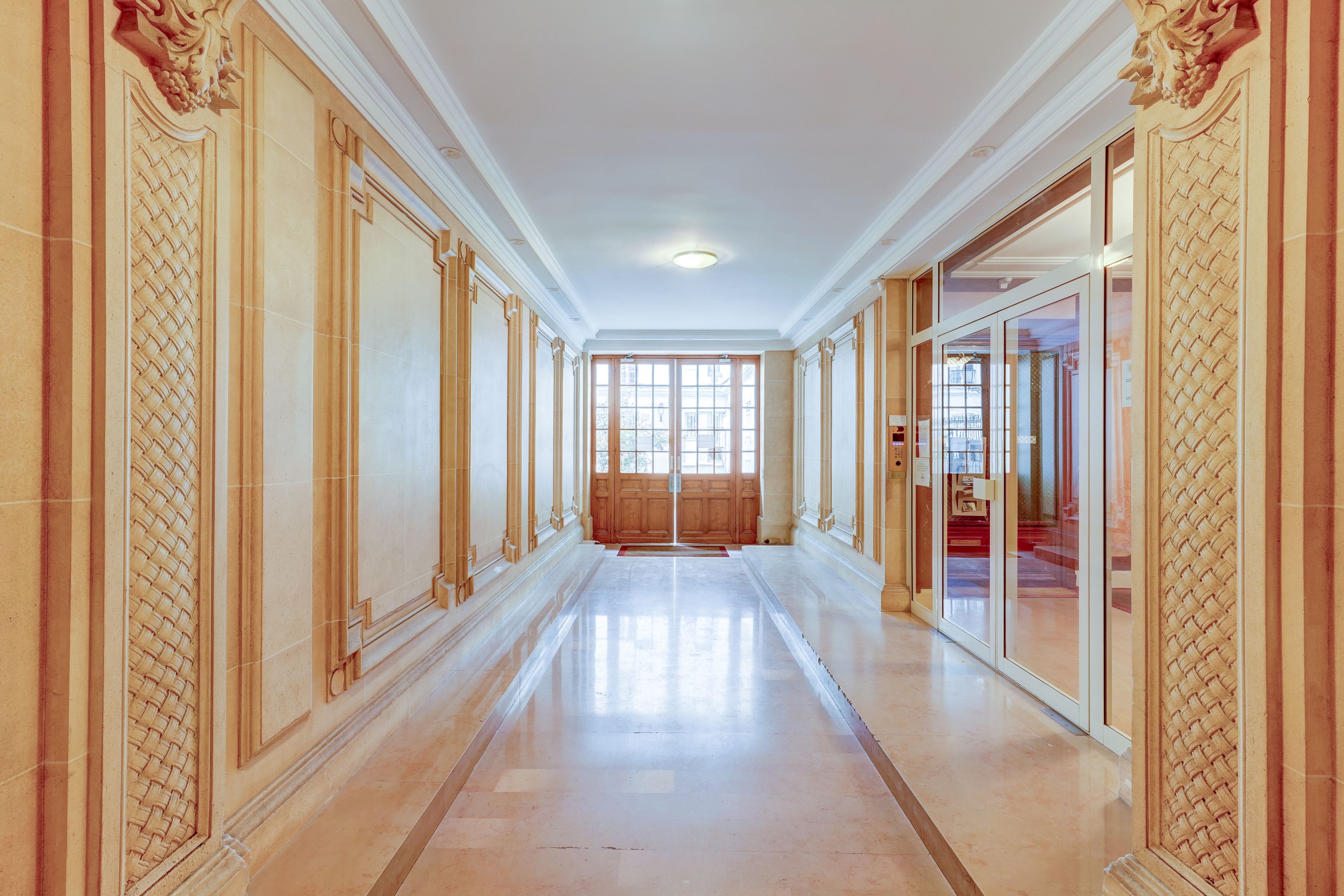 Immeuble en pierre de taille avec ascenseur et gardien, appartement non meublé de 260 m² au 1er étage.