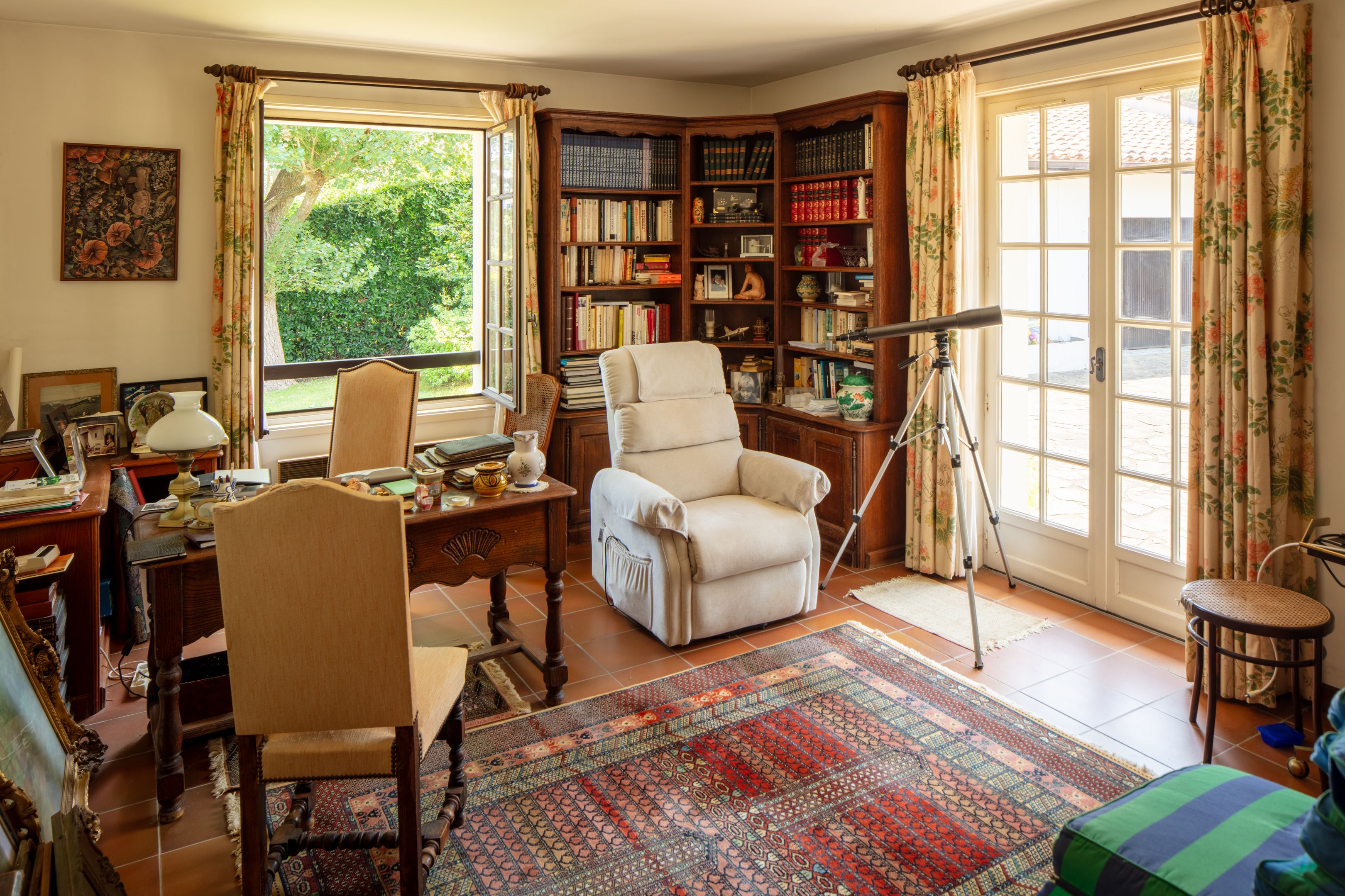 Au sein d’un quartier résidentiel, située au calme d’une impasse, belle maison de 248m² offrant une magnifique vue sur la baie de Saint-Jean-de-Luz, édifiée sur un terrain de 2 408m². Vaste entrée d’accueil, salon-séjour avec cheminée et salle à manger donnant sur une grande terrasse couverte et jardin vue océan, cuisine, une suite parentale vue océan (salle de bains, douche, toilettes). En rez-de-jardin : 2 suites parentales ouvertes sur les extérieurs dont une avec vue dotées respectivement d’une salle d’eau, toilettes ou salle de bains, douche, toilettes, 2 chambres se partageant une salle d’eau et toilettes. Cellier, buanderie, nombreux rangements (grands placards), garage 3 voitures.