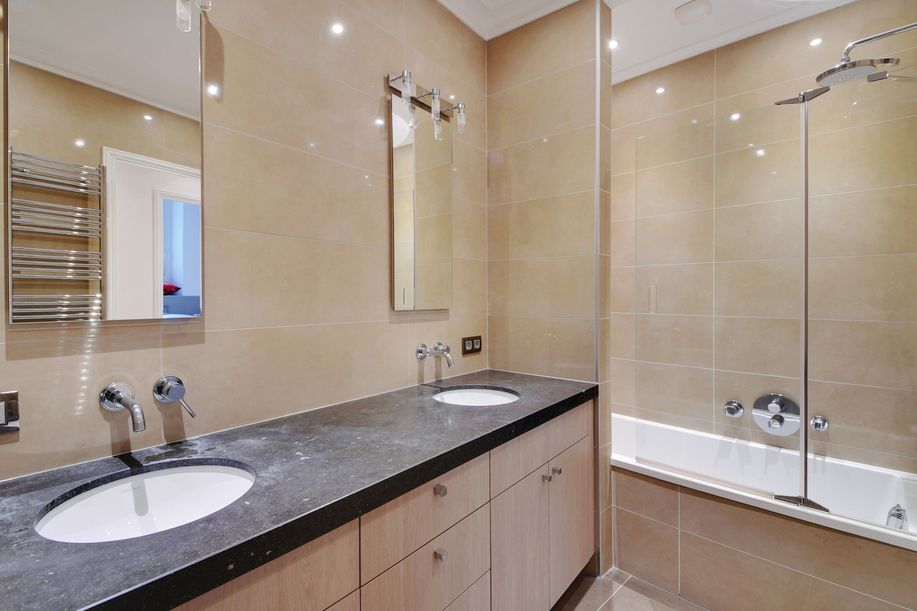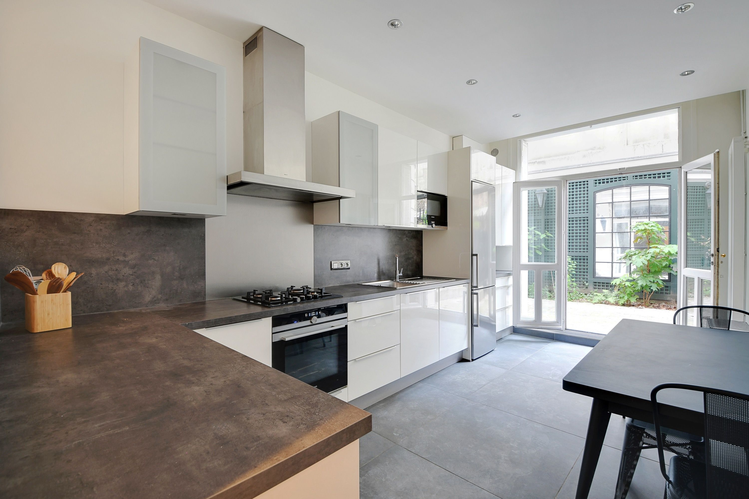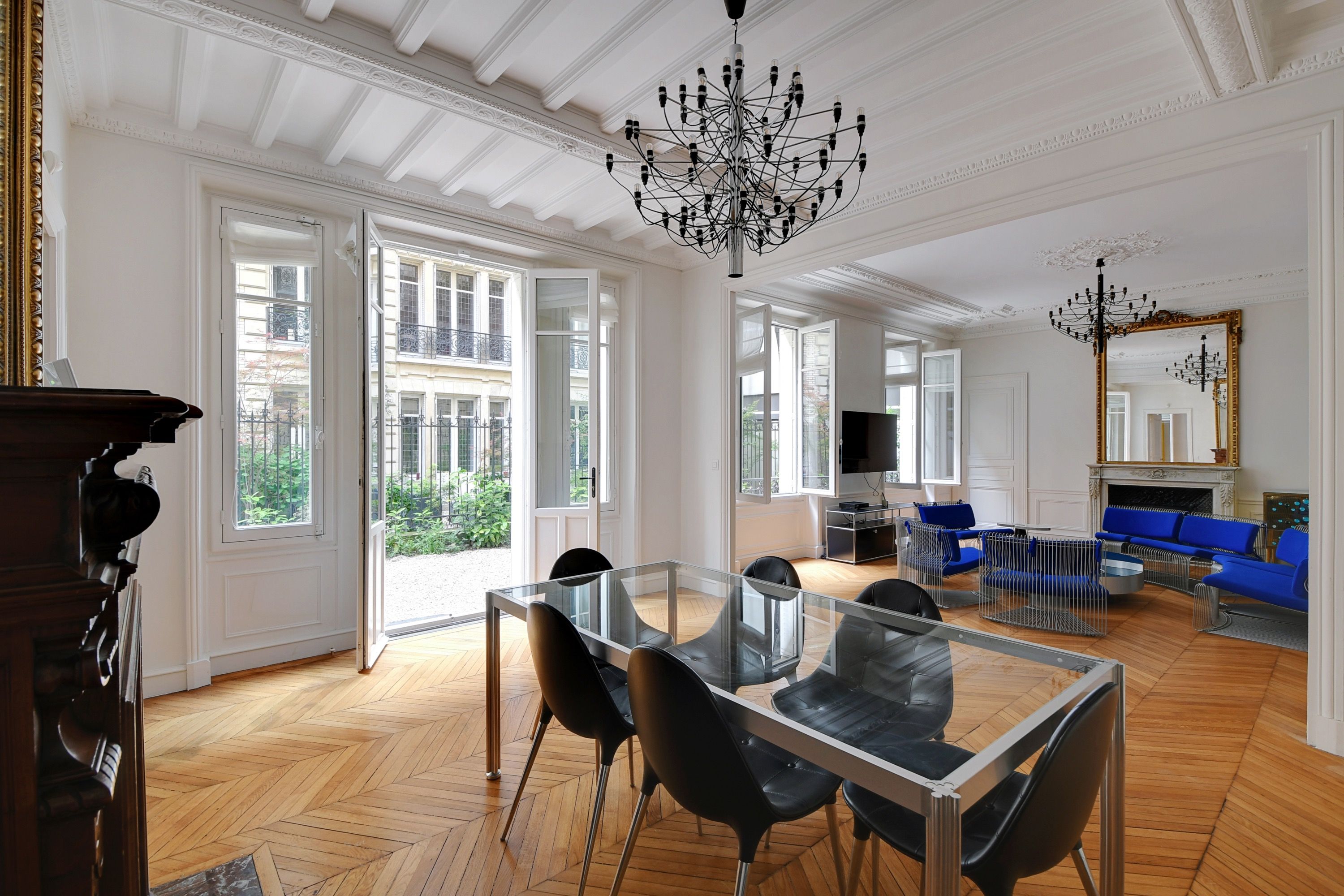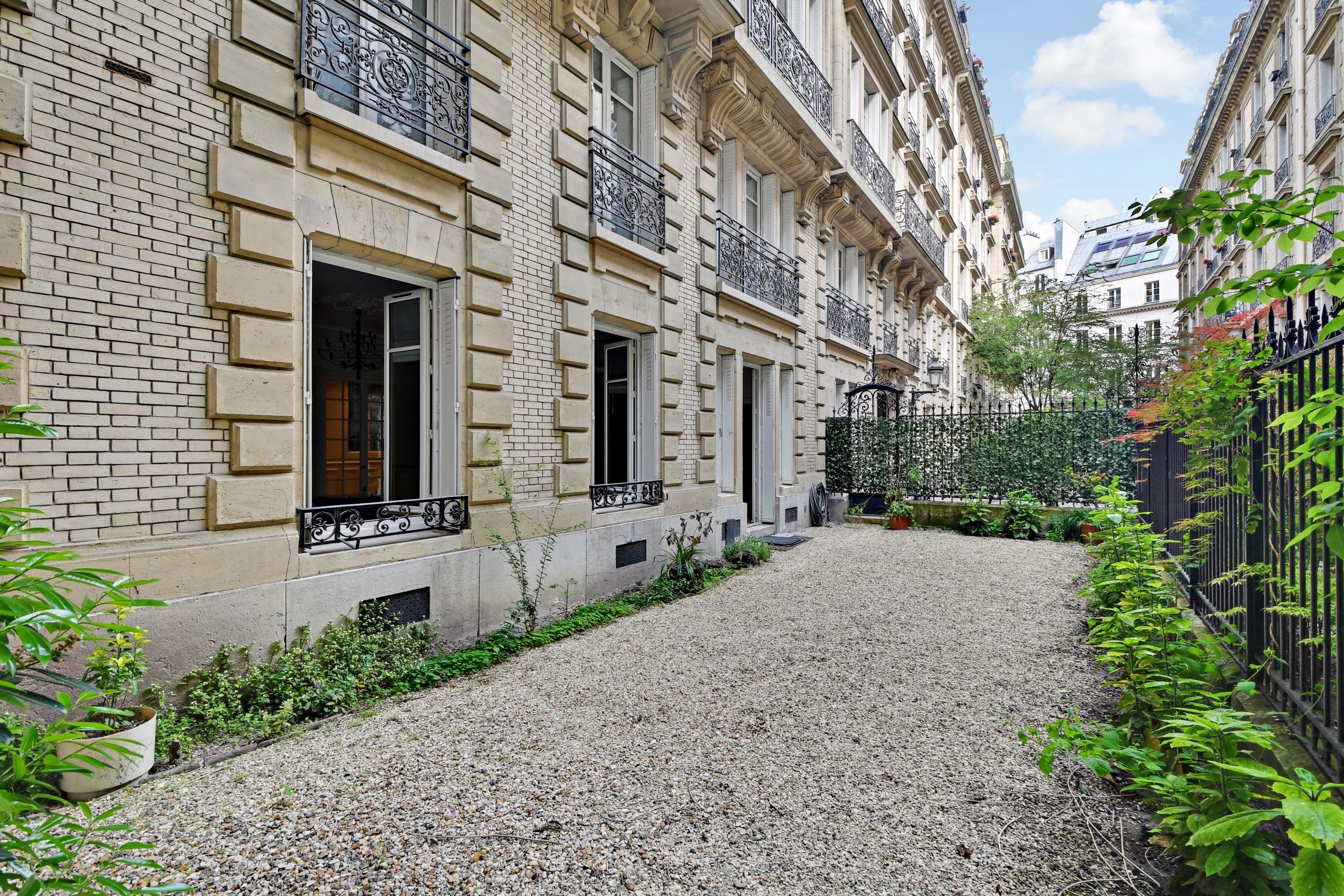 Appartement meublé dans un bel immeuble en pierre de taille, au fond d'une impasse privée, vaste appartement familial meublé de 250 m² habitables et 191 m² carrez rénové. Galerie d'entrée, salon et salle à manger donnant accès à un jardin privatif, bureau, grande cuisine dînatoire aménagée et équipée (ouvrant sur une terrasse privative), suite parentale (avec placards et salle d'eau avec toilettes), chambre (avec dressing et salle d'eau), deux autres chambres (avec placards), salle de bains avec toilettes, toilettes séparées et nombreux rangements. Au sous-sol : salle de cinéma, salle de jeux et buanderie.