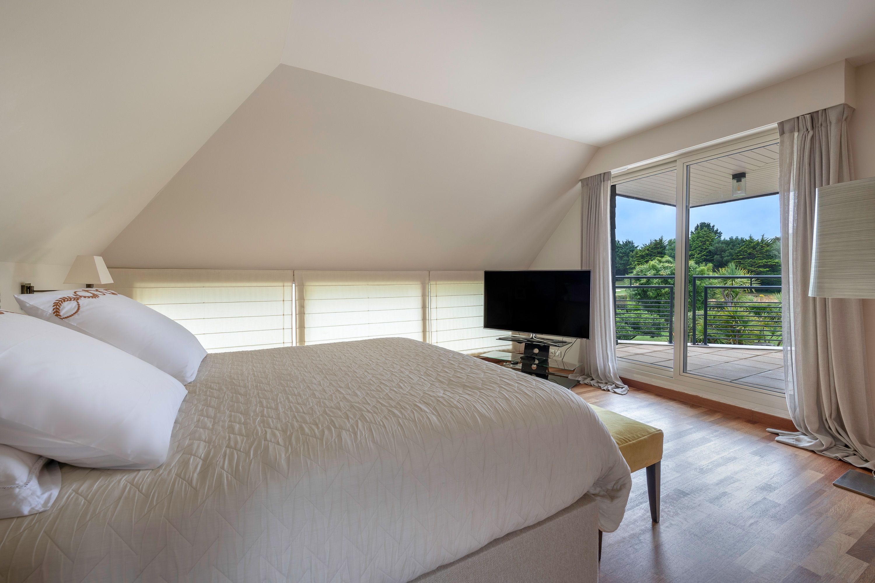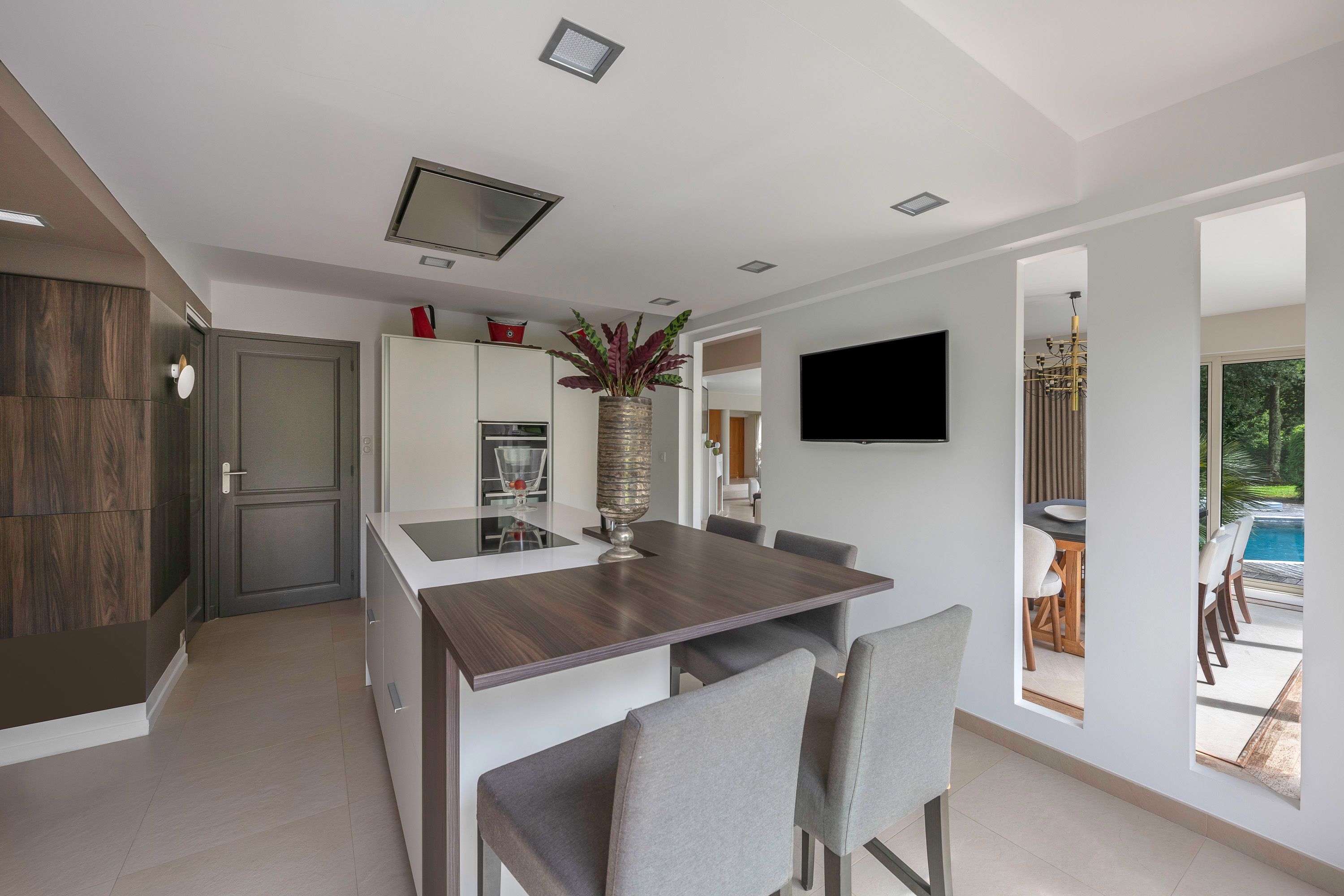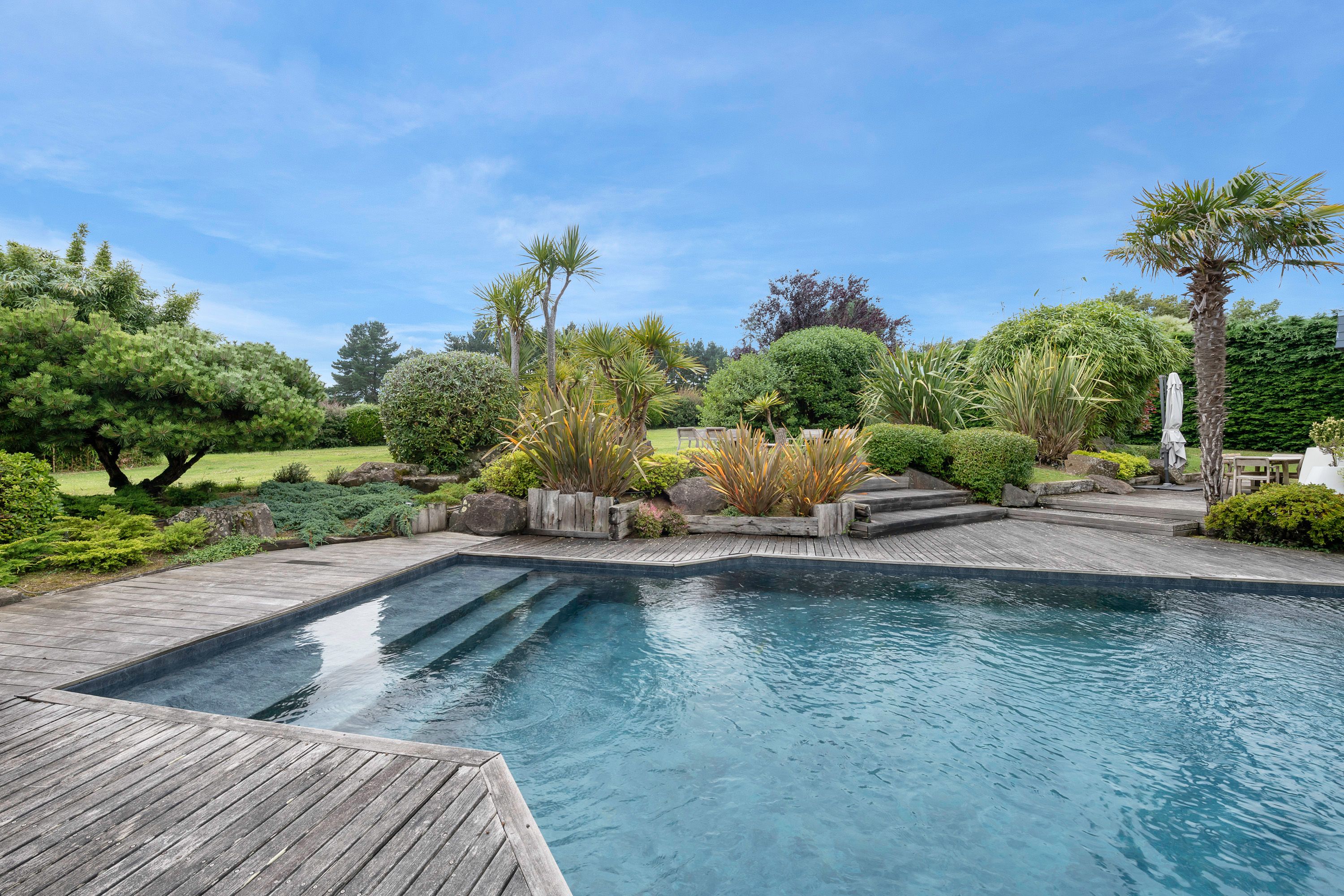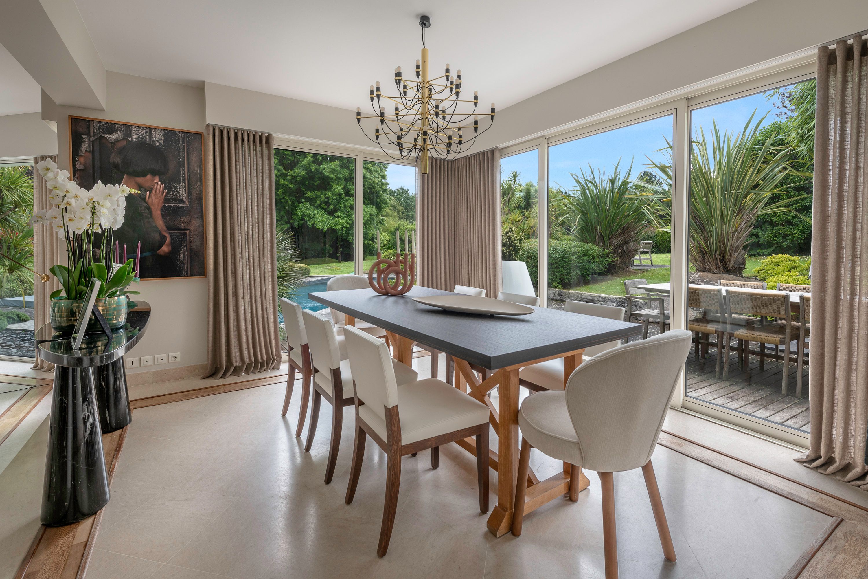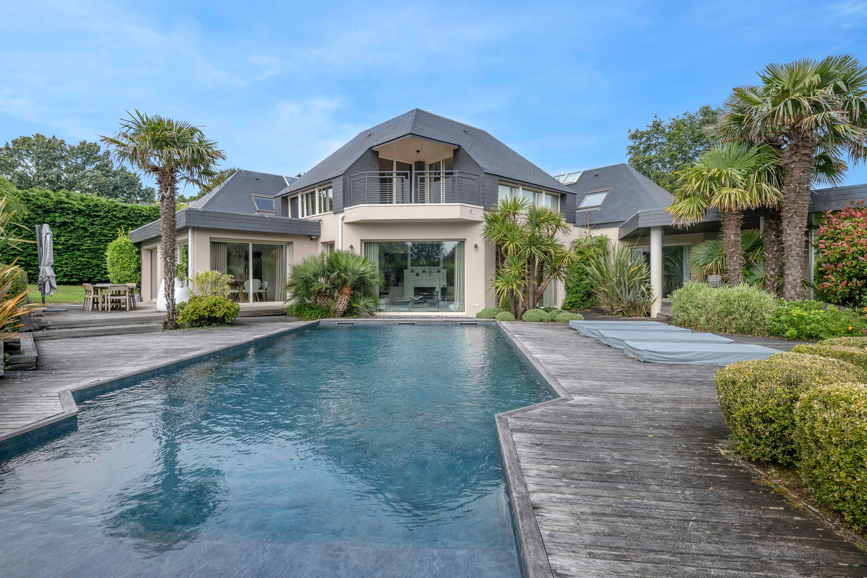 Secteur privilégié du Golf de la Baule, dans un domaine résidentiel, propriété d'environ 265m² aux prestations haut de gamme et décorée avec goût, édifiée sur une parcelle paysagée, sans vis à vis de près de 3000m² exposée sud-ouest (piscine chauffée). Entrée, vestiaires, salon-séjour de 100m² (cheminée) s'ouvrant sur l'extérieur, cuisine séparée aménagée et équipée entièrement refaite, buanderie arrière-cuisine, toilettes séparées. Bureau privé (accès indépendant), deux chambres spacieuses, rangements, dressings et leurs salles de bains respectives, toilettes séparées. A l’étage : 3 chambres avec salle d’eau et terrasses sur le golf dont une suite parentale, toilettes séparées. Sous-sol : buanderie, cave, local technique, double garage.