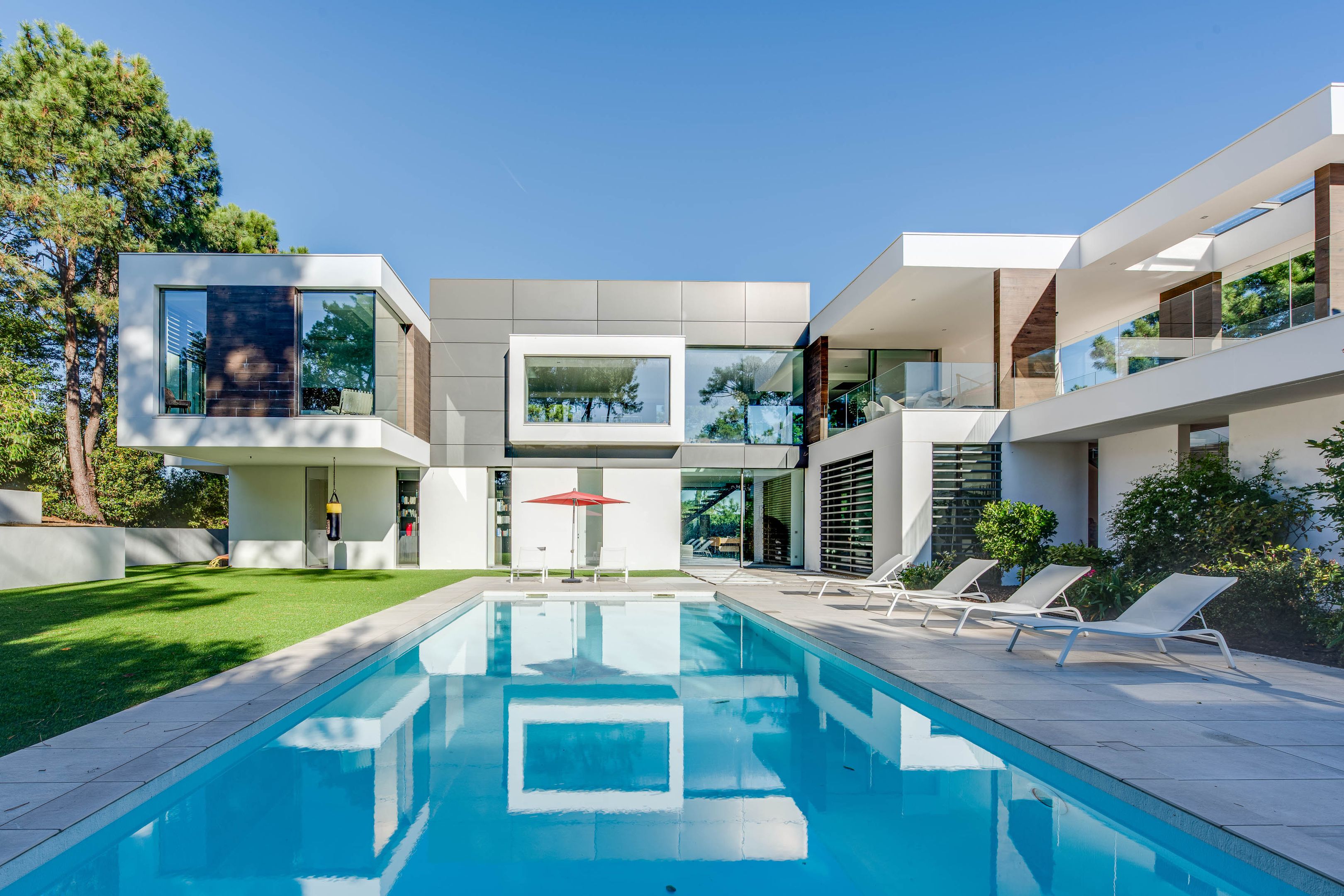 Au cœur du quartier le plus prisé d’Anglet, Chiberta, cette villa contemporaine d’environ 450 m² a été dessinée par l’architecte américain Marc Whipple, reconnu pour ses lignes épurées et ses maisons ouvertes sur la nature. Implantée sur plus de 4 000 m² de jardin paysager planté de pins, légèrement en surplomb, elle profite de belles perspectives vers l’océan et la canopée, offrant un sentiment rare d’espace, de lumière et d’intimité.