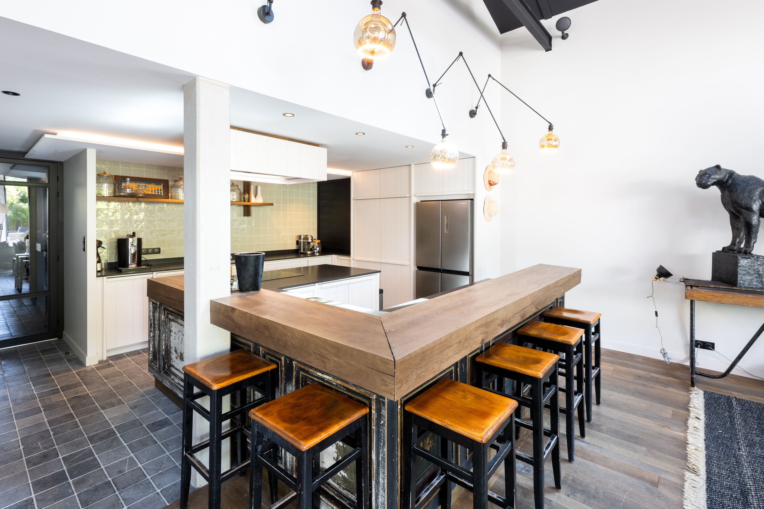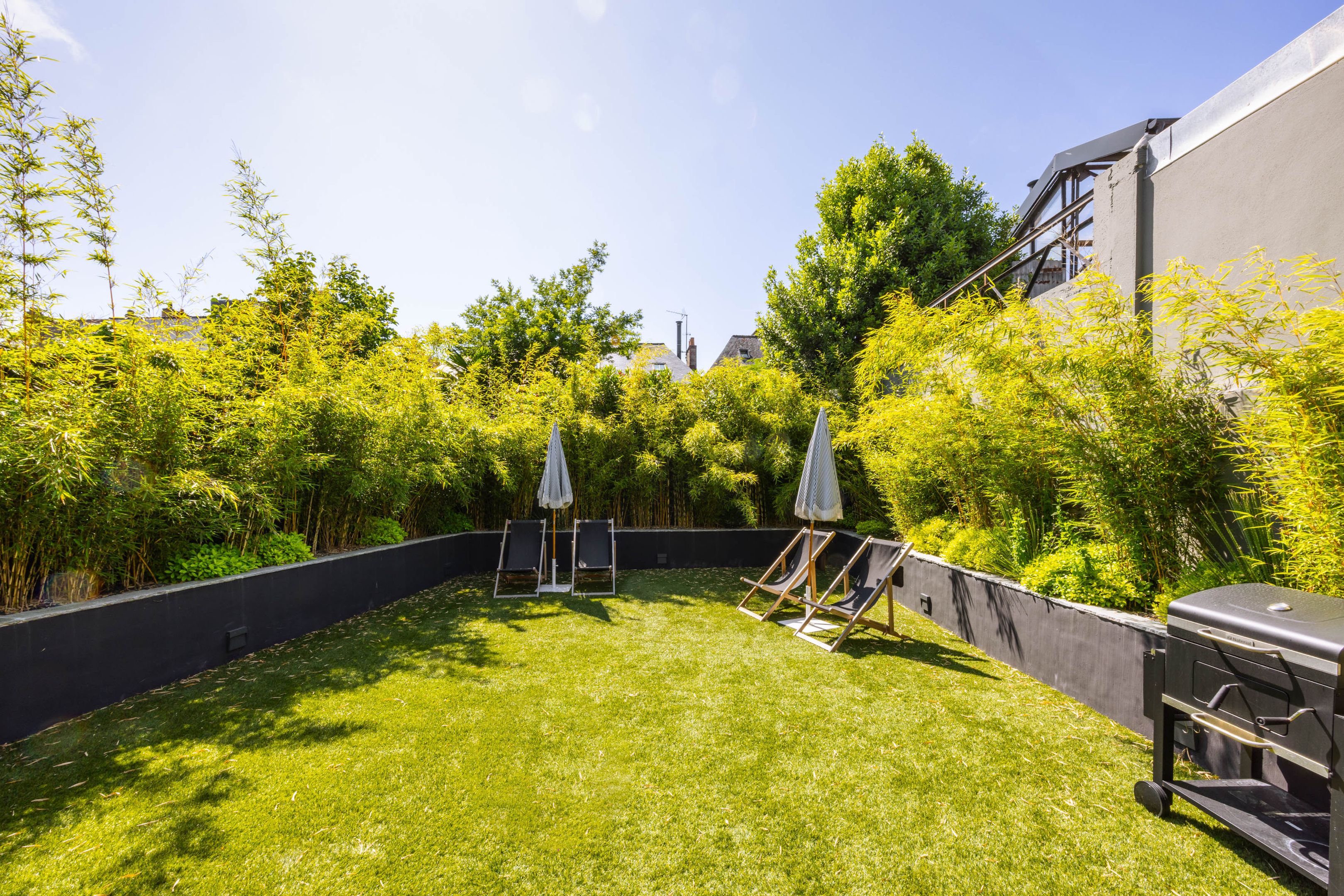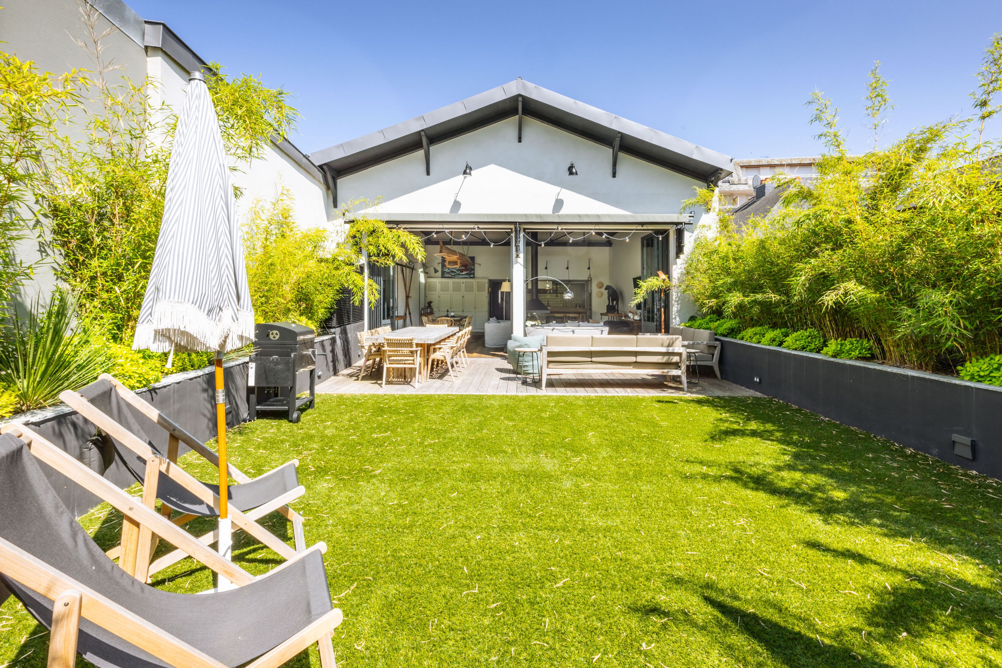 En cœur de ville, à proximité immédiate du marché de Dinard, des commerces et de la plage. Exceptionnelle maison bénéficiant d'une rénovation intégrale de très grande qualité, de volumes hors du commun ainsi que d'un confort contemporain particulièrement appréciable. Galerie d'entrée, vaste et splendide pièce de réception de presque 100m² avec rare hauteur cathédrale de 5,60m orienté plein ouest et composé du salon home-cinéma, de la salle à manger et de la grande cuisine ouverte parfaitement équipée. Ce splendide séjour s'ouvre sur la terrasse et le jardin calmes et bien ensoleillés par de remarquables baies vitrées accordéon. Chambre de belle taille, salle d'eau, toilettes séparées. À l'étage, 2 suites complètes, chambre double, chambre enfant, salle de bains. Placards sur-mesure et climatisation individuelle. Double garage. Possibilité d'acquisition meublée.