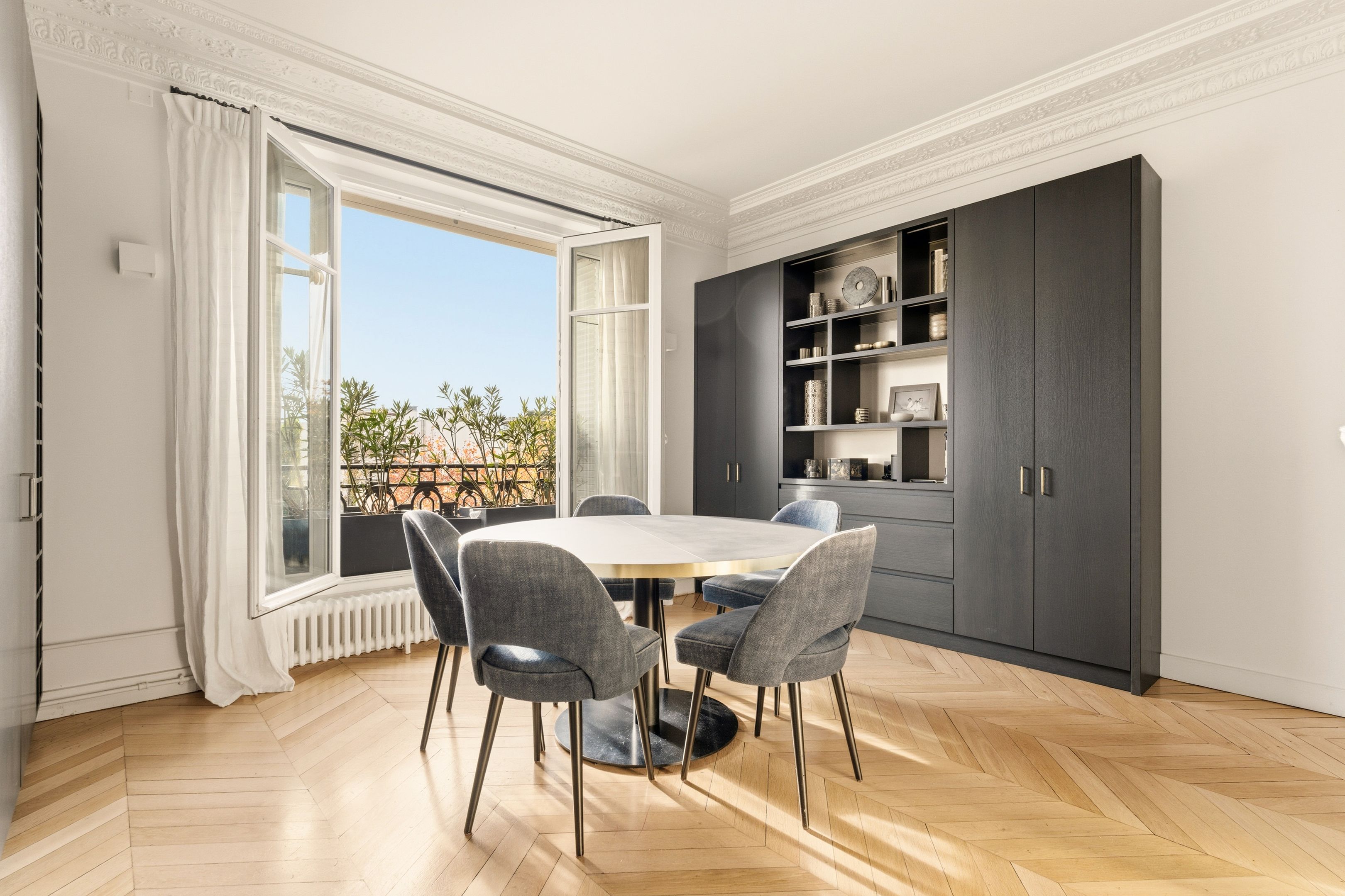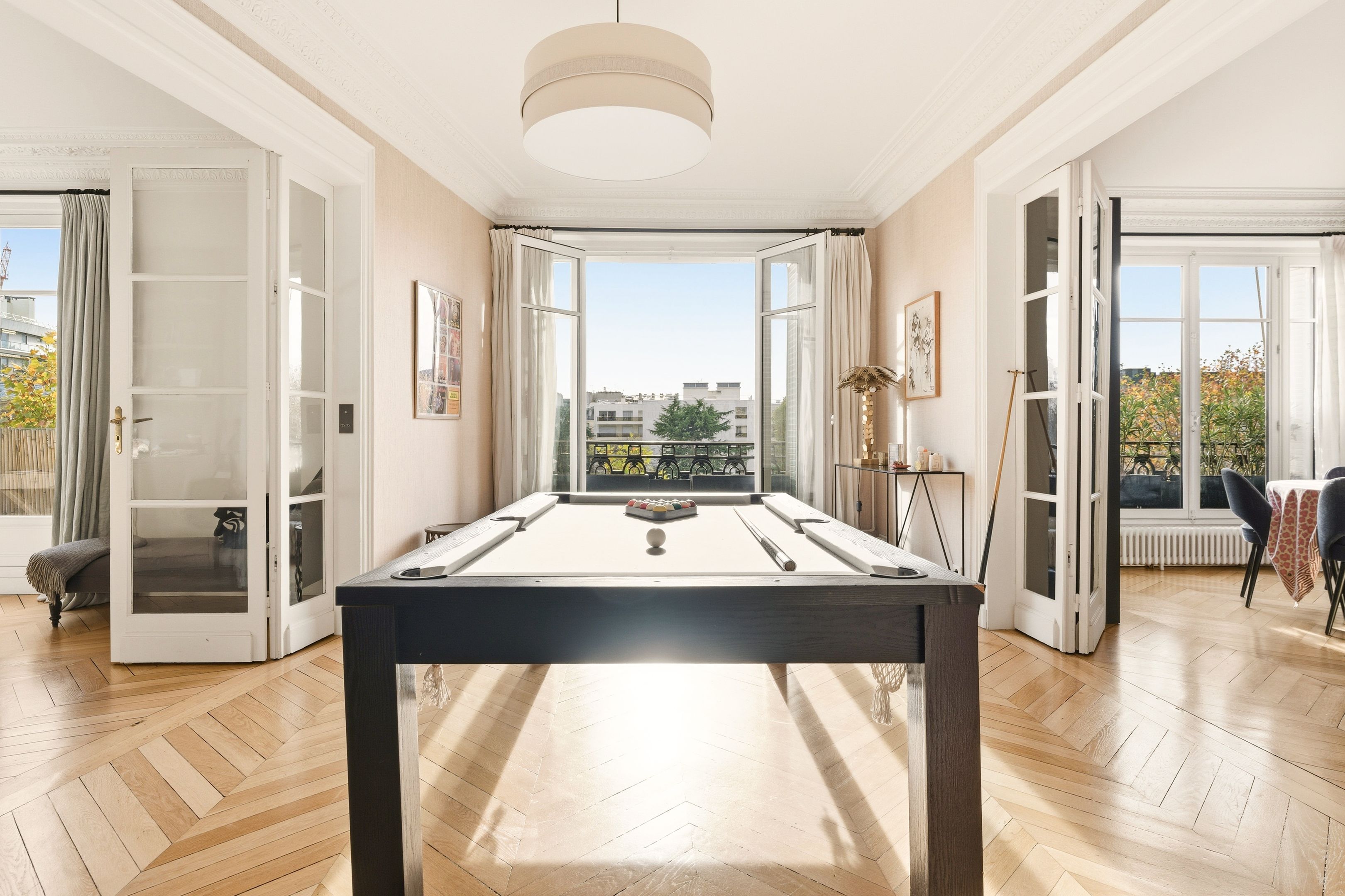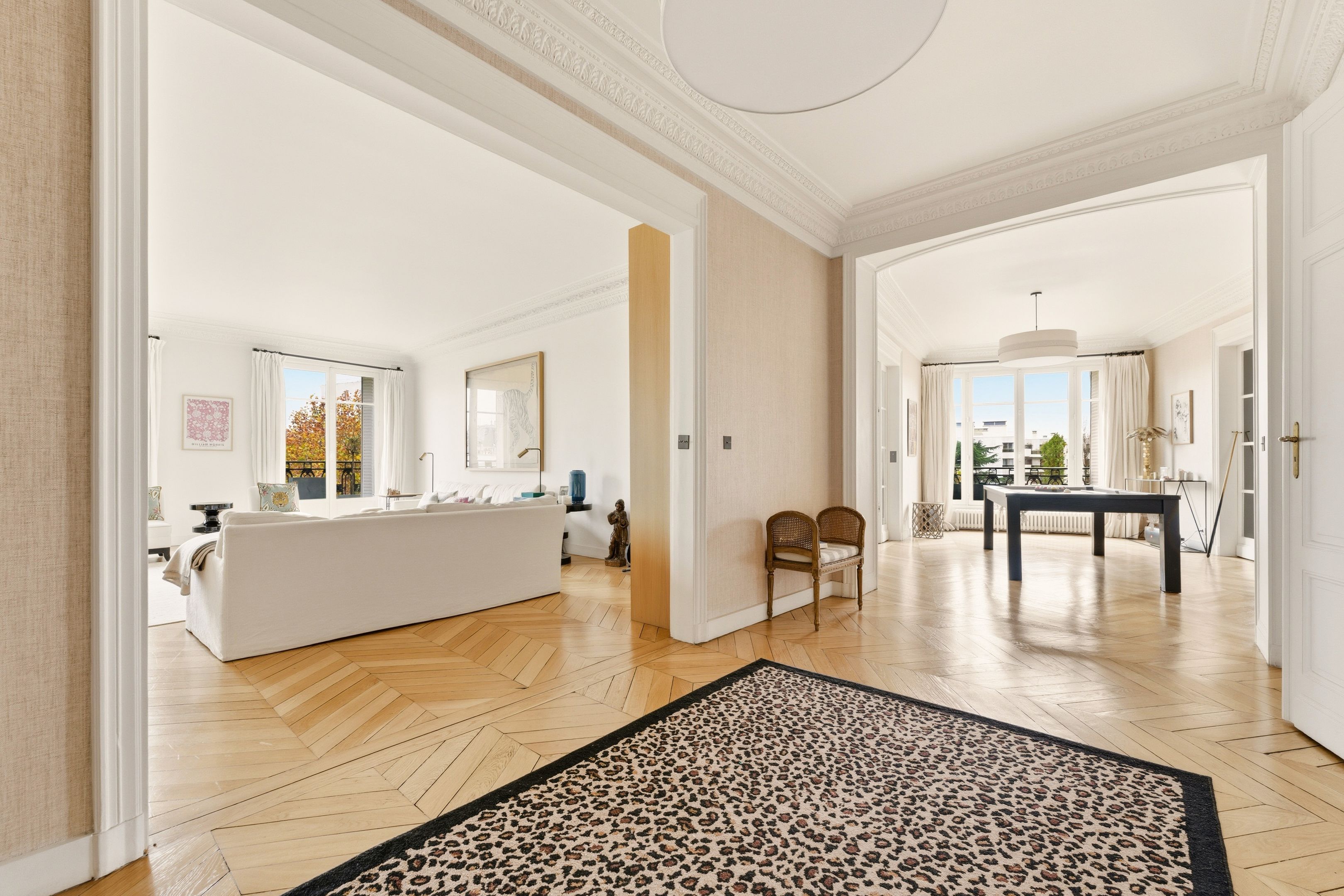 Dans un superbe immeuble haussmannien de grand standing disposant des services d'une gardienne, profitant d’une situation exceptionnelle proche des commerces et des écoles. Appartement traversant au 5ème étage avec un balcon filant, bénéficiant d'un plan optimisé, de beaux volumes et de vues dégagées sur les toits de Neuilly. Galerie d'entrée desservant un grand séjour, salle à manger, bureau, magnifique cuisine familiale, quatre chambres, family room (5ème chambre), grande cuisine/buanderie avec accès service, salles de bains, salles de douches, toilettes séparées, de nombreux dressings/rangements. Une double cave.