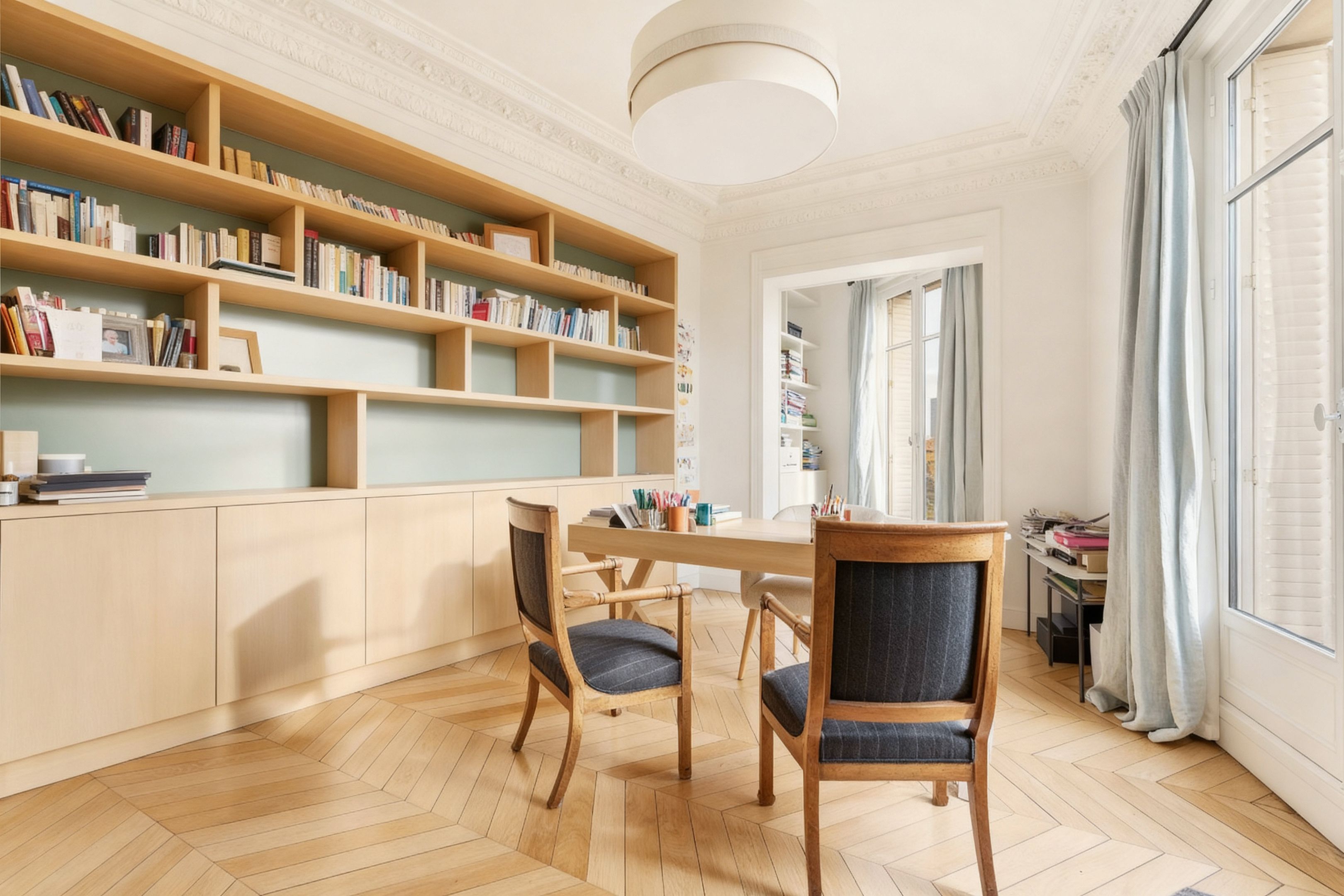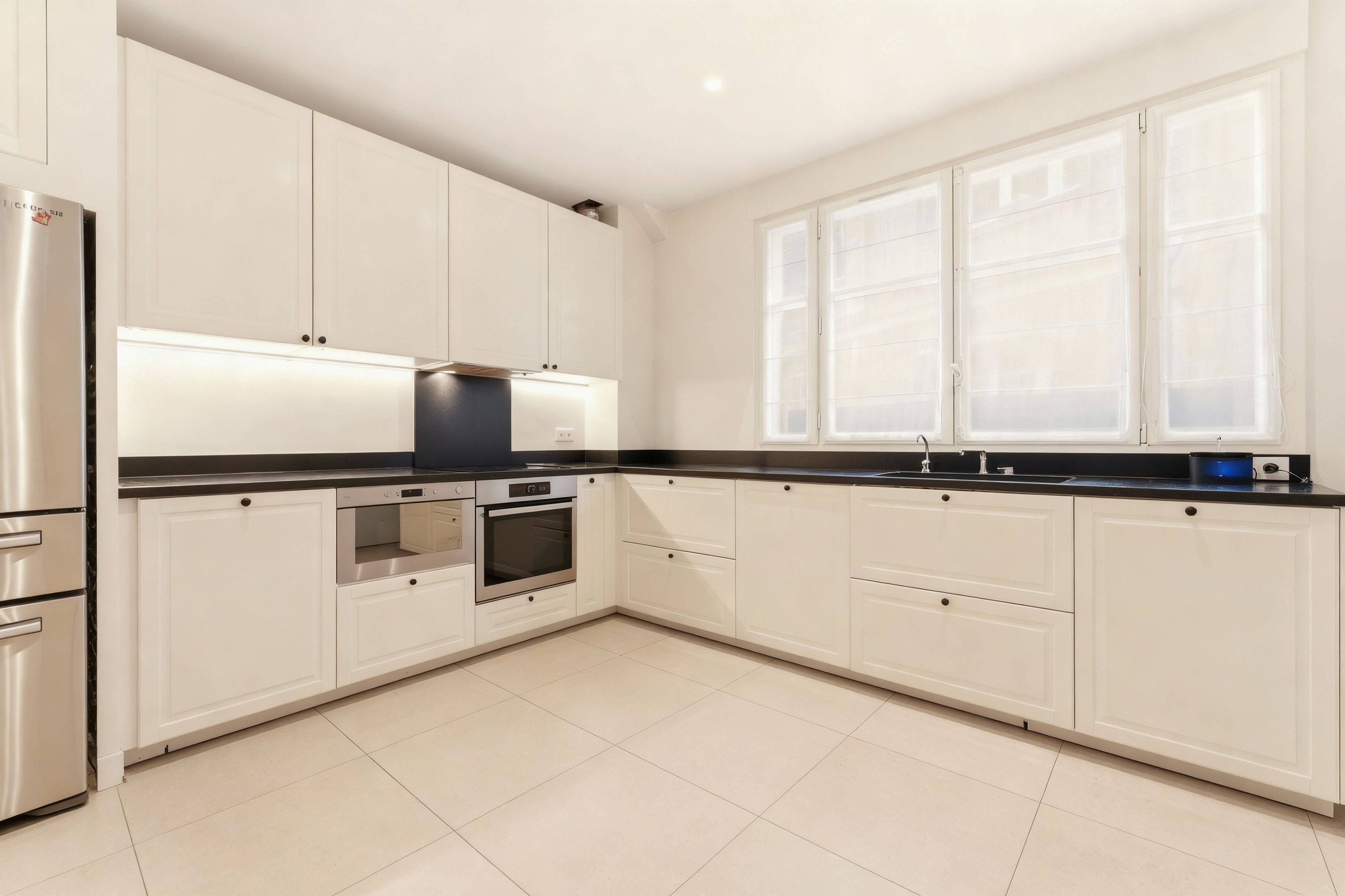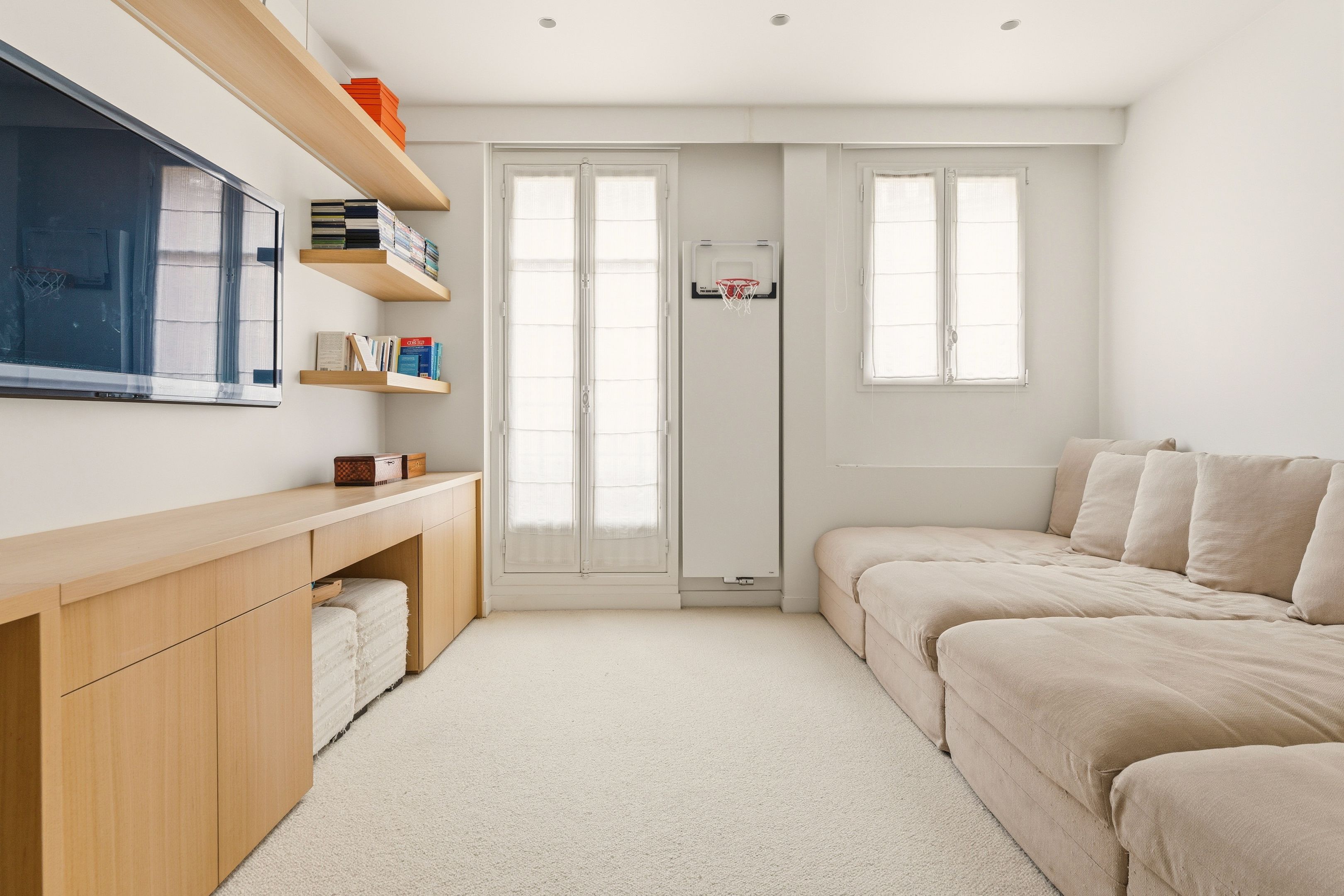 Dans un superbe immeuble haussmannien de grand standing disposant des services d'une gardienne, profitant d’une situation exceptionnelle proche des commerces et des écoles. Appartement traversant au 5ème étage avec un balcon filant, bénéficiant d'un plan optimisé, de beaux volumes et de vues dégagées sur les toits de Neuilly. Galerie d'entrée desservant un grand séjour, salle à manger, bureau, magnifique cuisine familiale, quatre chambres, family room (5ème chambre), grande cuisine/buanderie avec accès service, salles de bains, salles de douches, toilettes séparées, de nombreux dressings/rangements. Une double cave.