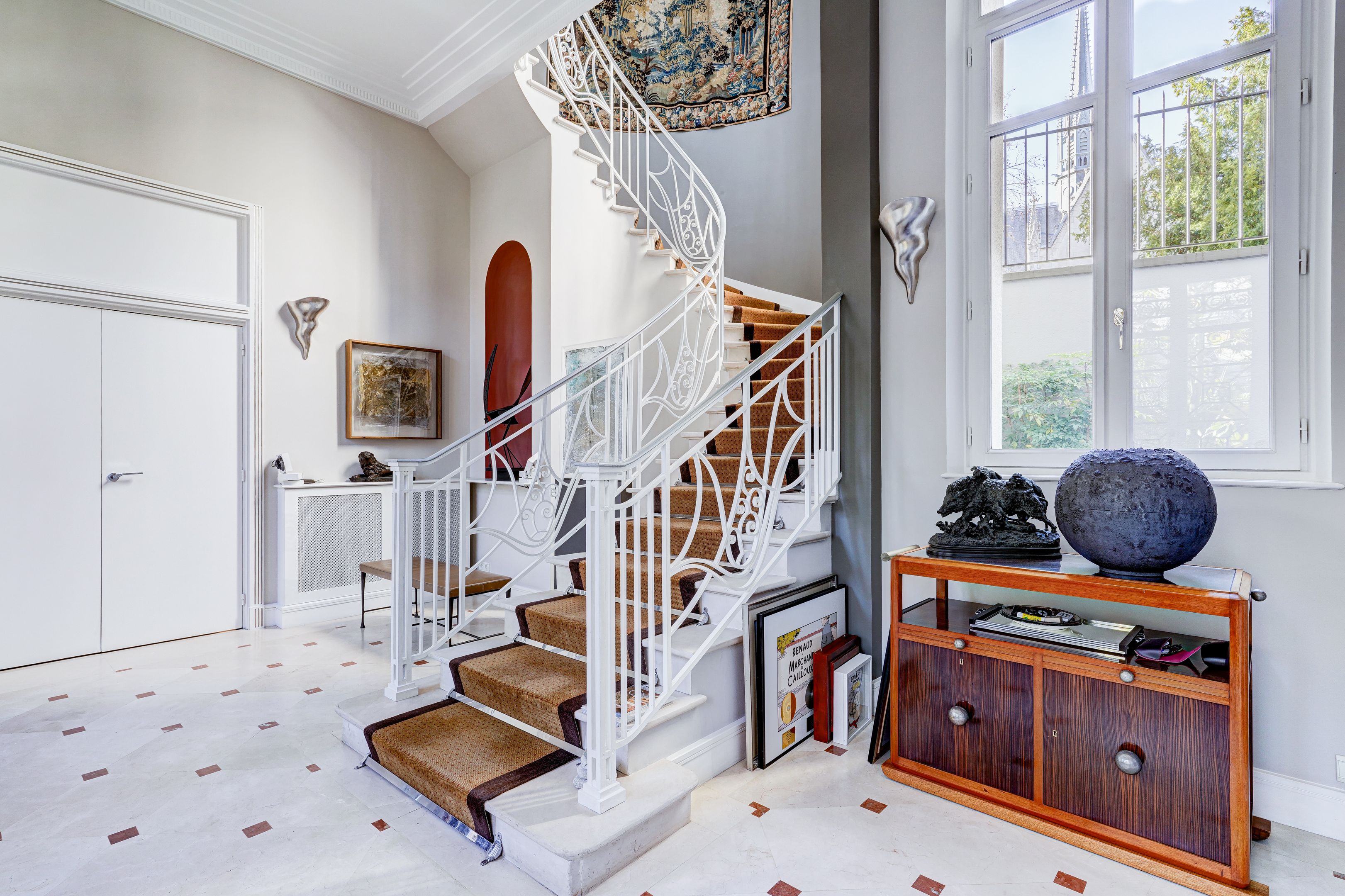 Idéalement situé à deux pas de la place Rodin, superbe hôtel particulier des années 30 de 453 m² sans vis-à-vis, en excellent état et bénéficiant d'une terrasse arborée. Au rez-de-chaussée : galerie d'entrée, grande cuisine dînatoire, studio indépendant avec une chambre en mezzanine et salle d'eau. Au premier étage : pièce de réception ouvrant sur un salon en rotonde, salle à manger et office. Au deuxième étage : suite de maître avec salle de bains complète et dressing ainsi qu'un bureau ou cinquième chambre. Au troisième étage : deux chambres avec chacune leur salle d'eau et un studio de musique. Au quatrième étage : superbe terrasse arborée et ensoleillée de 80 m² offrant une vue panoramique sur les jardins alentours et la tour Eiffel. Au sous-sol : cave à vin, buanderie, local technique et pièces de rangement. Emplacement de parking devant l’hôtel particulier.